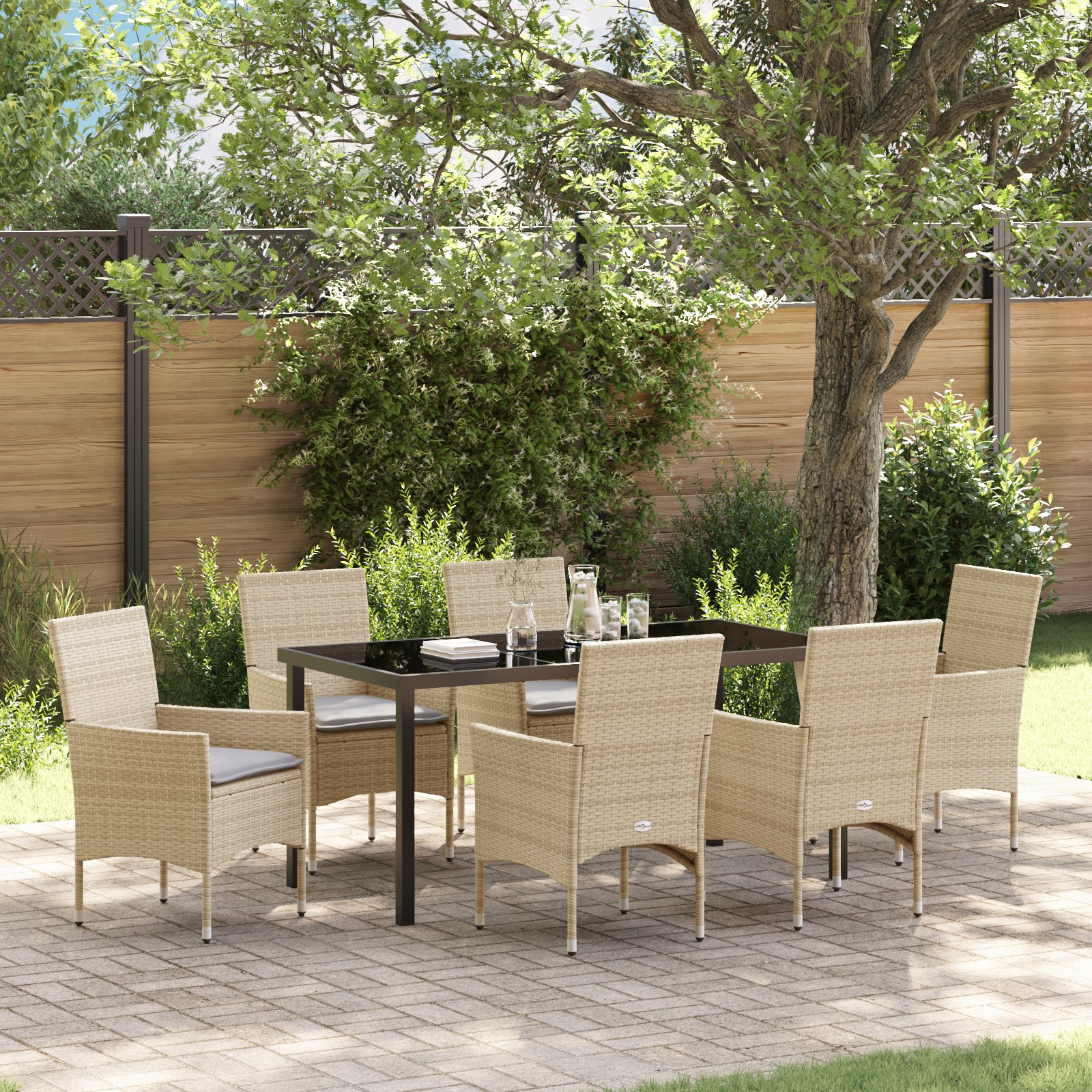 Set de masă pentru grădină cu pernă 7 pcs Bej Rattan poli