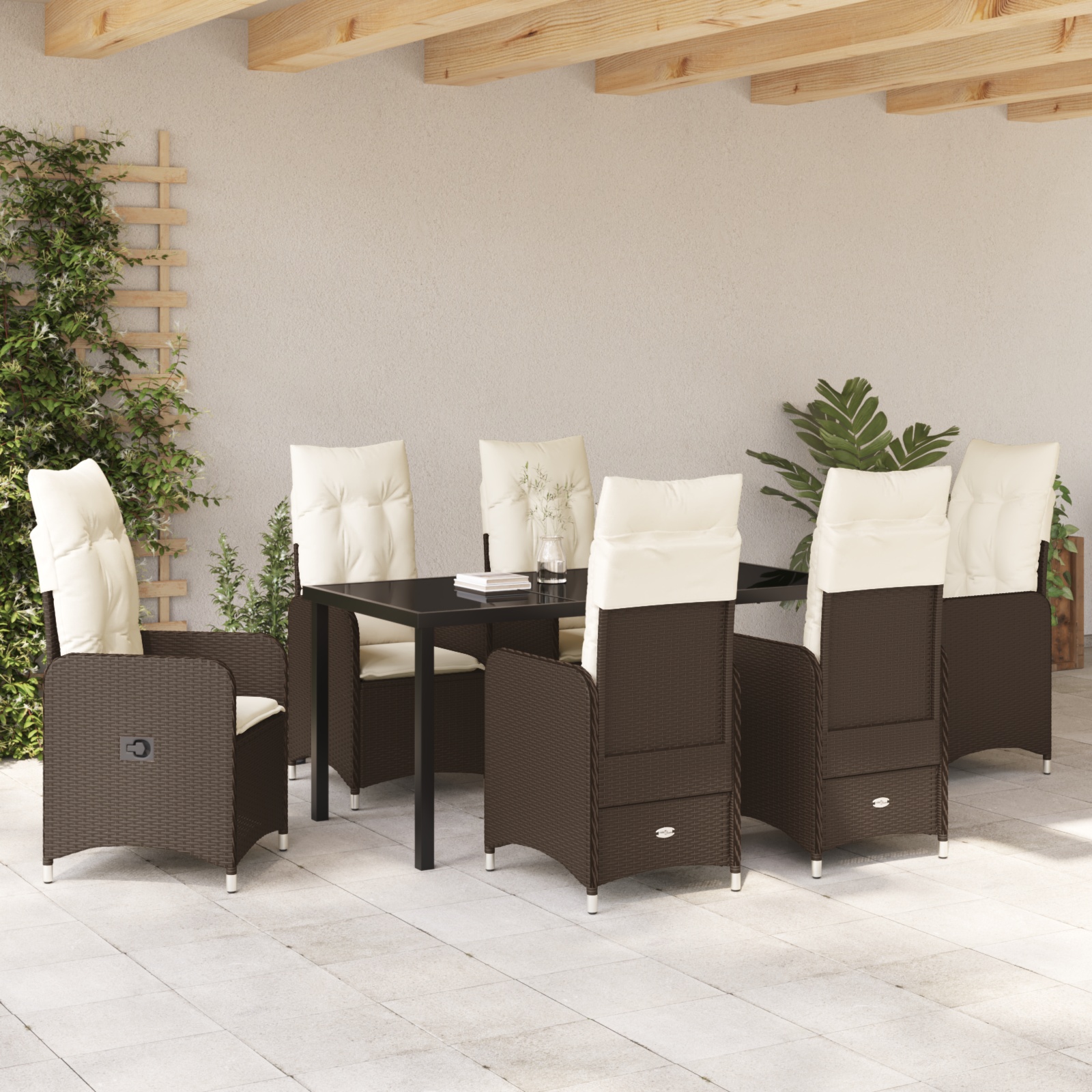 Set de masă pentru grădină cu pernă 7 pcs Maro Rattan poli