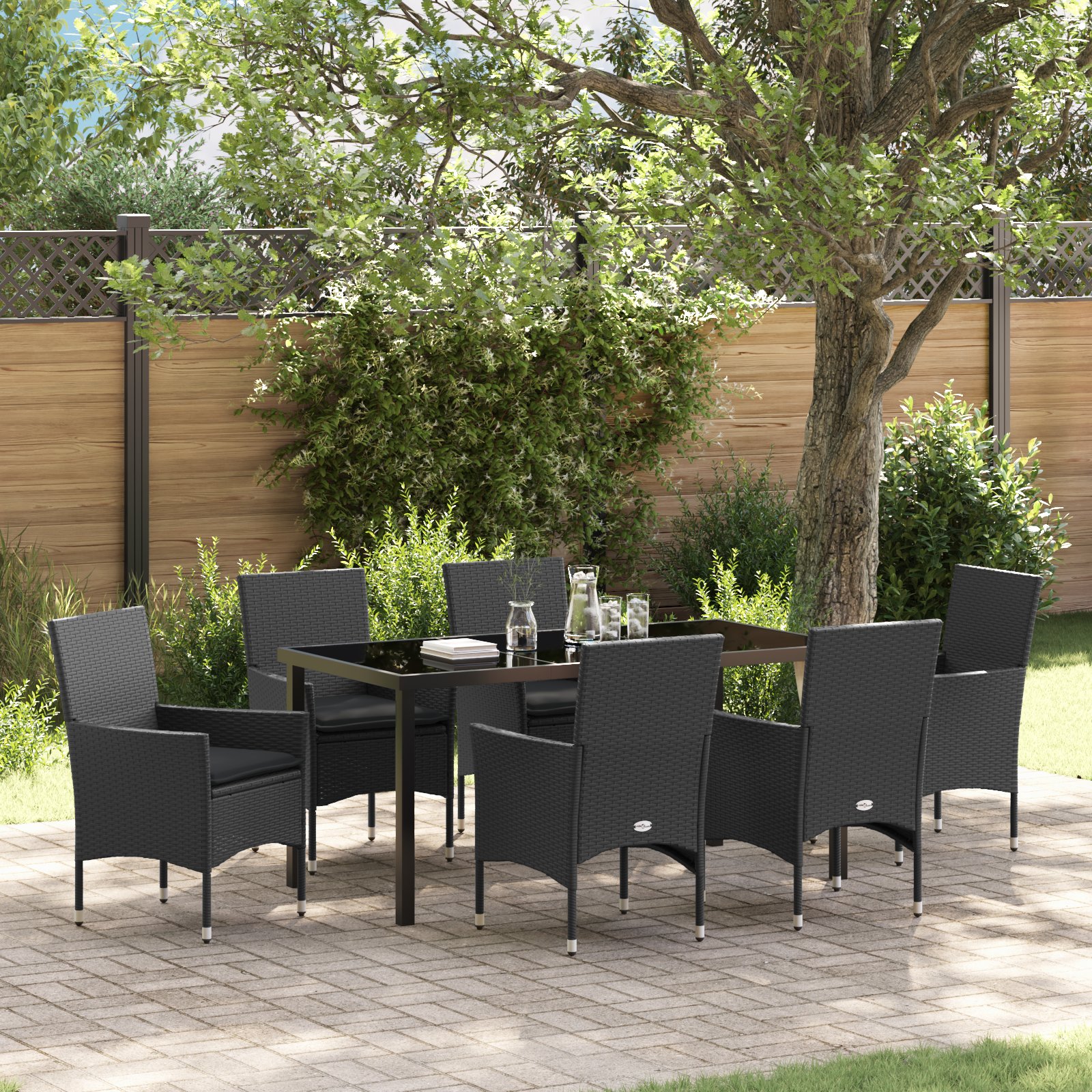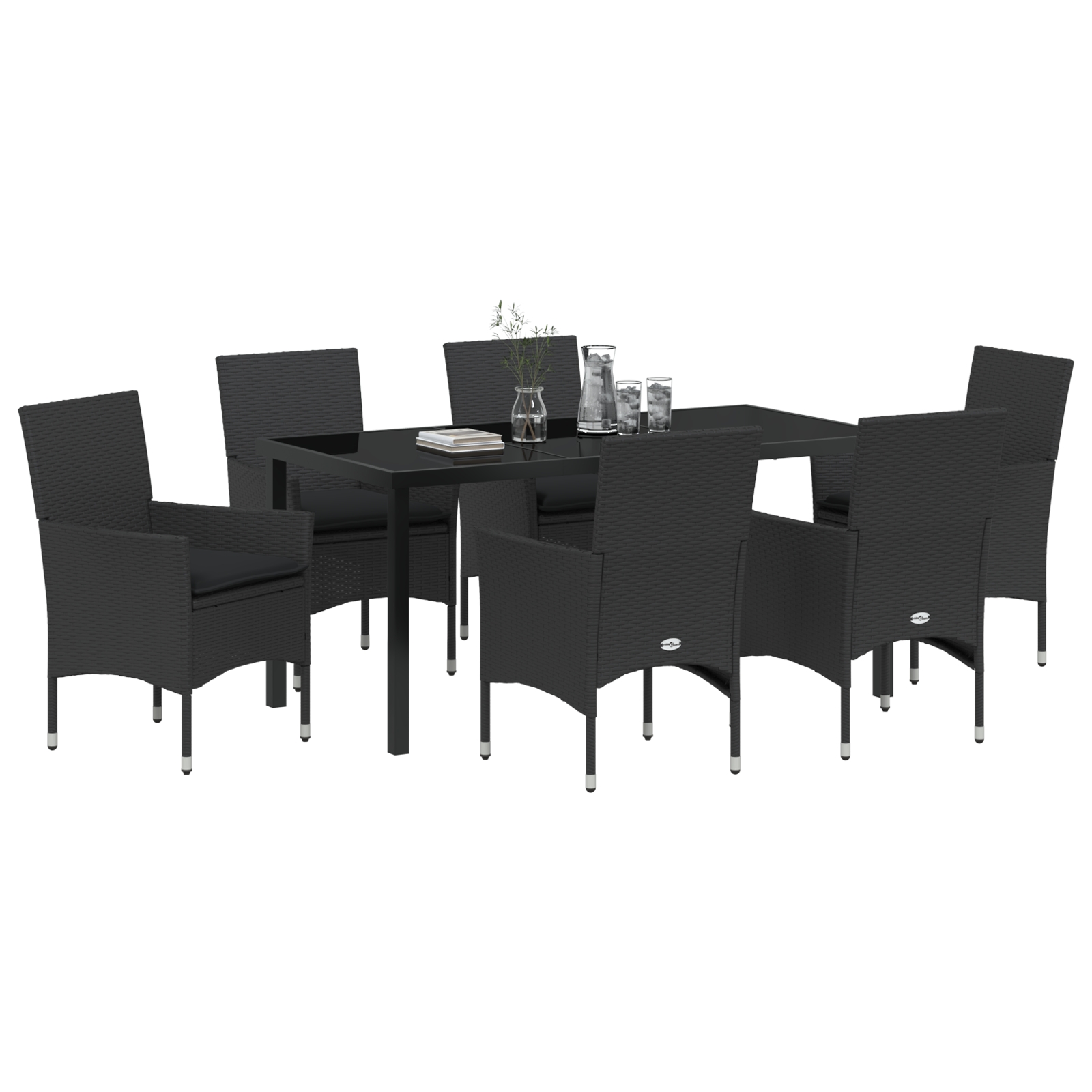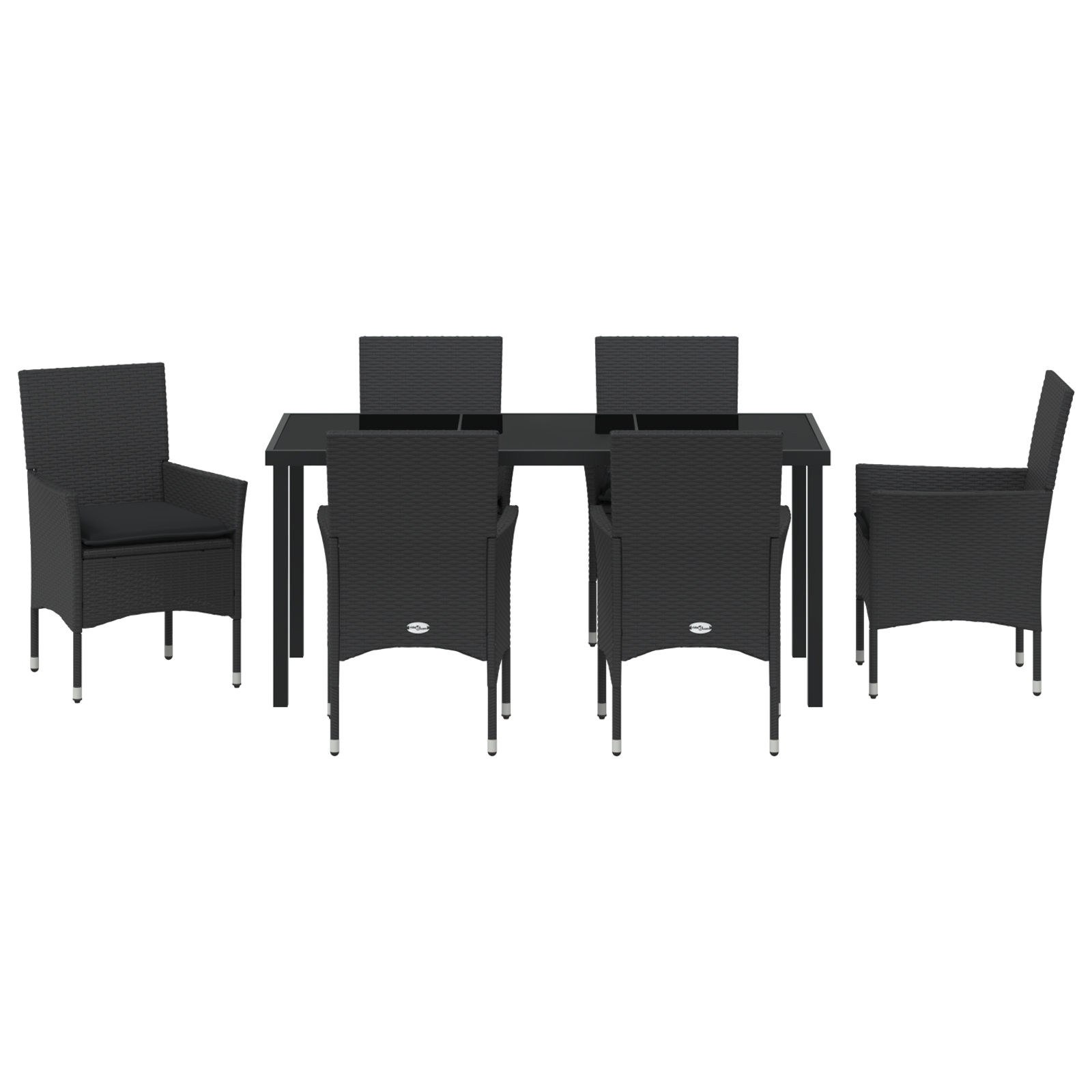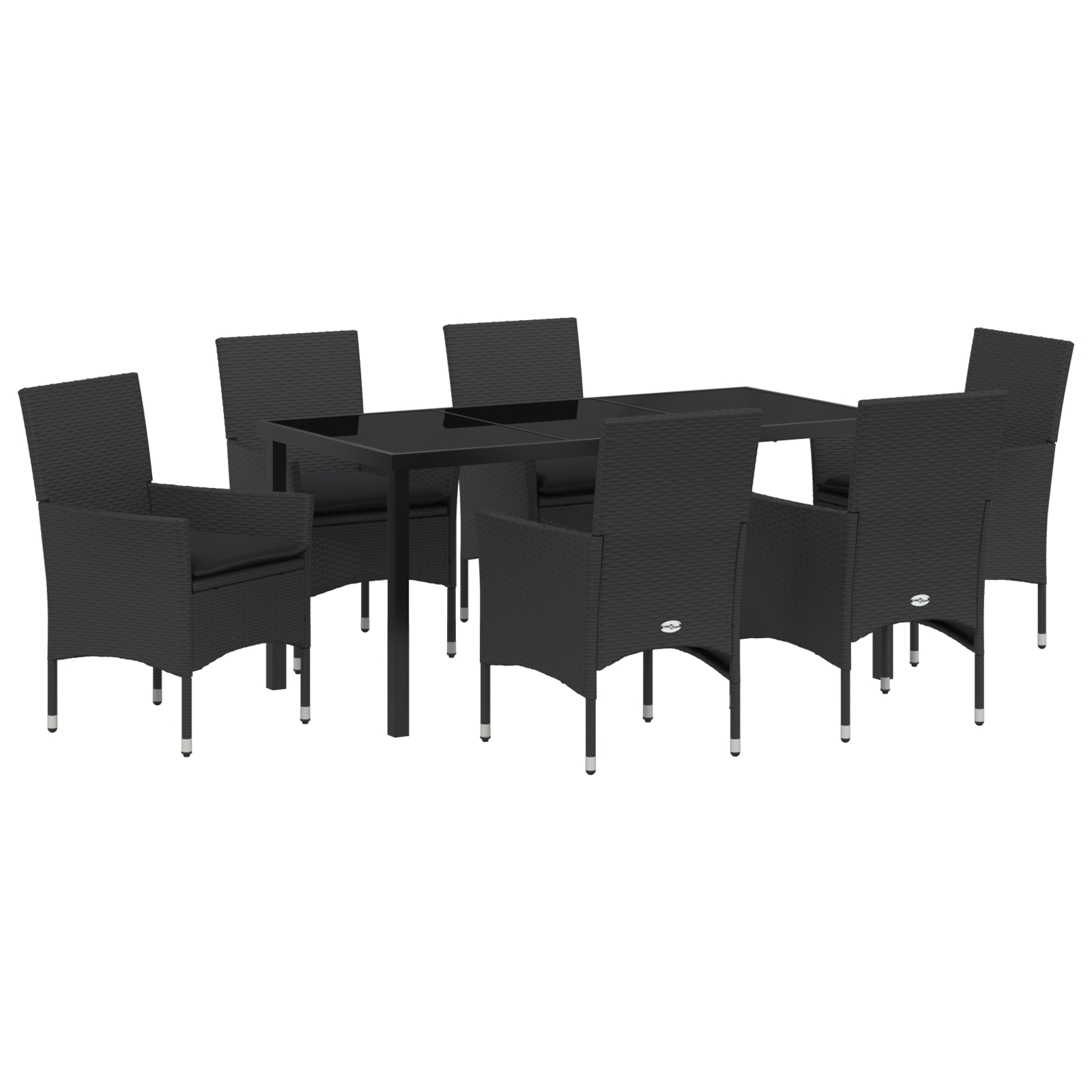 Set de masă pentru grădină cu pernă 7 pcs Negru Rattan poli