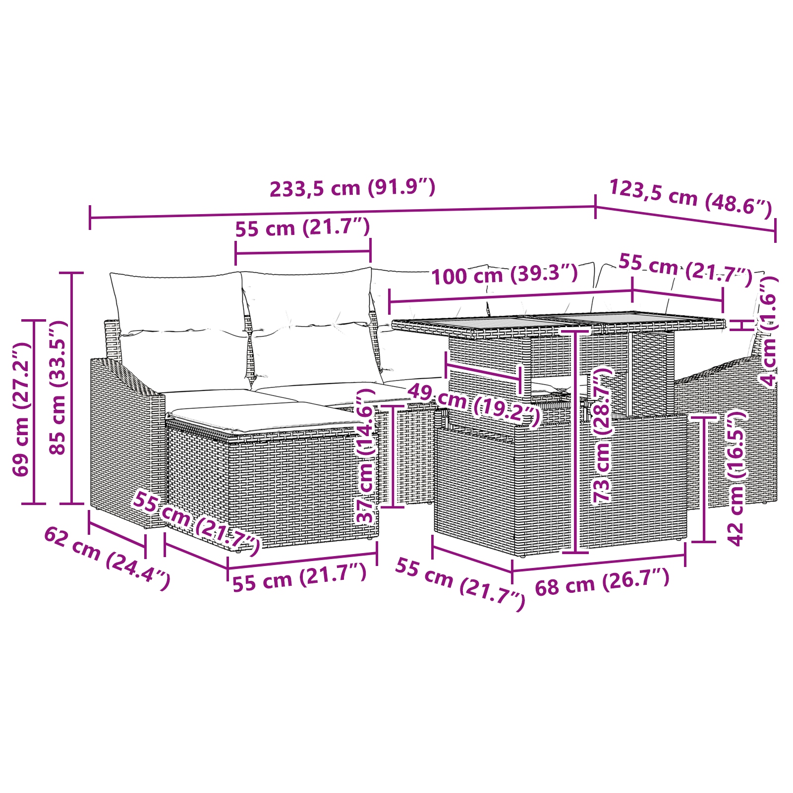 - 2 x Canapea cu brațe inclusiv funcție de depozitare, 1 x Scaun colțar inclusiv funcție de depozitare, 2 x Scaun central inclusiv funcție de depozitare, 1 x Taburet cu funcție de depozitare, 1 x Masă de grădină