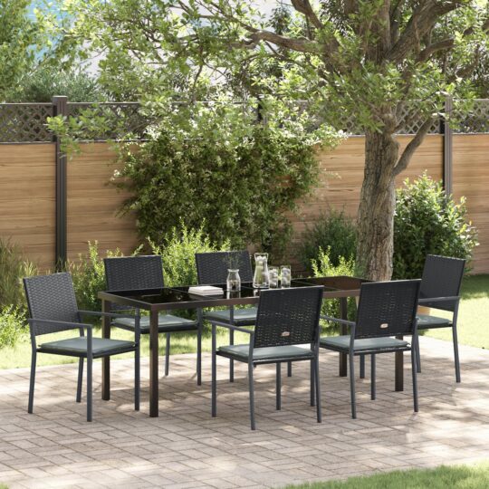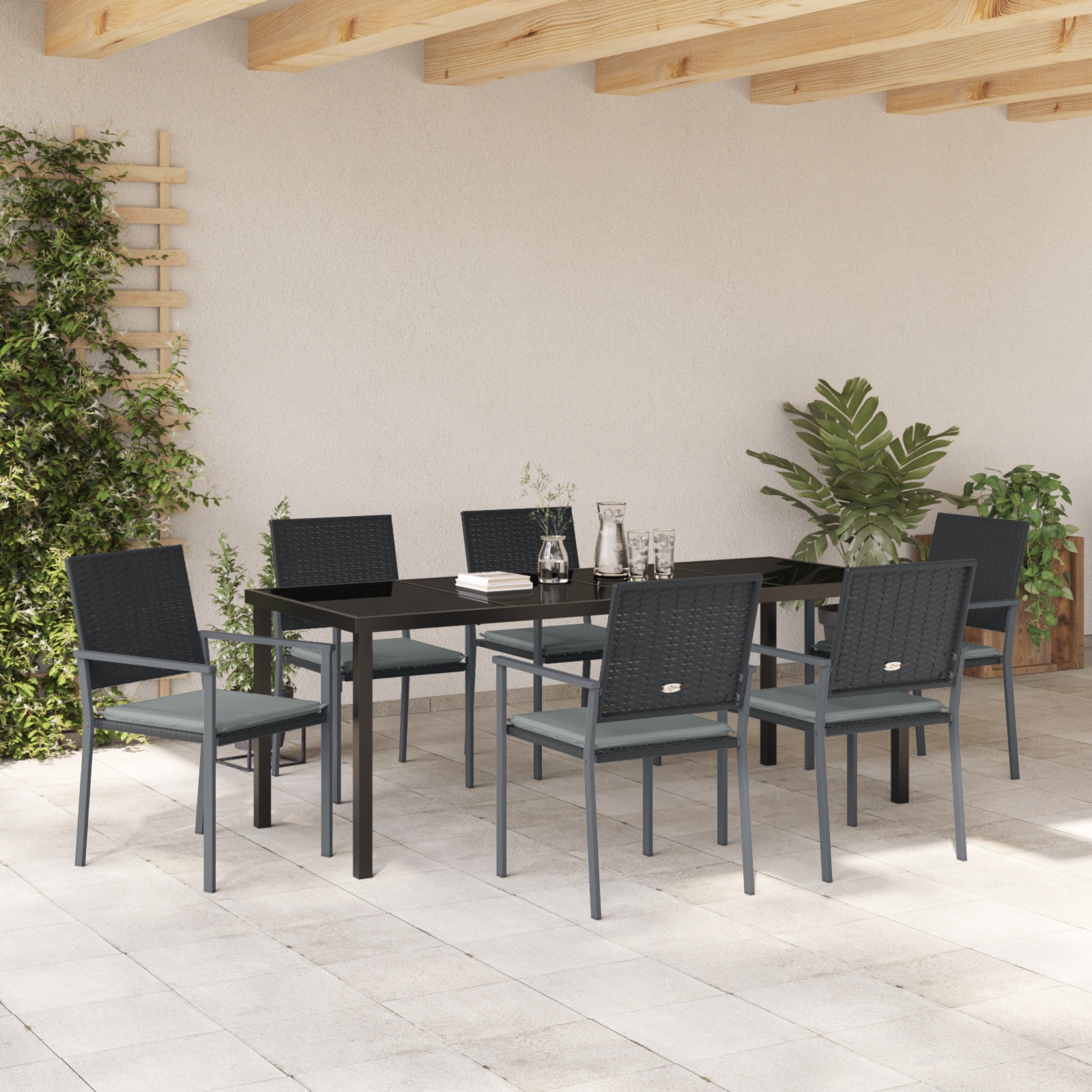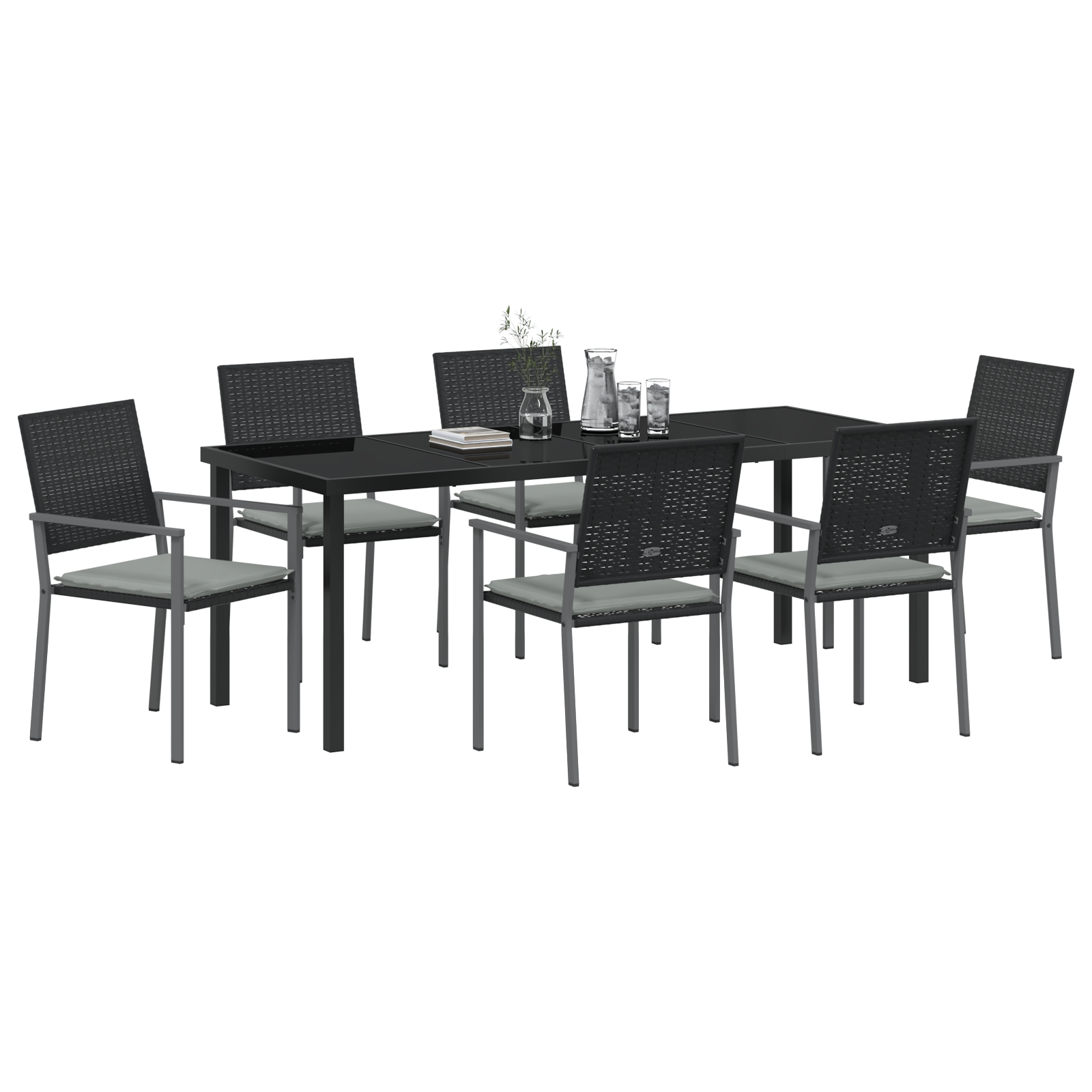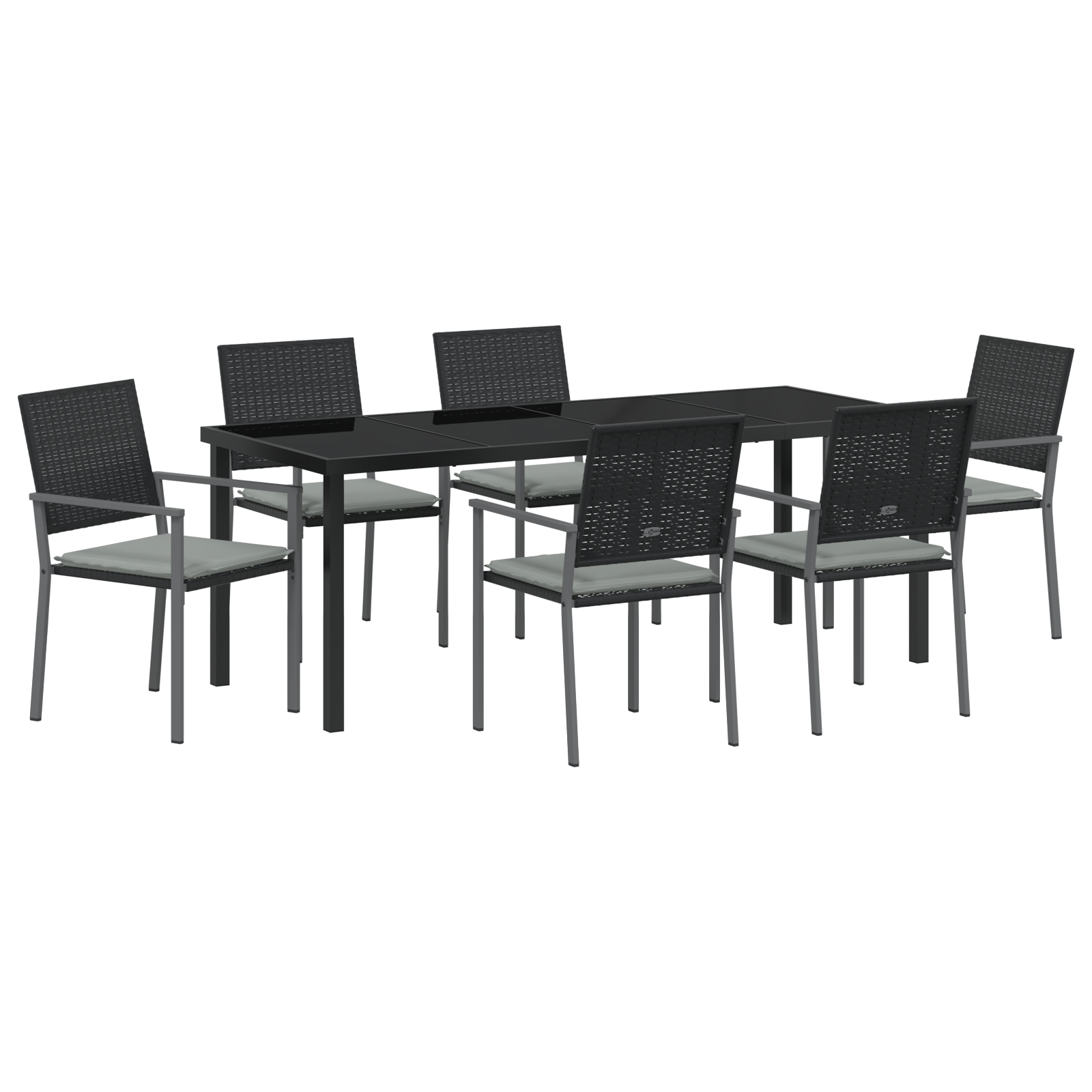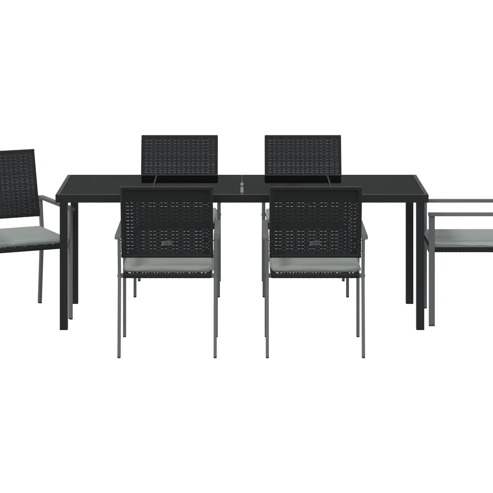 Set de dining pentru grădină 7 piese cu perne, rattan polițat negru