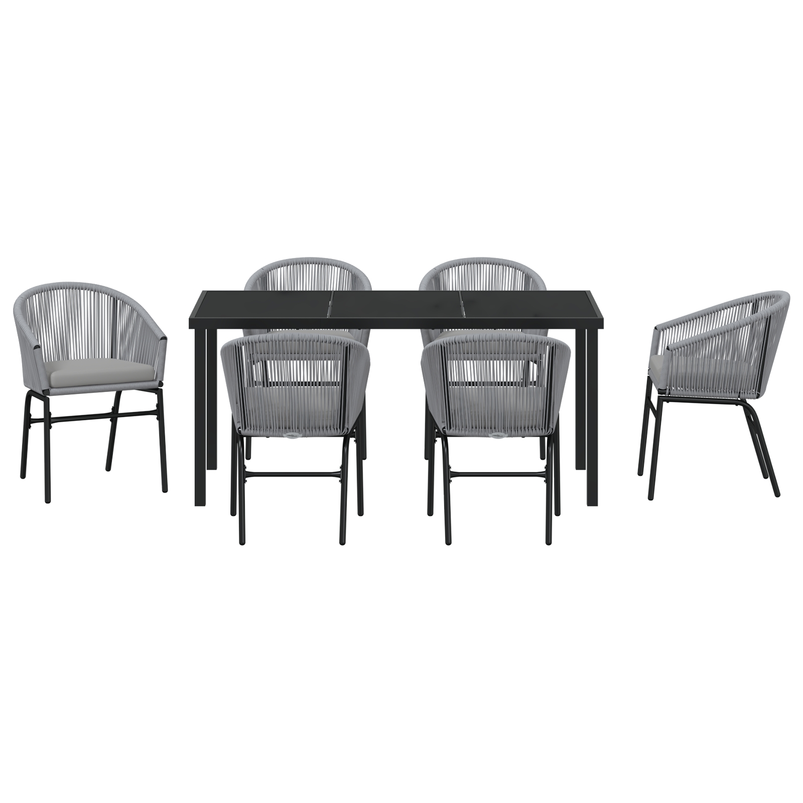 Acest set de dining pentru grădină este o adăugare elegantă, dar funcțională la spațiul tău exterior, întruchipând stilul modern cu simplitate și funcționalitate. Forma sa dreptunghiulară și liniile curate oferă o estetică minimalistă, perfectă pentru adunările de vară. Cu un aspect lustruit, îmbunătățește orice grădină sau terasă, oferind o zonă de dining confortabilă și elegantă.