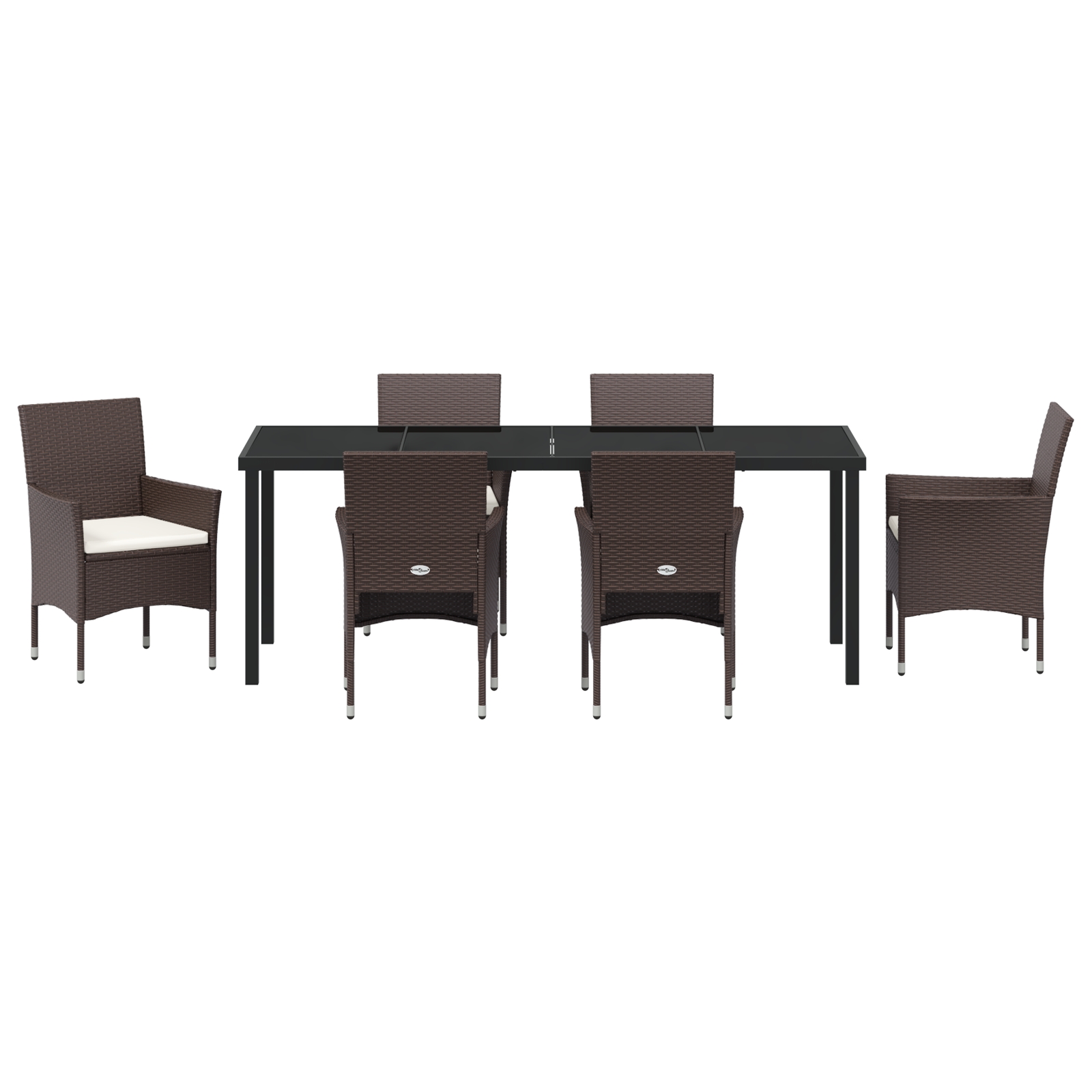 Fii primul care scrii o recenzie pentru „Set de dining pentru grădină 7 piese maro poliratan”