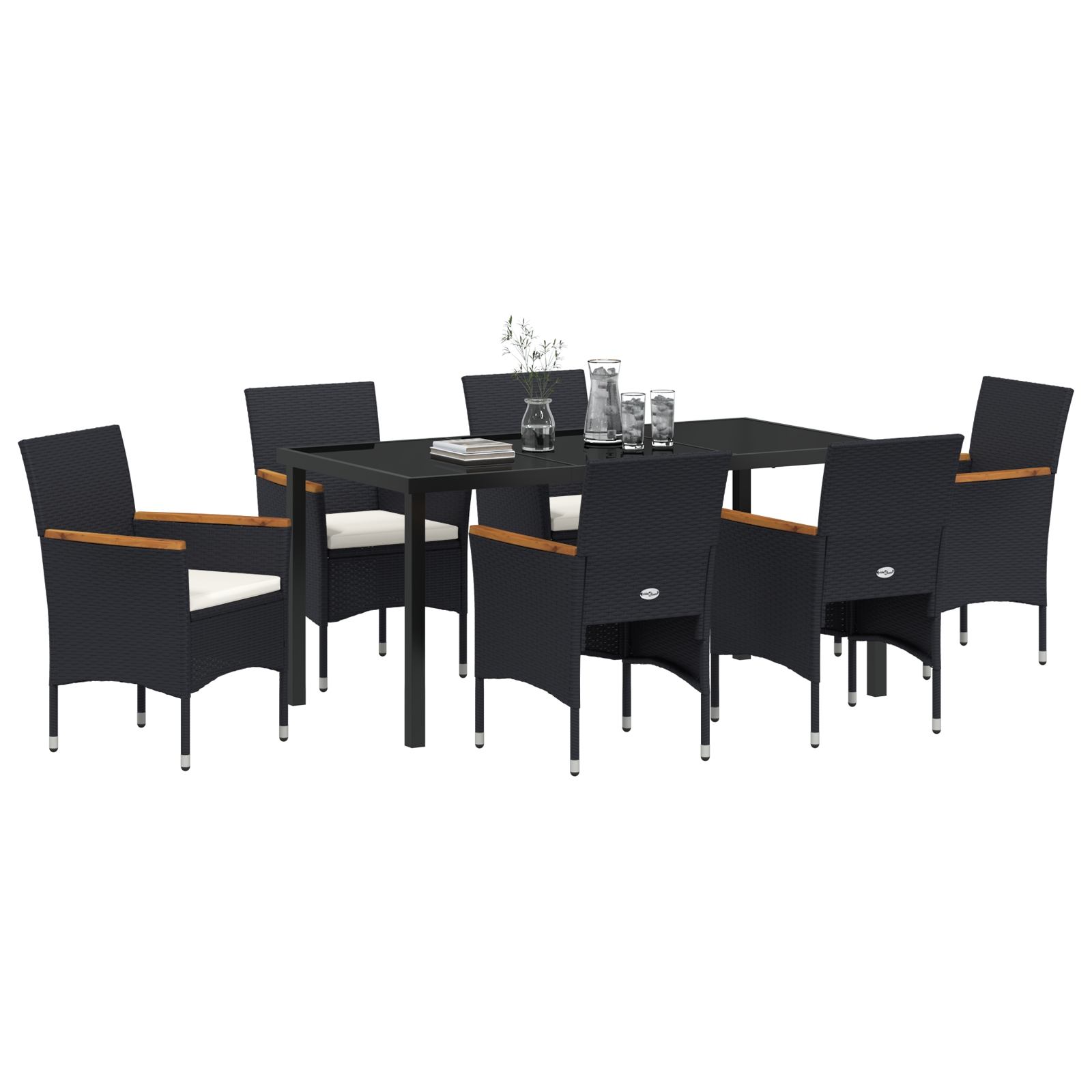 Set de masă pentru grădină cu pernă 7 pcs Negru Rattan poli