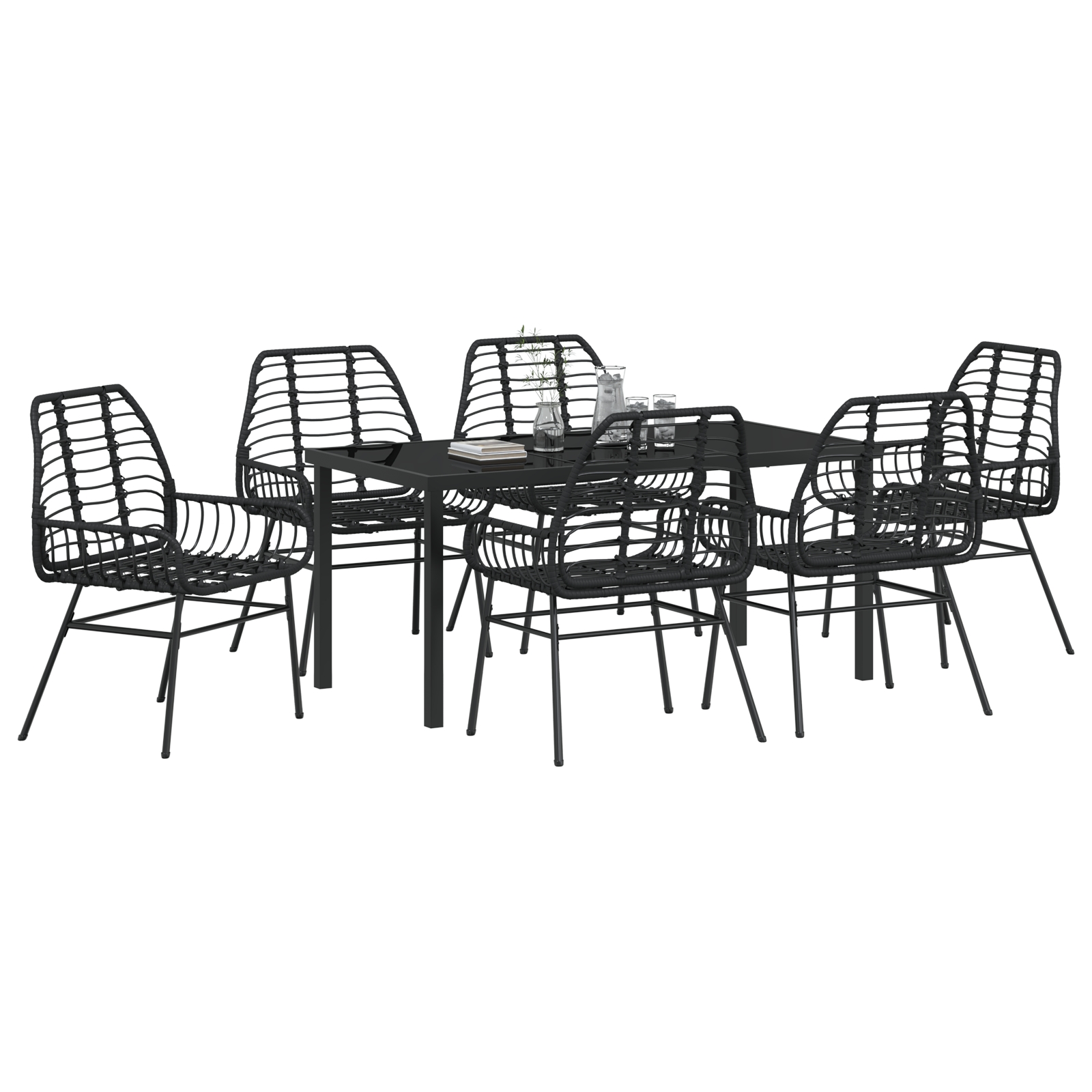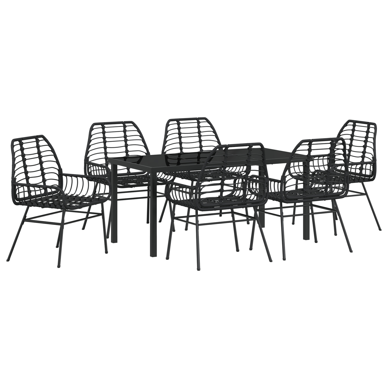 Set de masă pentru grădină 7 pcs Negru poliratan