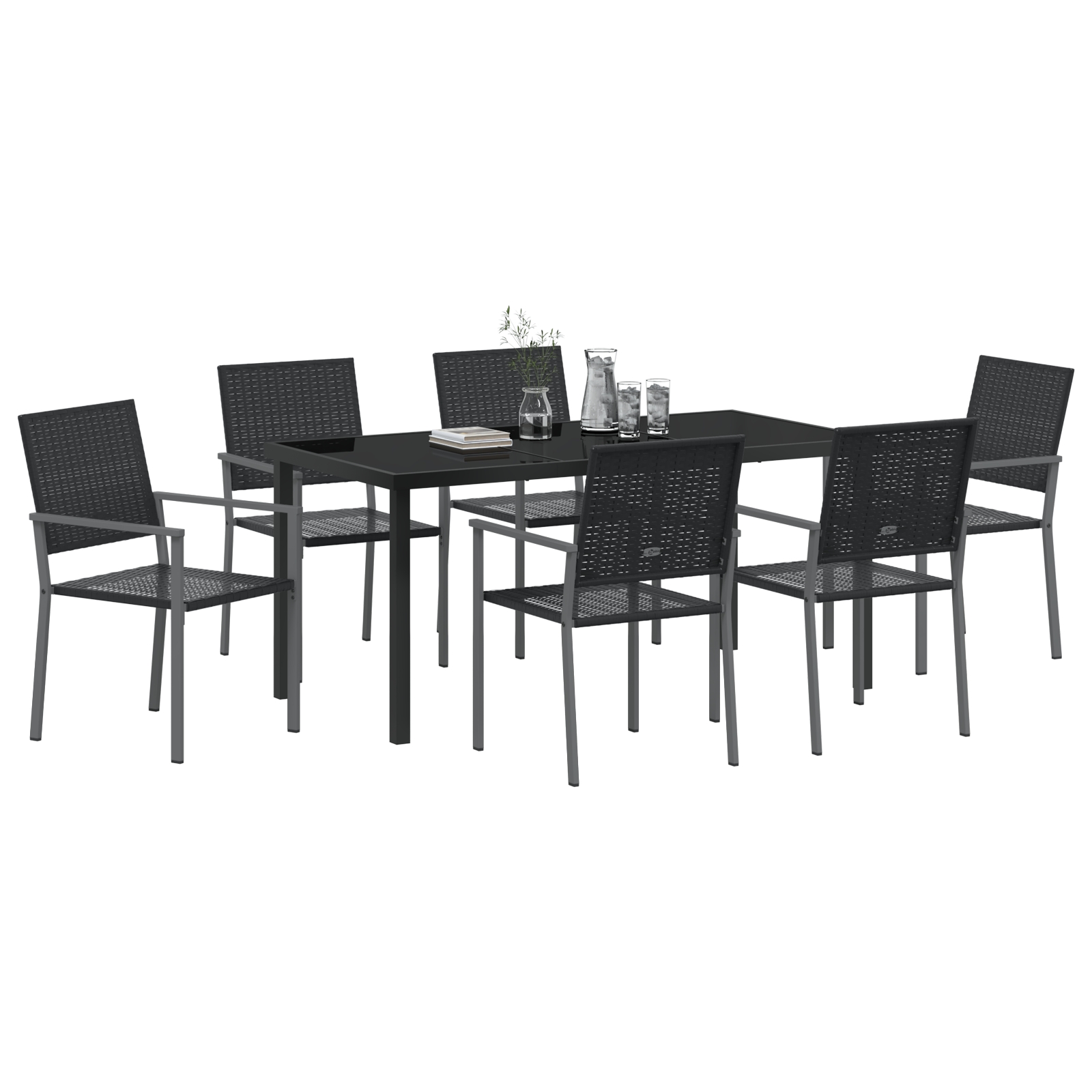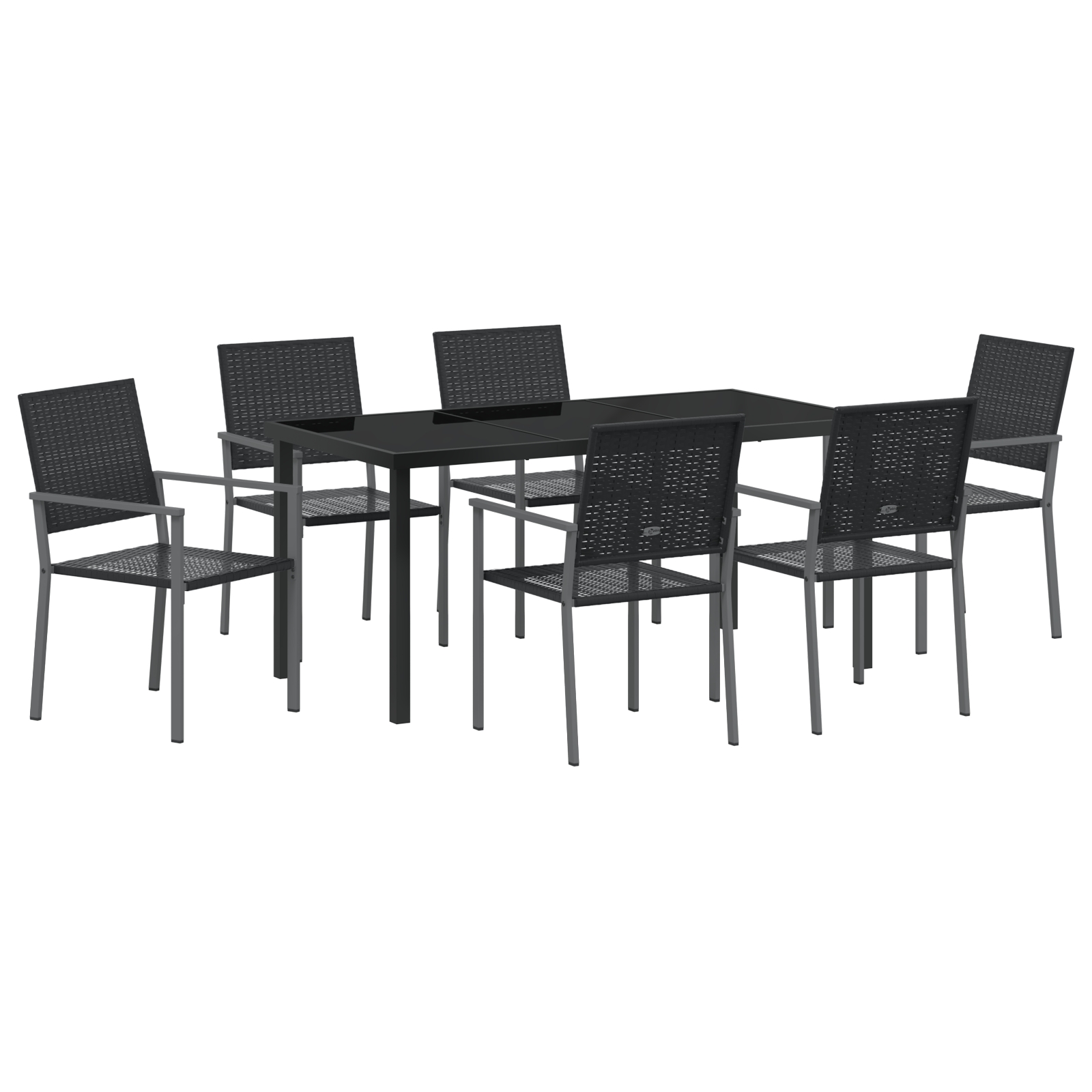 Set de masă pentru grădină 7 pcs Negru Rattan poli