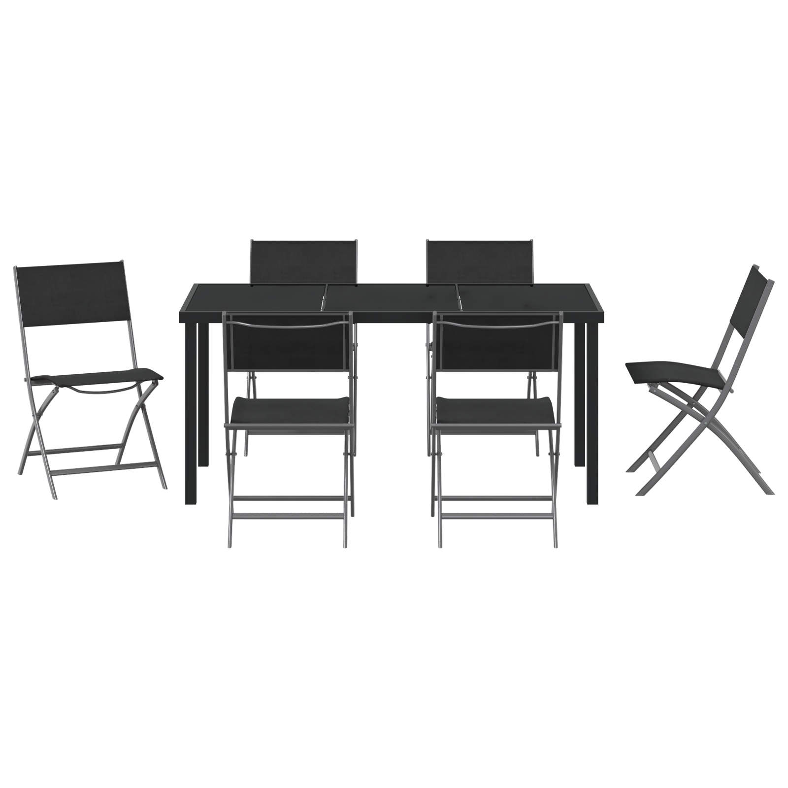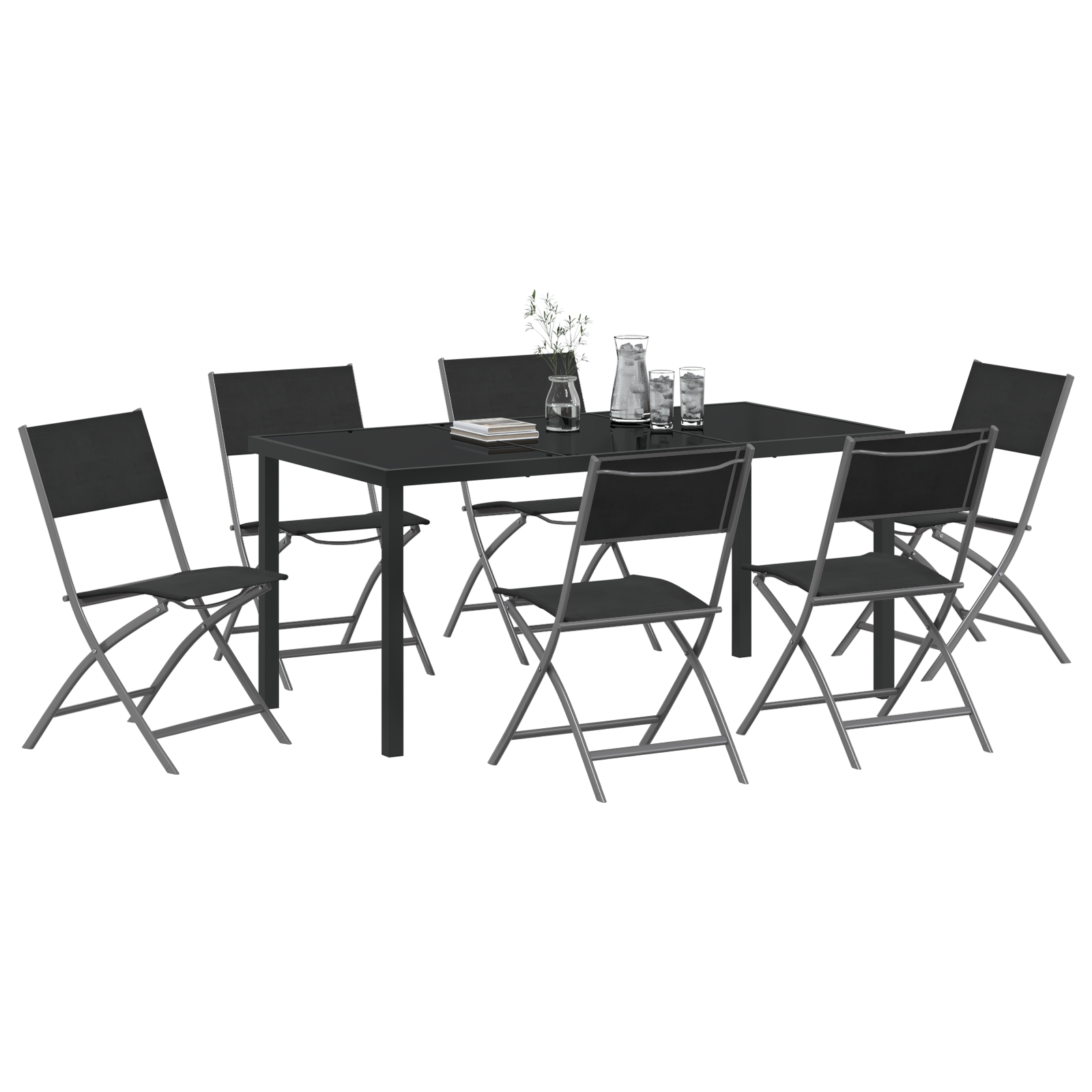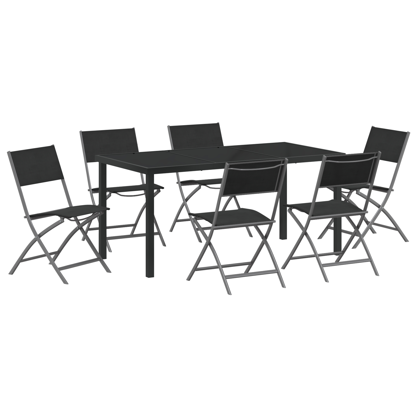 Set de masă pentru grădină 7 pcs Negru Textilene și oțel