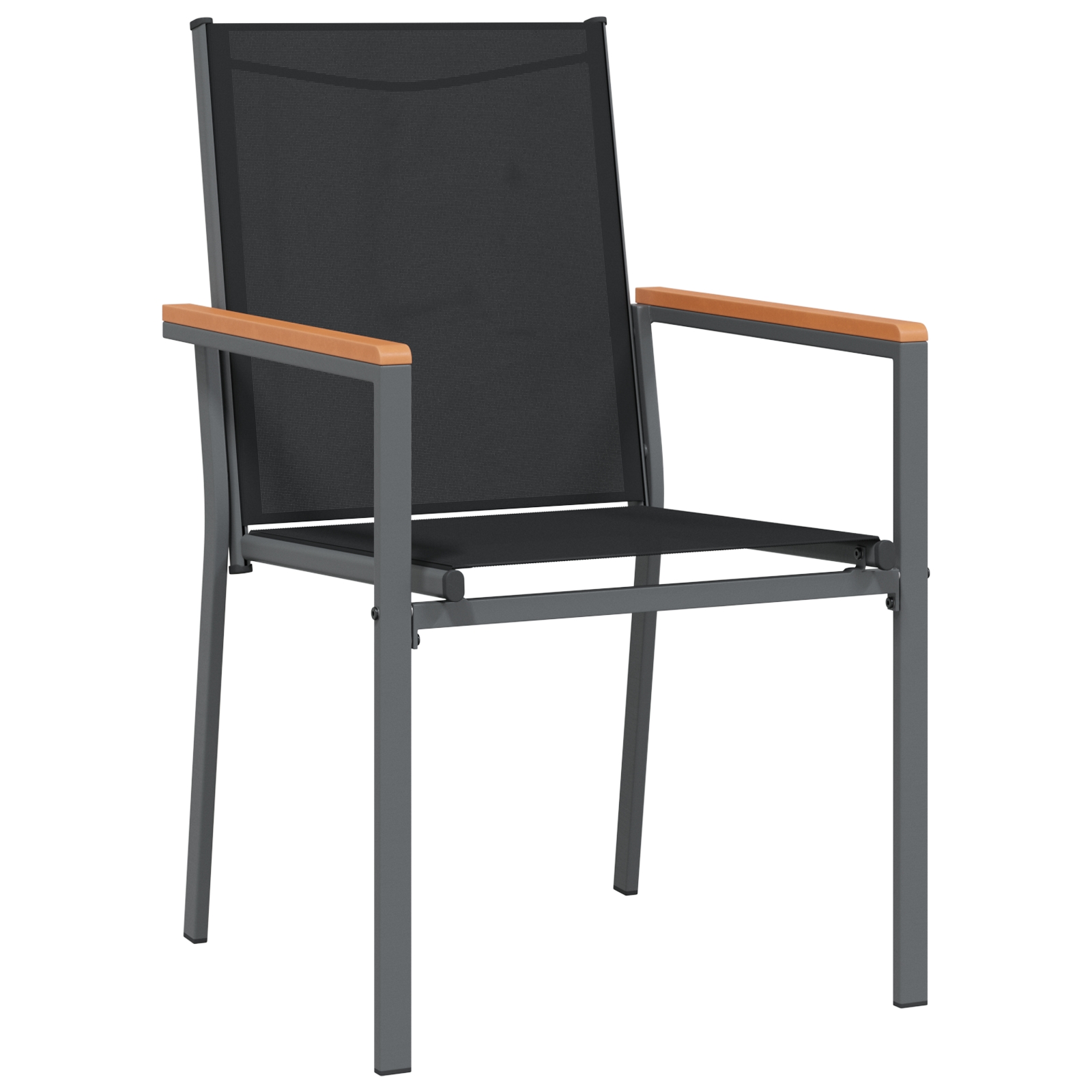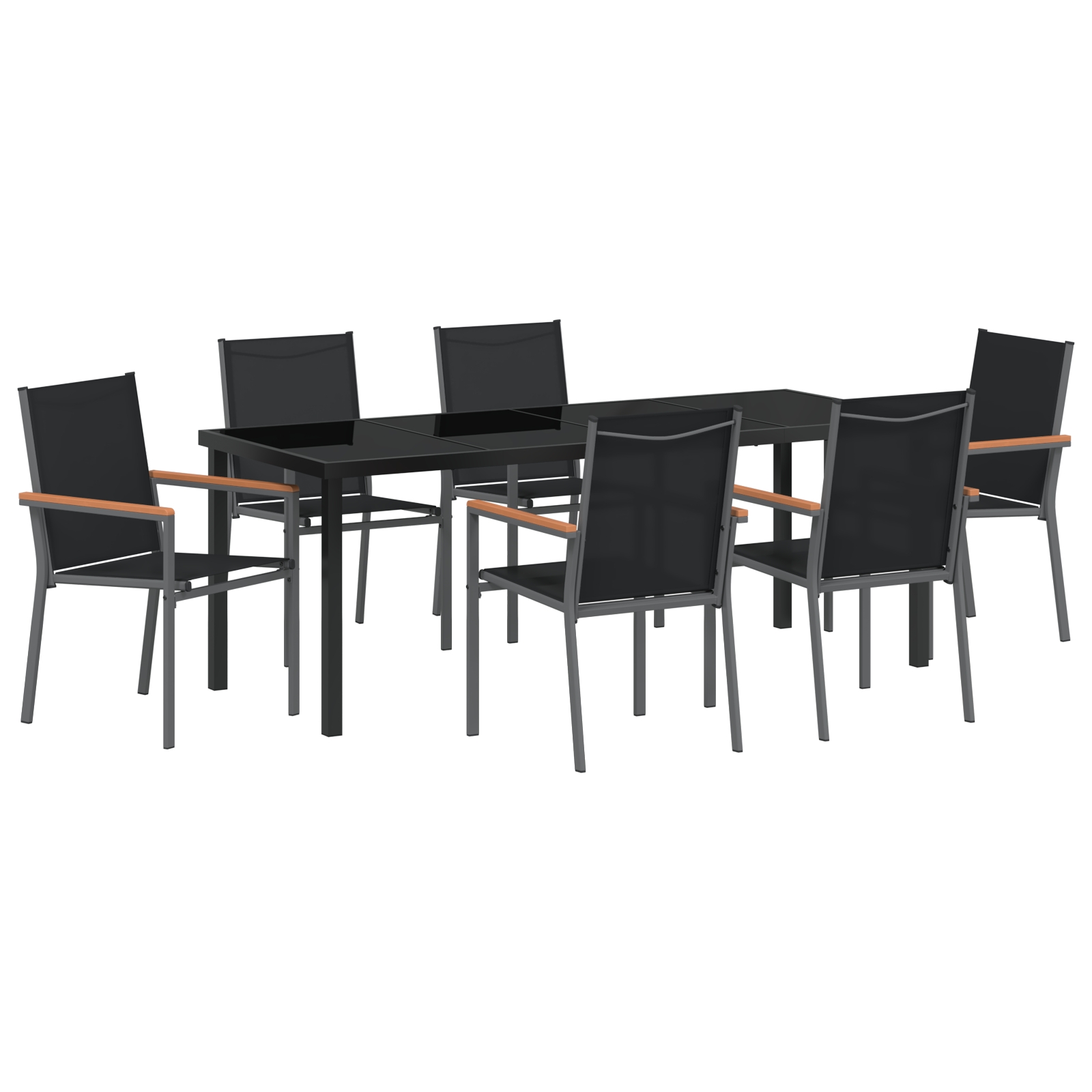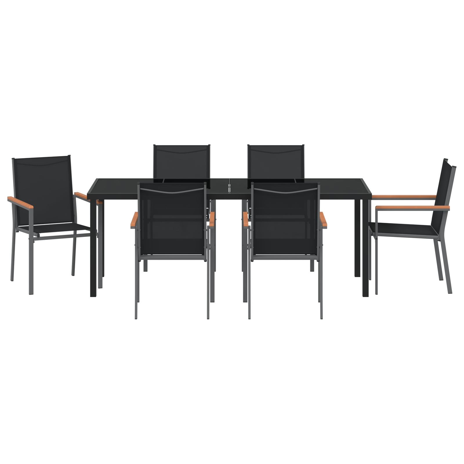 Set de dining pentru grădină 7 piese Negru Textilenă și Oțel