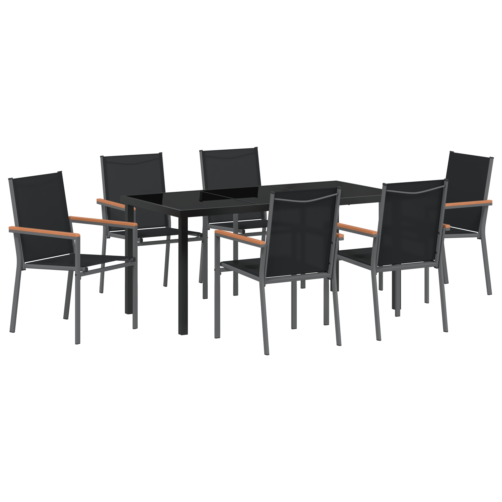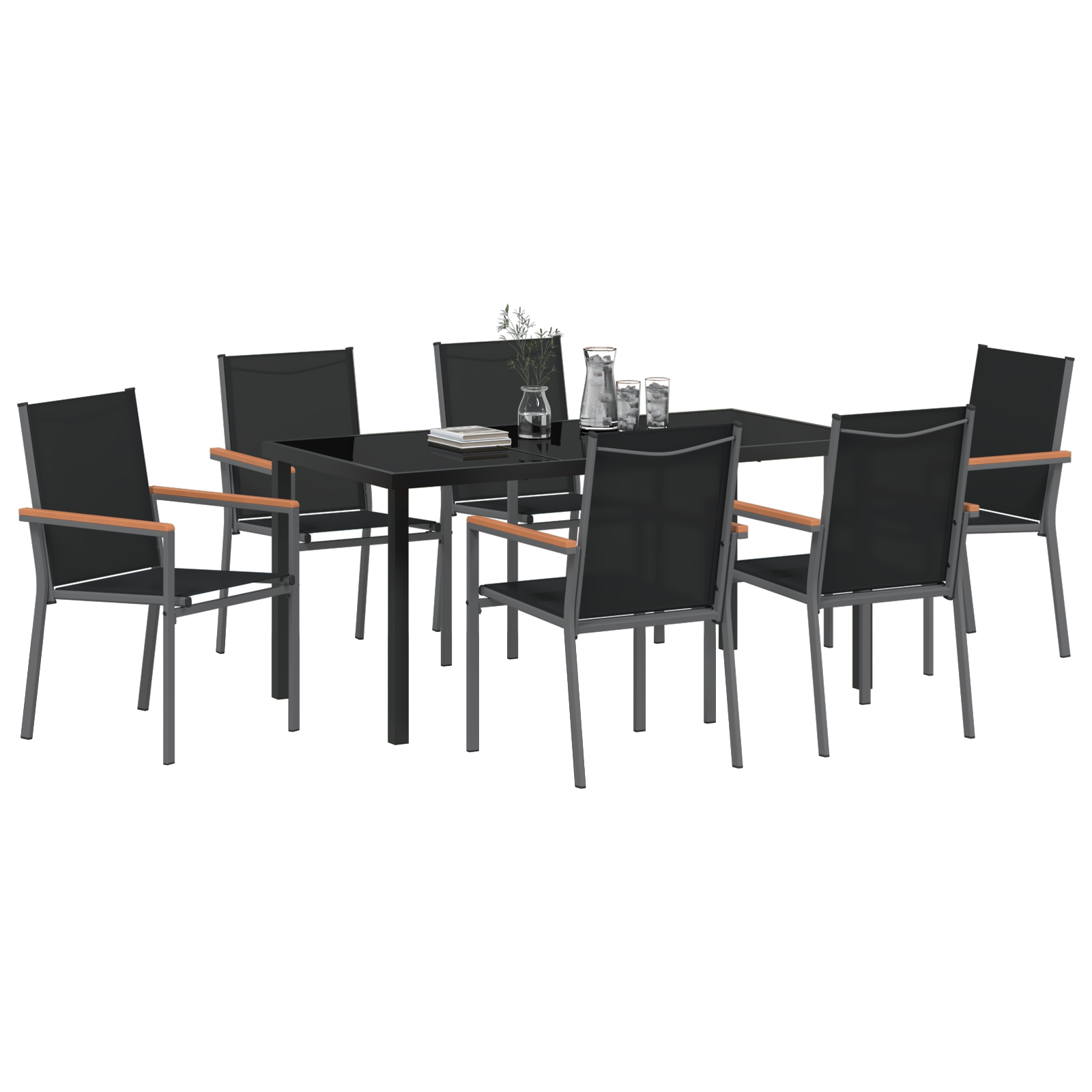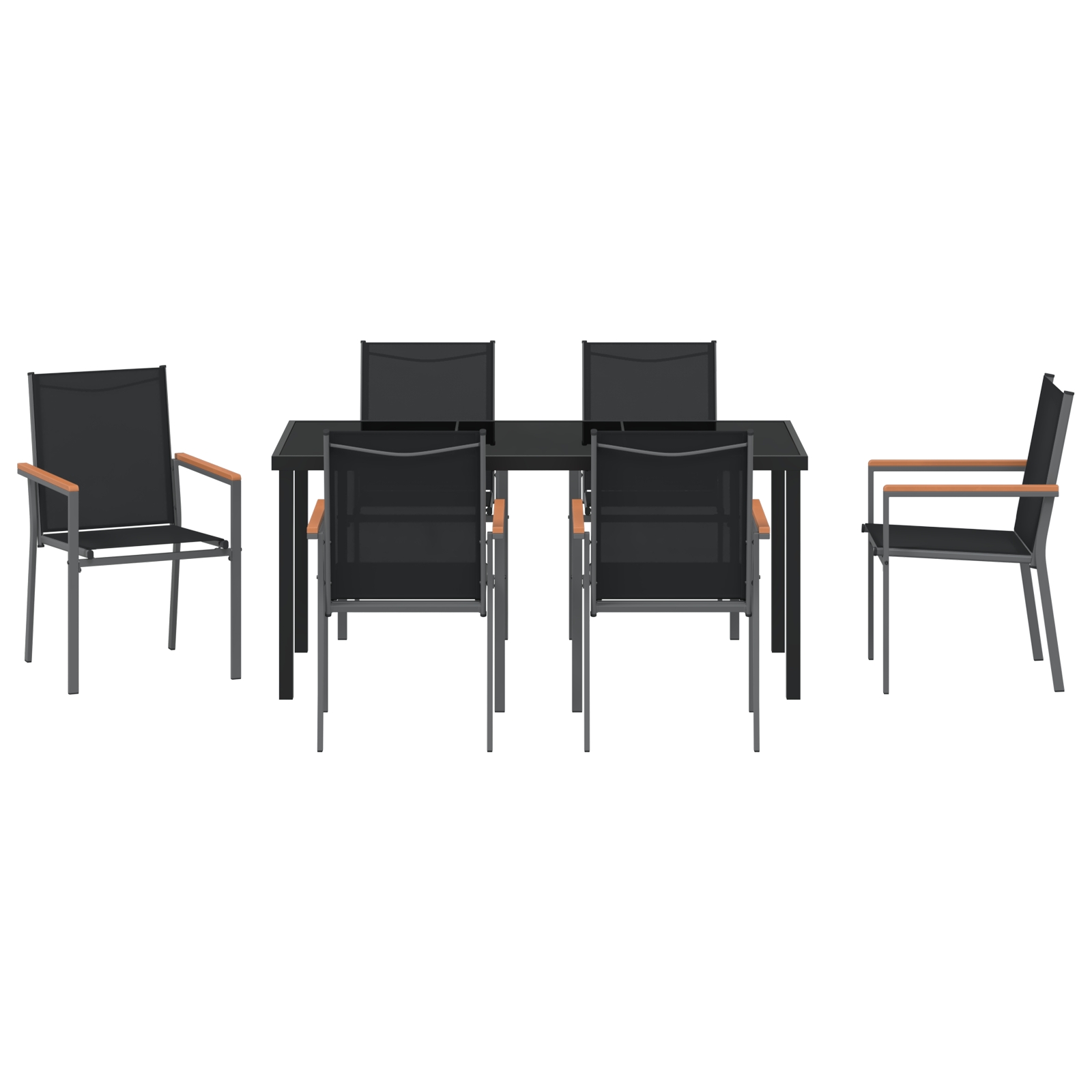 Set de masă pentru grădină 7 pcs Negru Textilene și oțel
