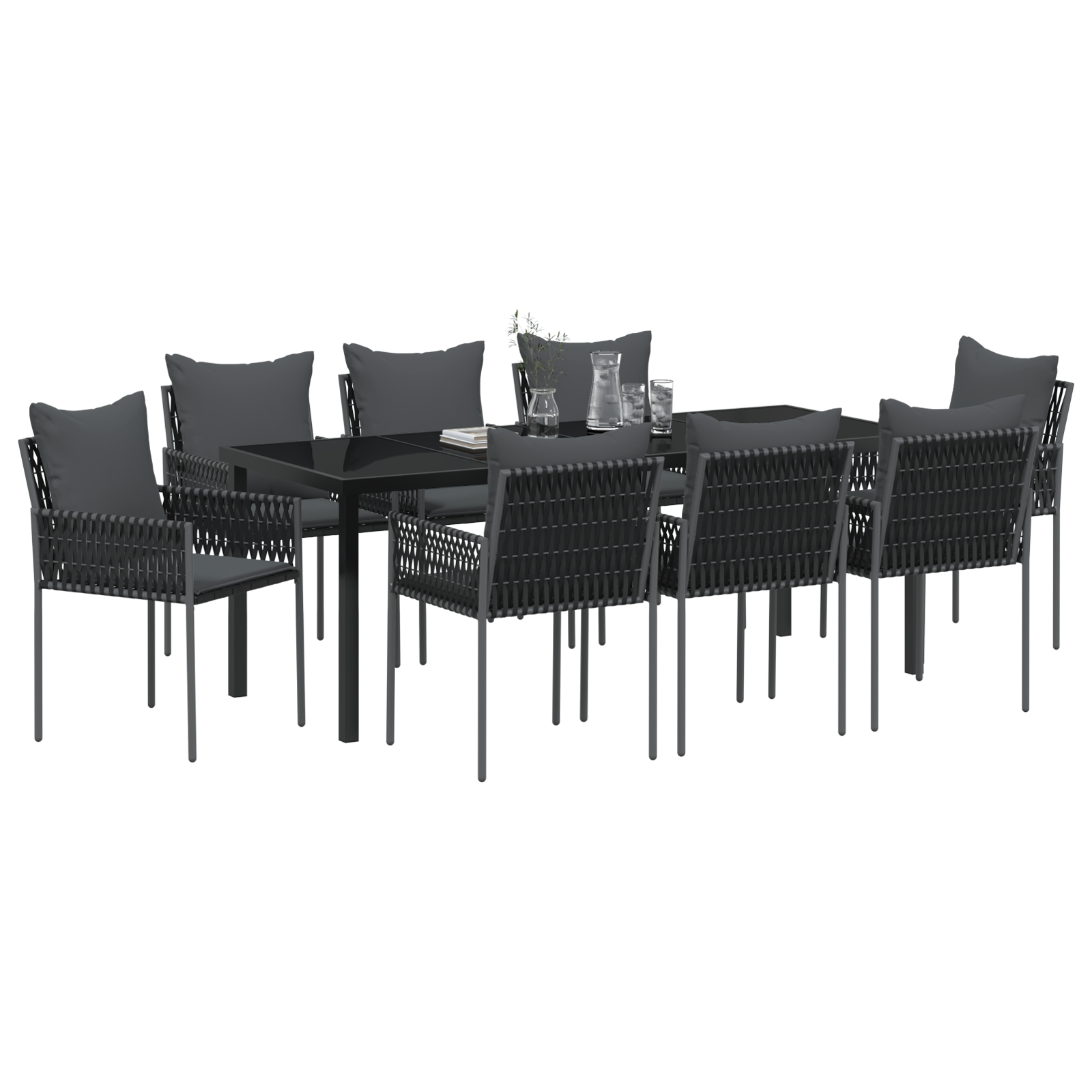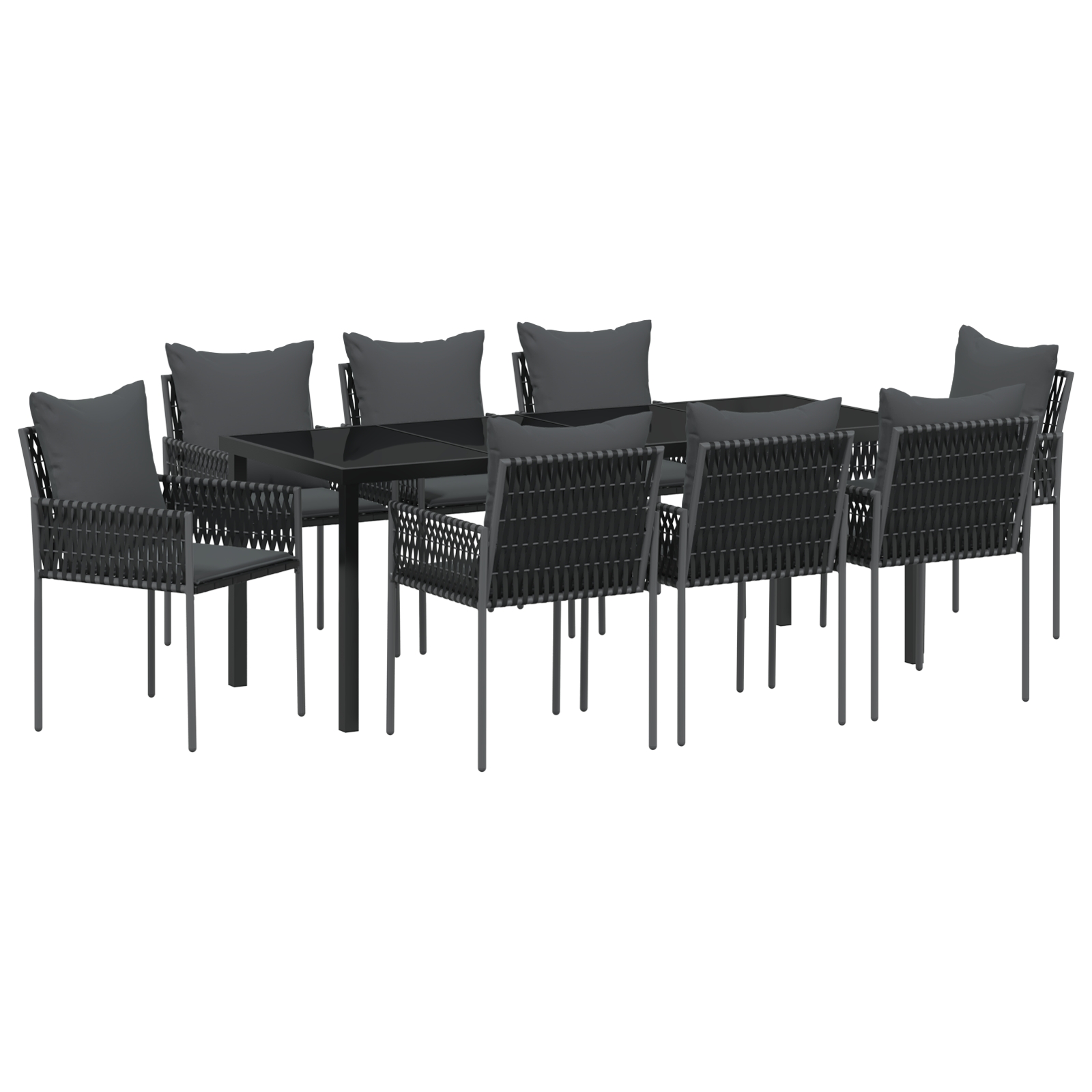 Set de dining pentru grădină 9 piese cu perne din ratan negru