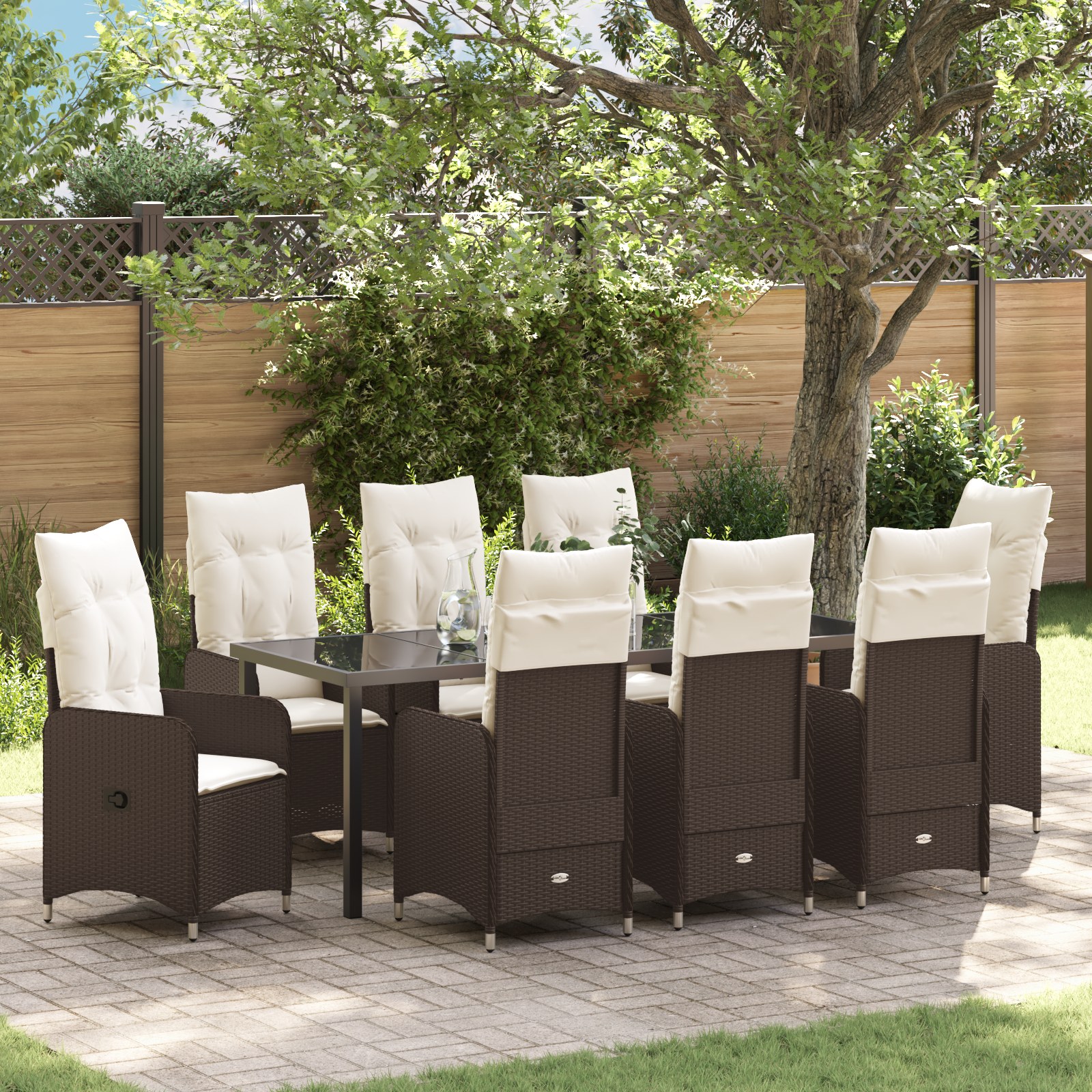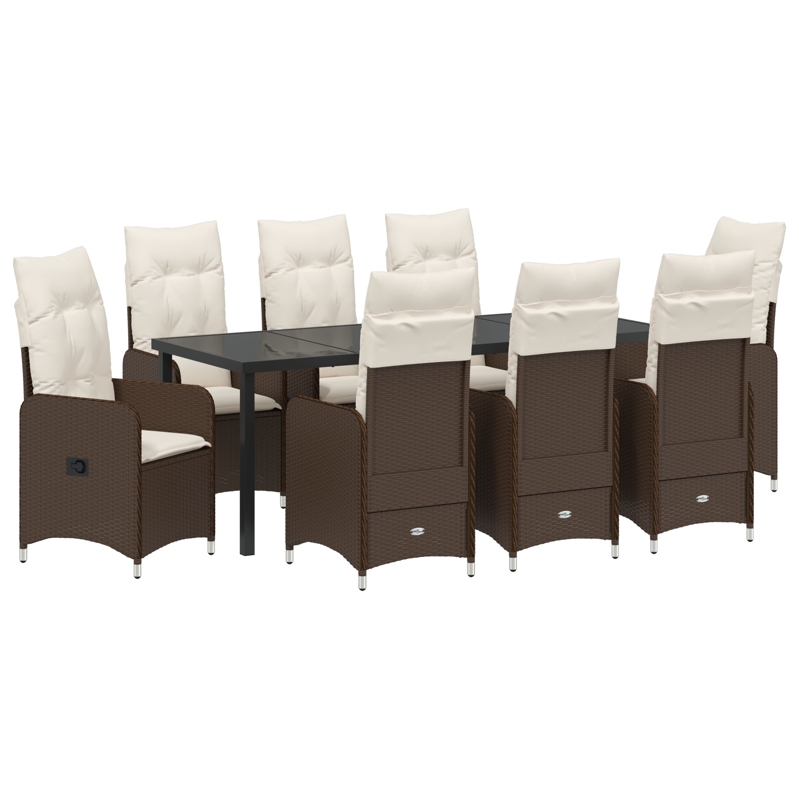 Set de Dining pentru Grădină 9 Piese cu Perne Maro