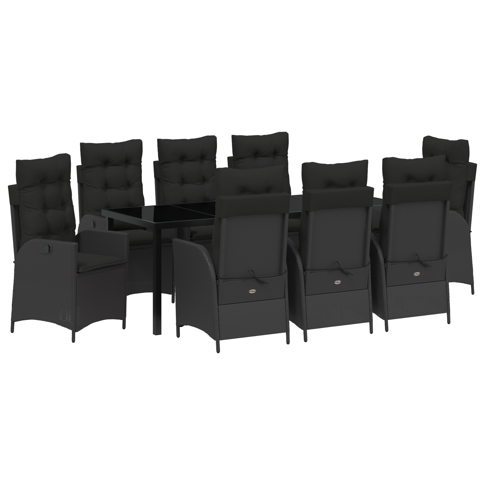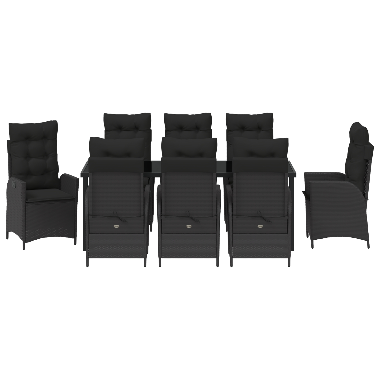 Set de dining pentru grădină 9 piese cu perne Negru Ratan Poli
