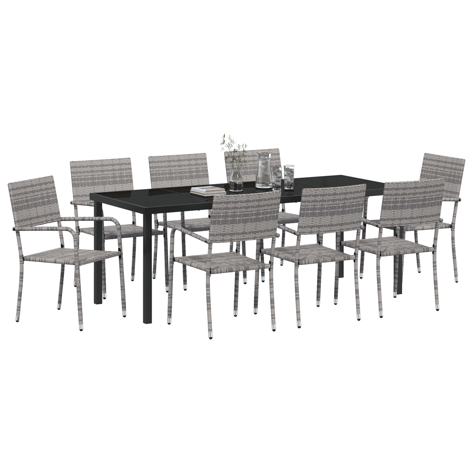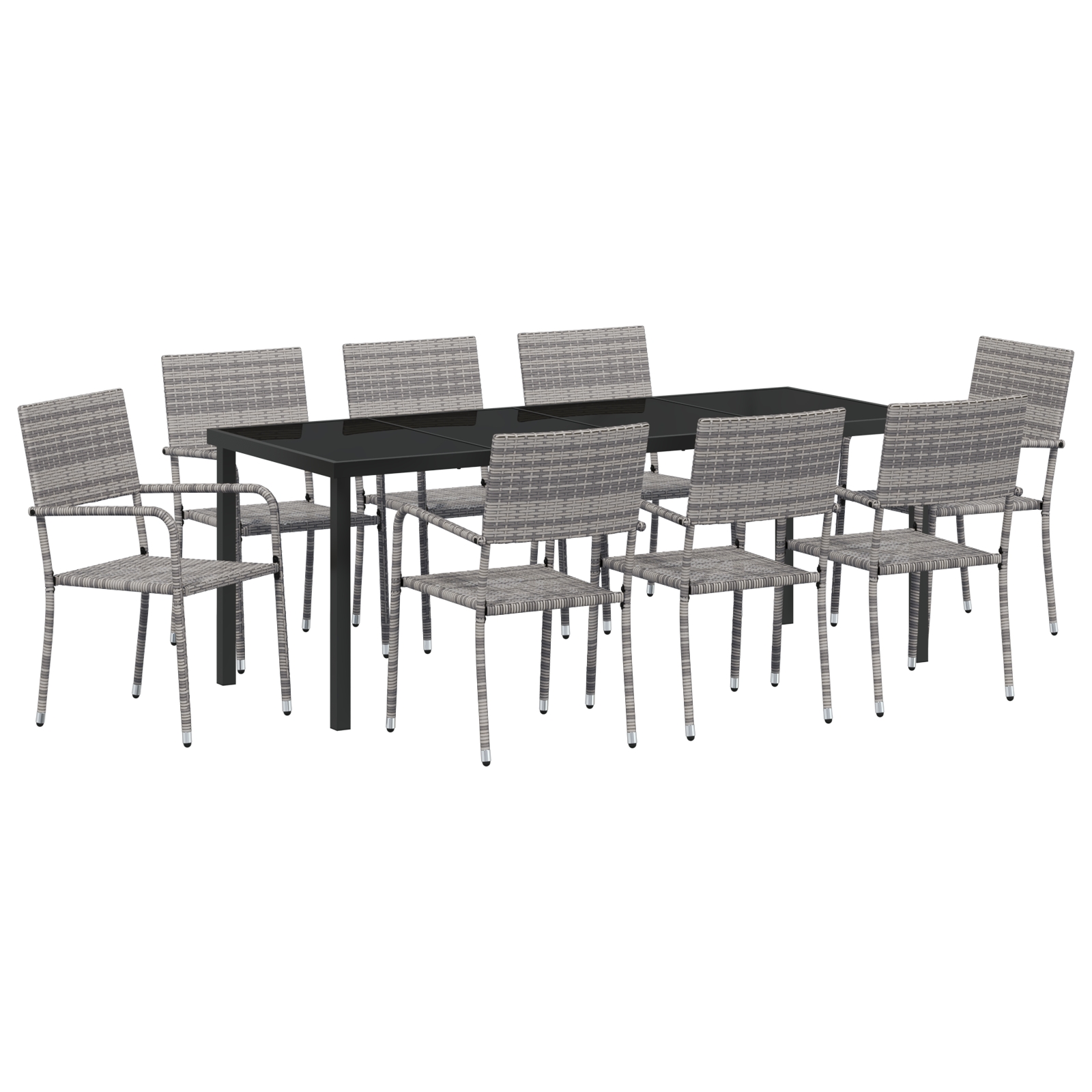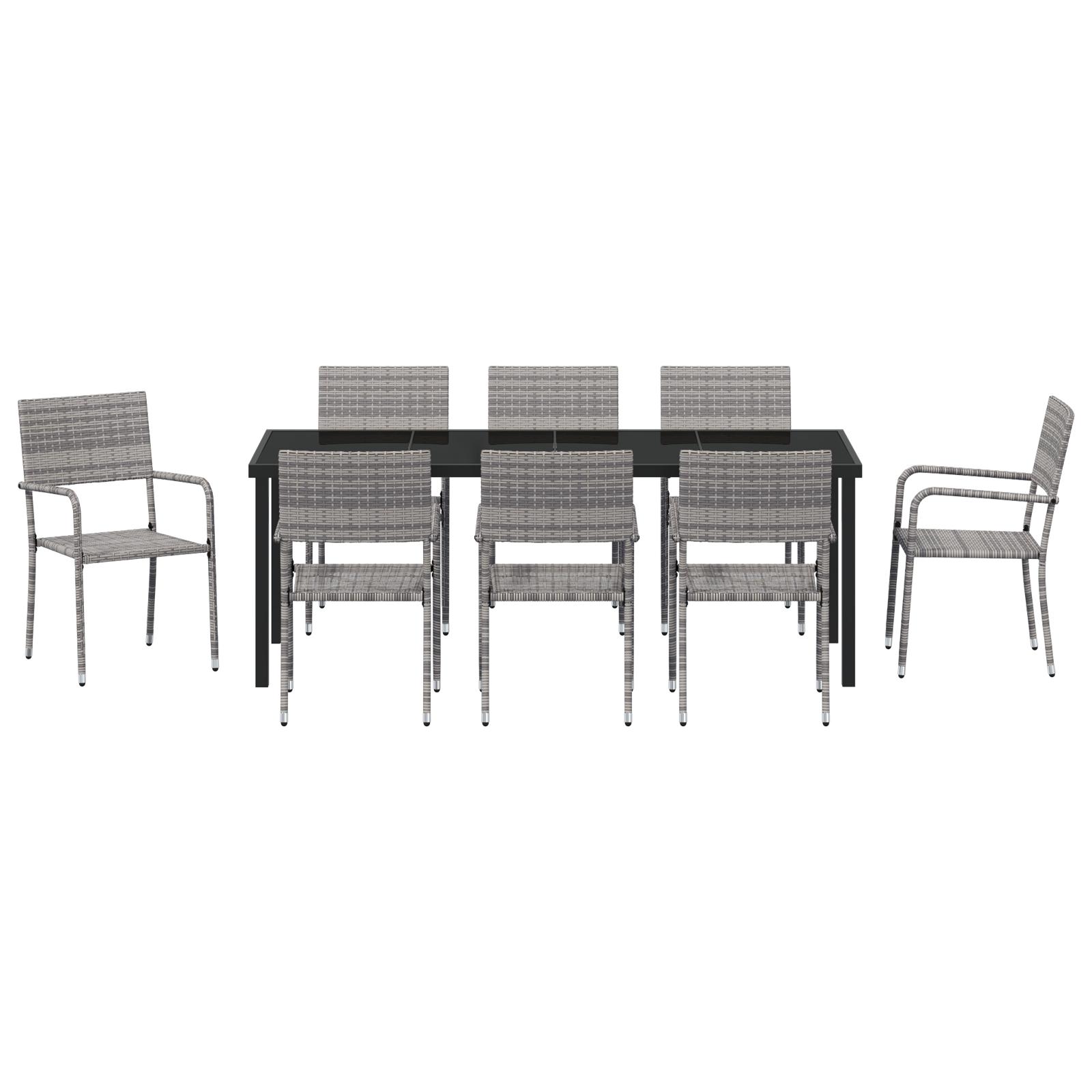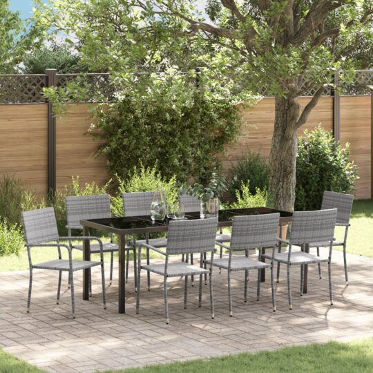 Fii primul care scrii o recenzie pentru „Set de dining pentru grădină 9 piese gri din poliratan”