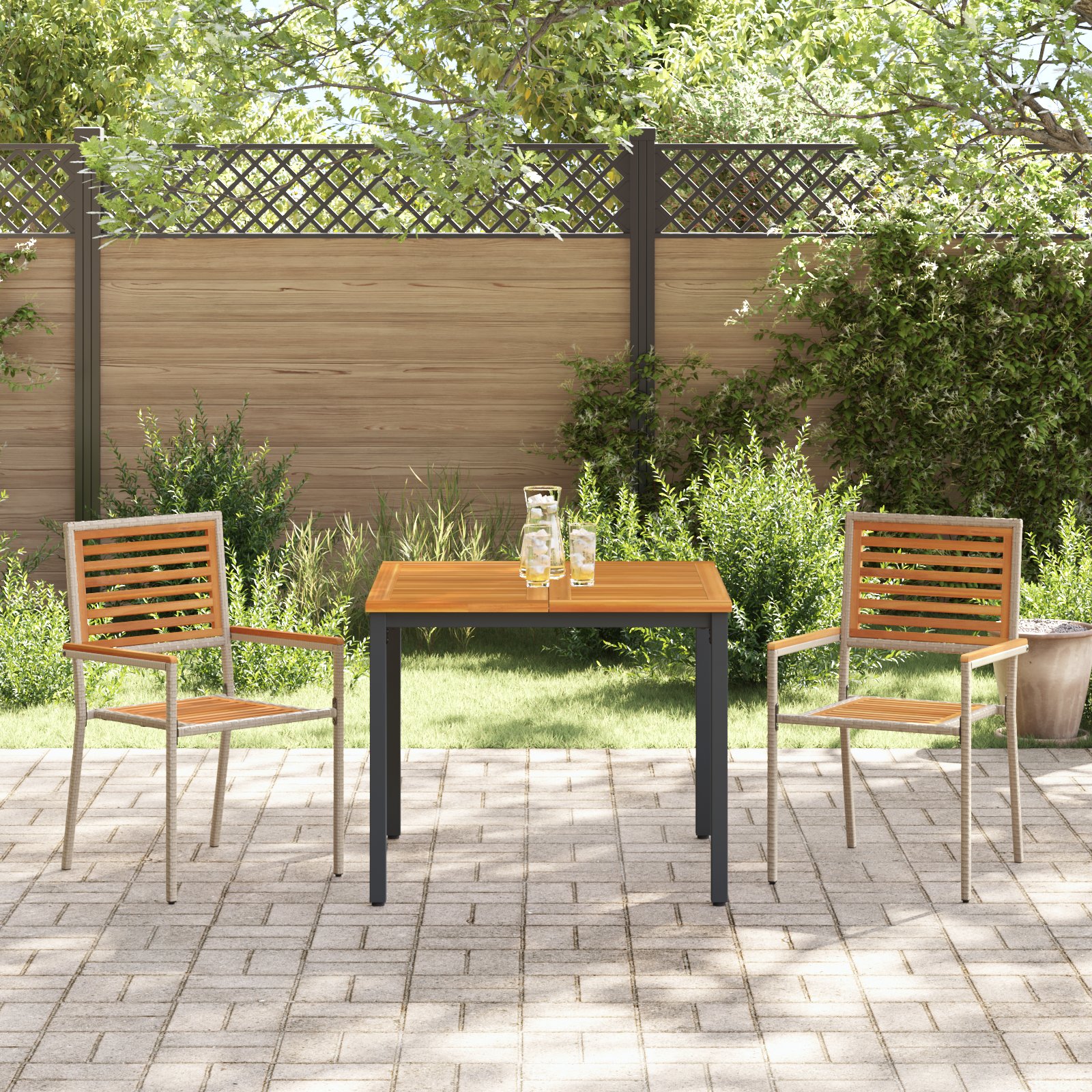 Set de Dining pentru Grădină cu 3 Piese Bej din Ratan Poly și Acacia, Scaune stivuite pentru grădină cu perne – set de 2 în bej din ratan poly, Masă pentru grădină 90x90x75 cm din lemn solid de acacia și metal
