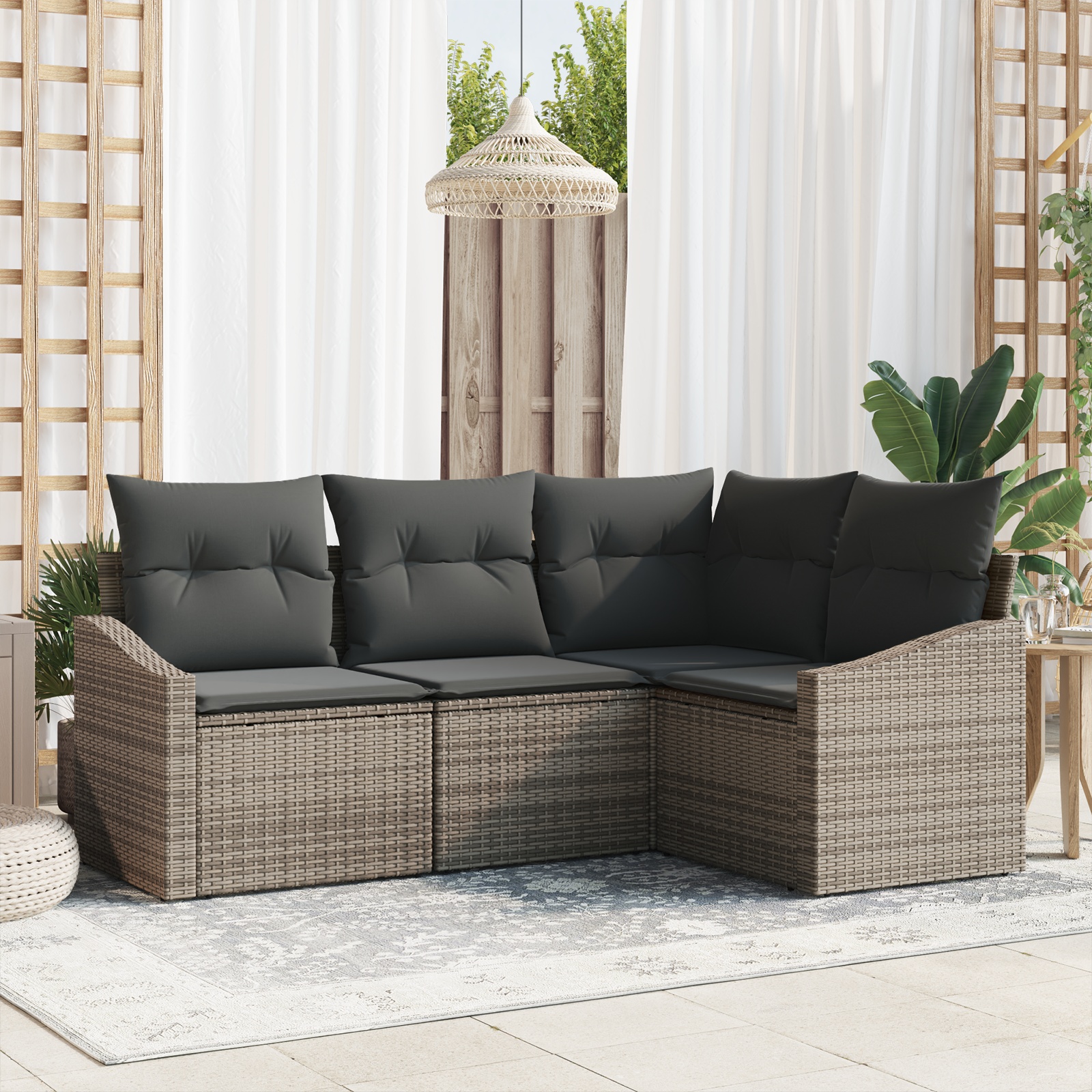 Set de masă pentru grădină cu pernă cu depozitare 4 pcs Gri