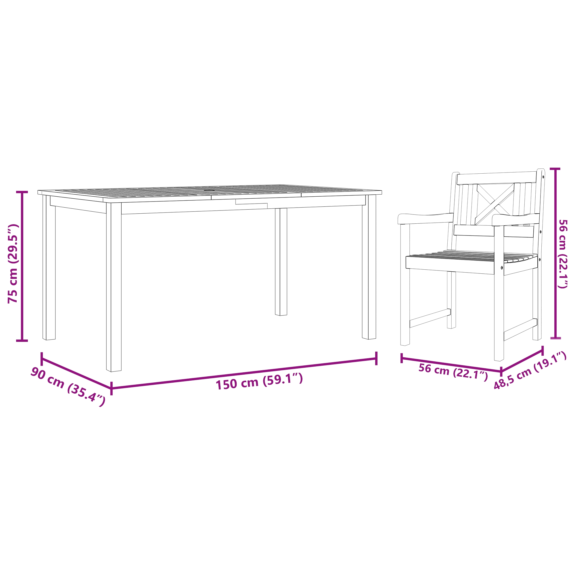- Material Super: Setul ăsta de dining pentru grădină e făcut din lemn de acacia solid, cunoscut pentru durabilitate și aspect fain. Finisajul cu ulei ajută să rămână frumos și protejează împotriva umidității, deci o să zacă și o să trebuiască să arate bine mulți ani de acum înainte.