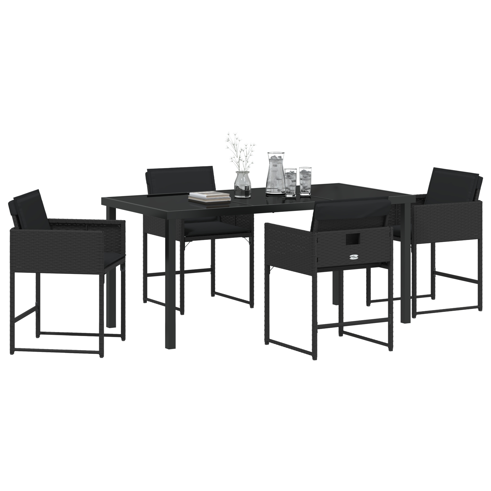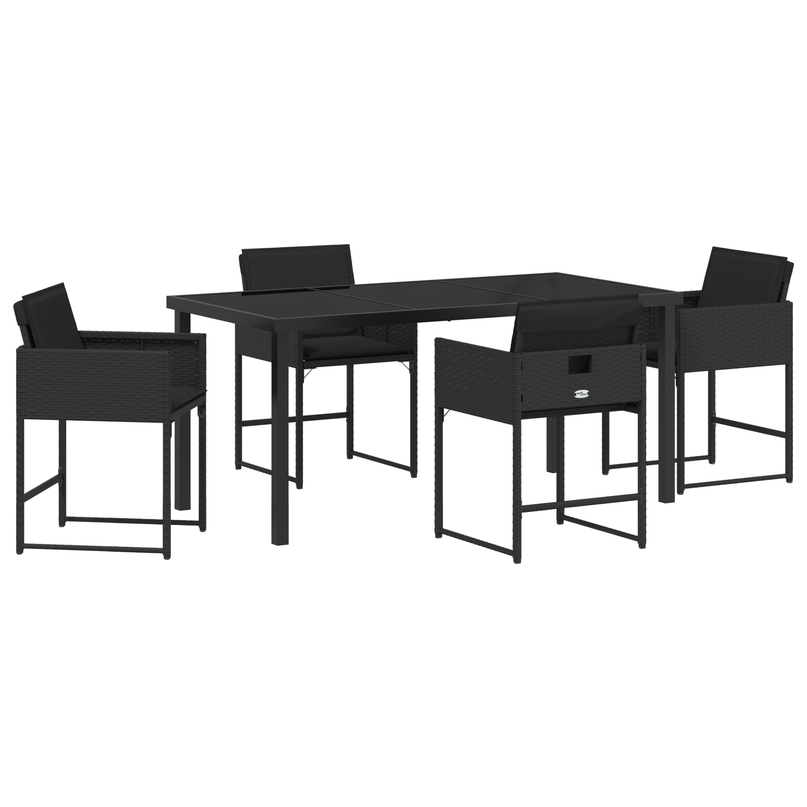 Set de masă pentru grădină cu pernă 5 pcs Negru Rattan poli