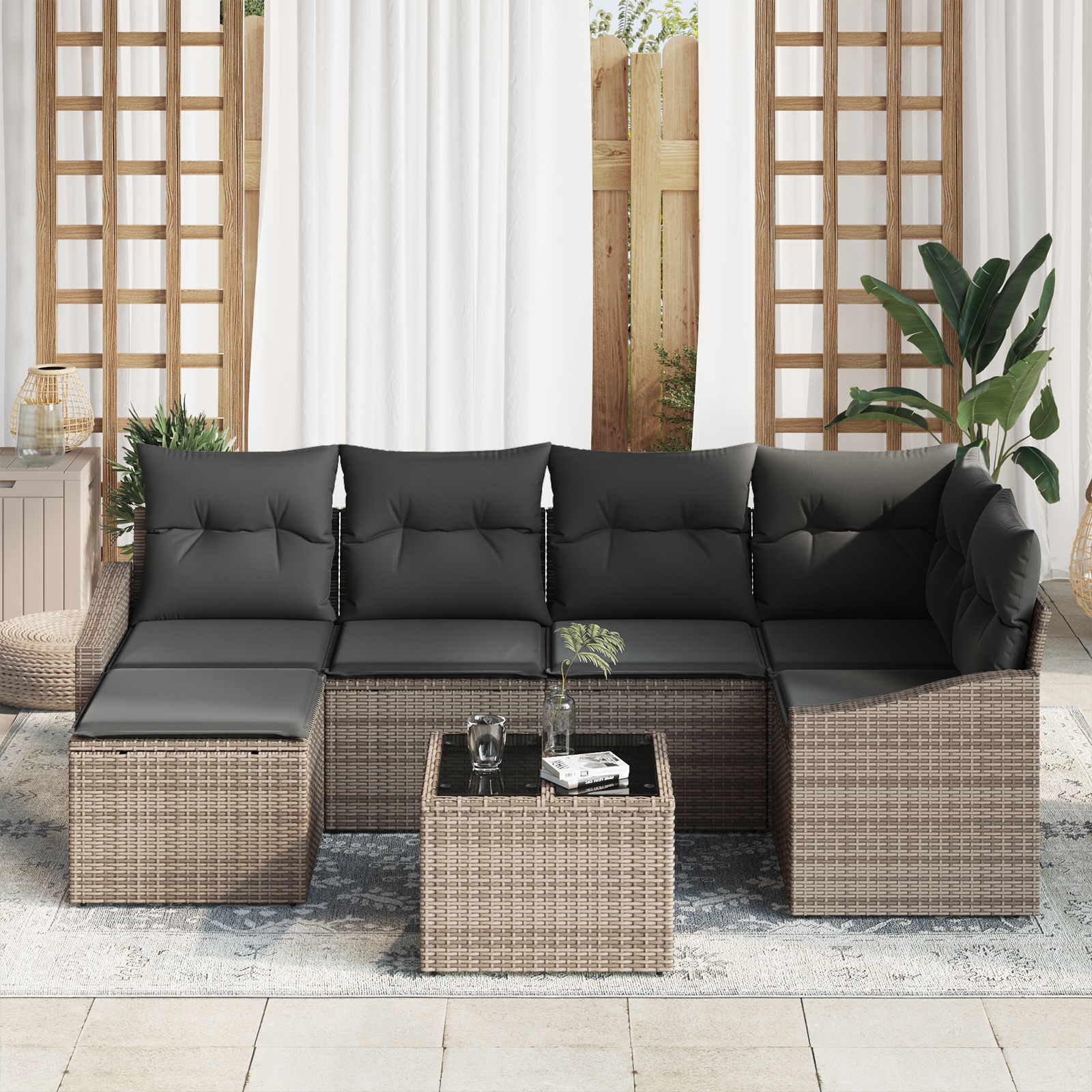 • Componente incluse: Setul vine cu canapele confortabile cu cotieră și spătar din poliratan care oferă suport excelent. Pernele din spumă asigură un loc super comod, perfect pentru sesiuni lungi de relaxare. O să-ți placă cum arată din toate unghiurile datorită finisajului său ordonat. Designul modular permite să amesteci lucrurile ușor.