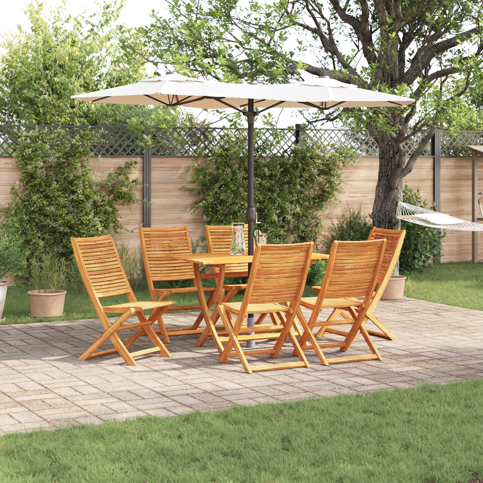 - Design Pliabil Oferă stocare care economisește spațiu și mobilitate ușoară. Transformă-ți grădina într-un spațiu de mese flexibil care se poate adapta la adunări de dimensiuni variate, datorită naturii sale pliante.