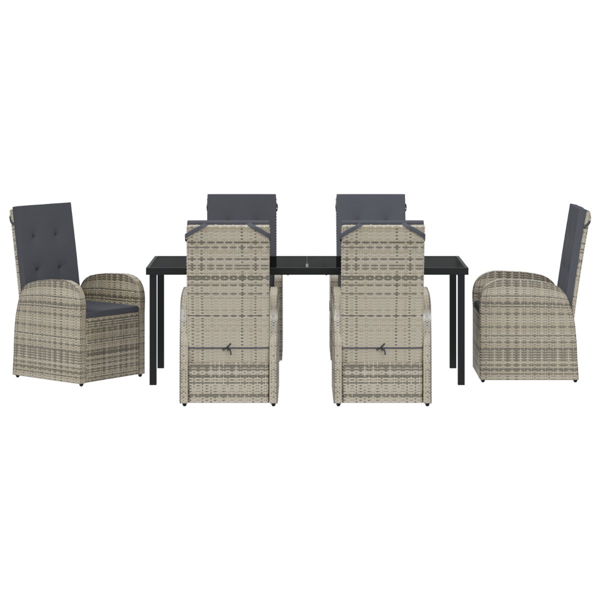 Set de dining pentru grădină cu 7 piese și perne Gri din ratan poliester