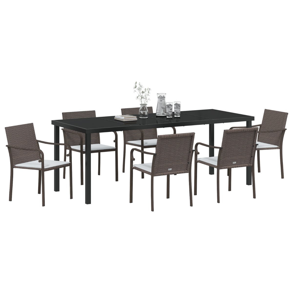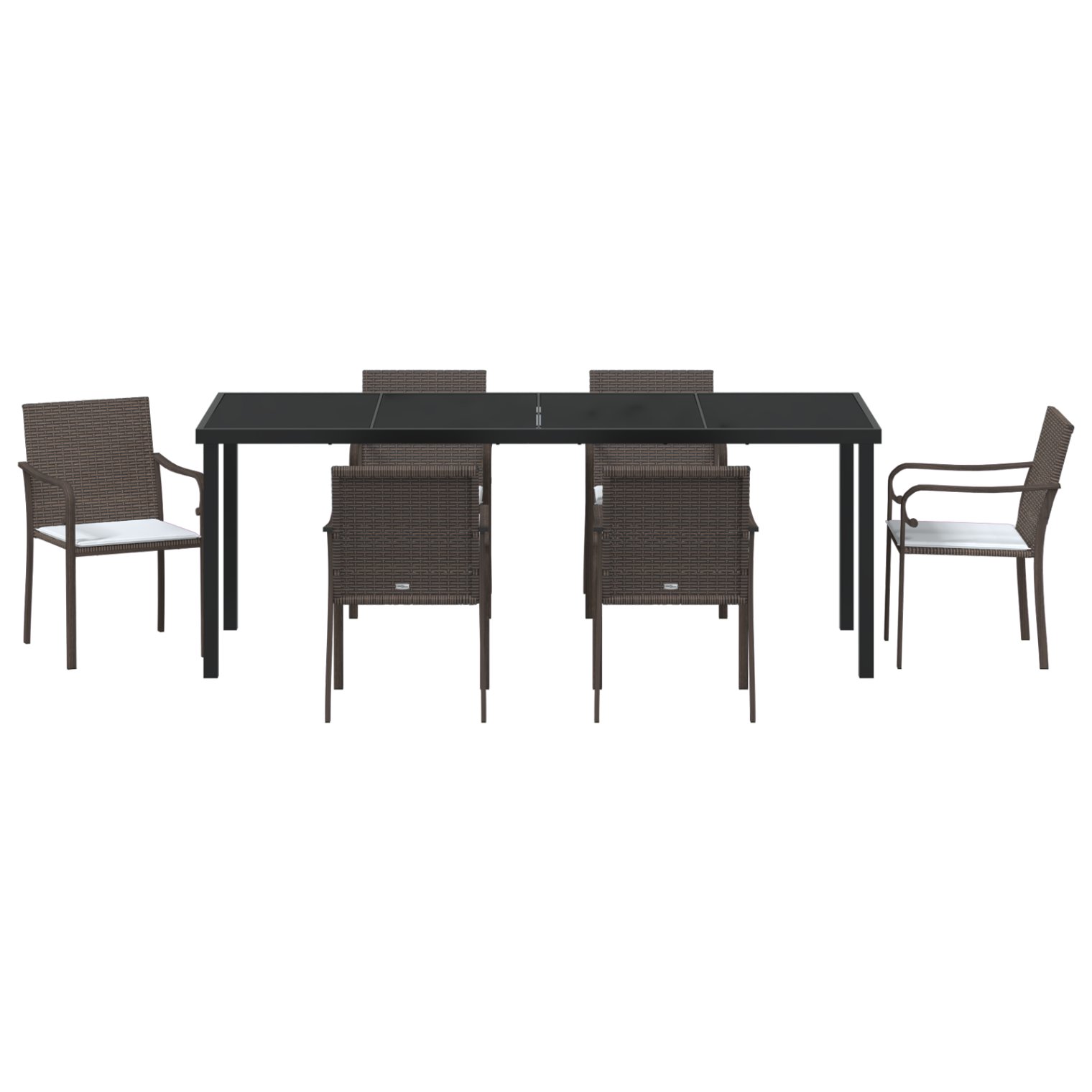 Set de dining pentru grădină cu 7 piese și perne maro din poliratan