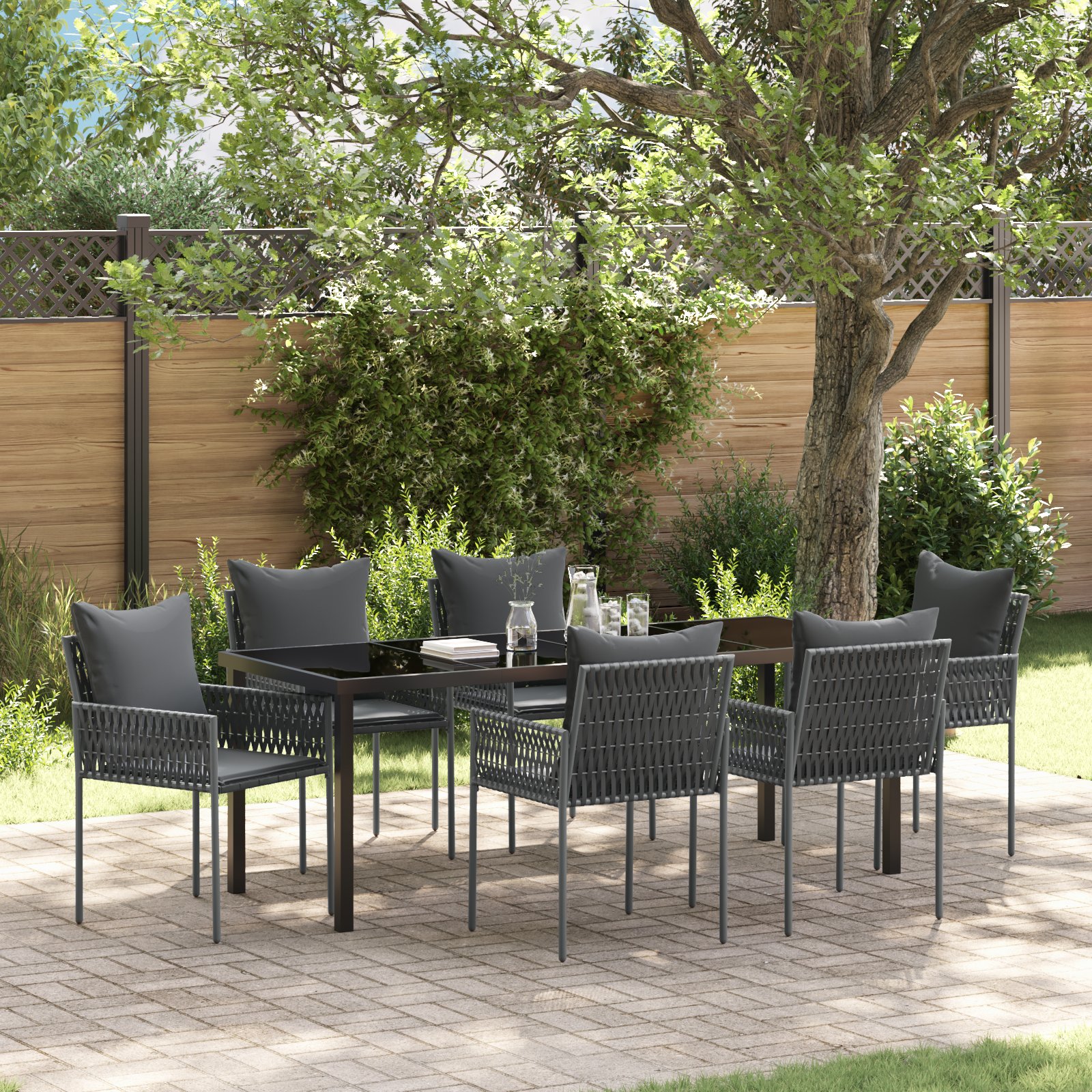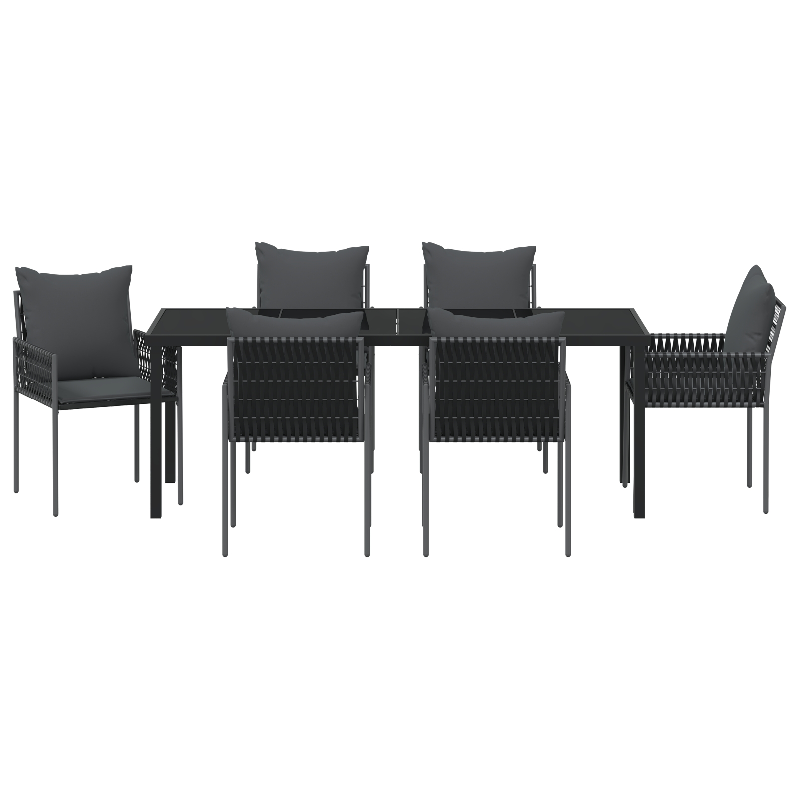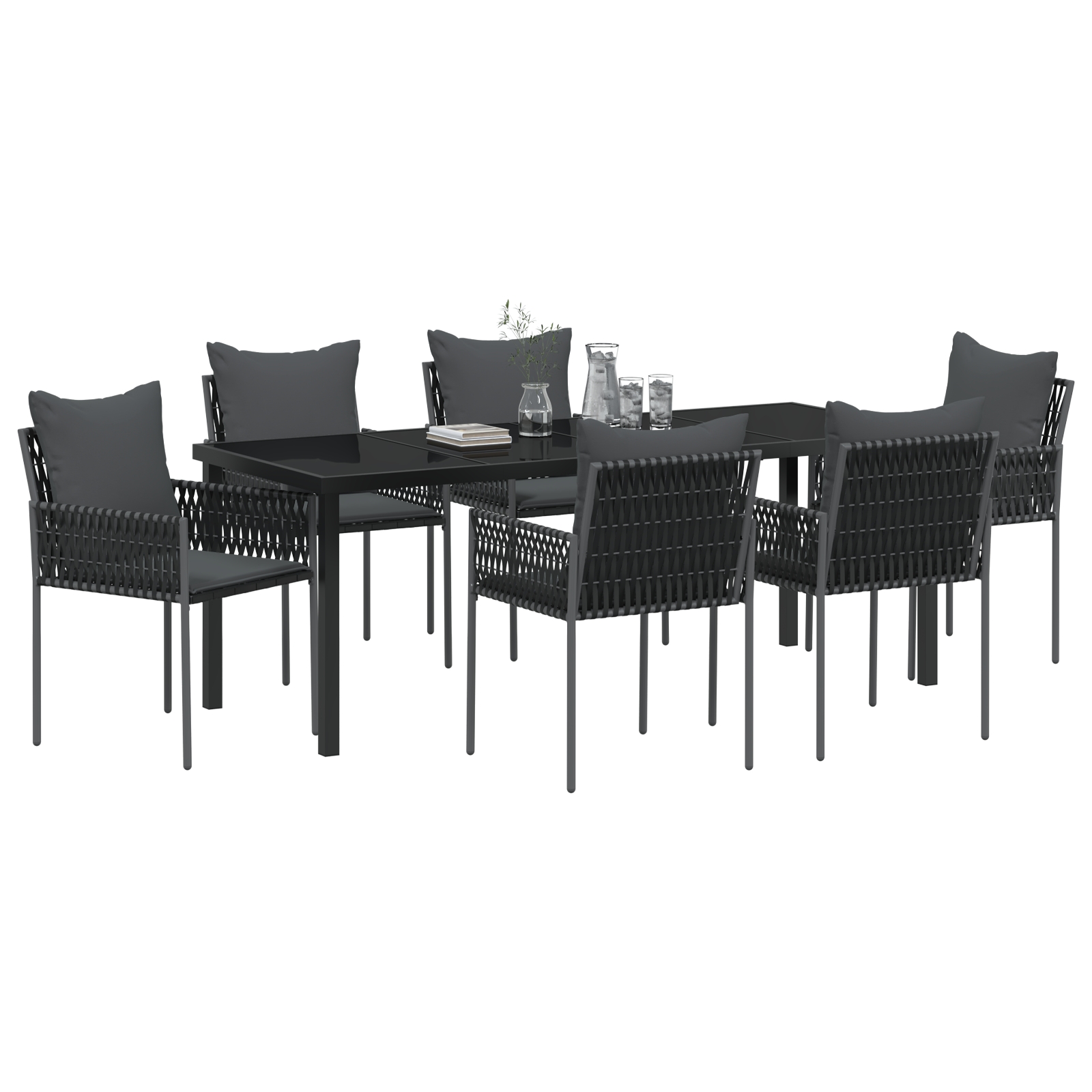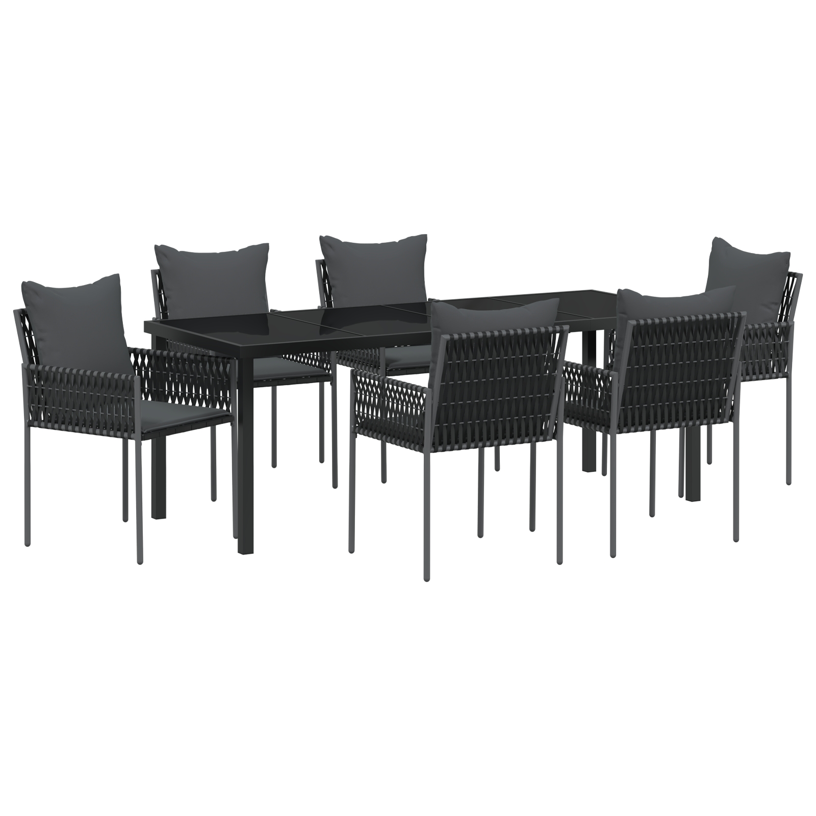 Fii primul care scrii o recenzie pentru „Set de dining pentru grădină cu 7 piese și perne, rattan negru”