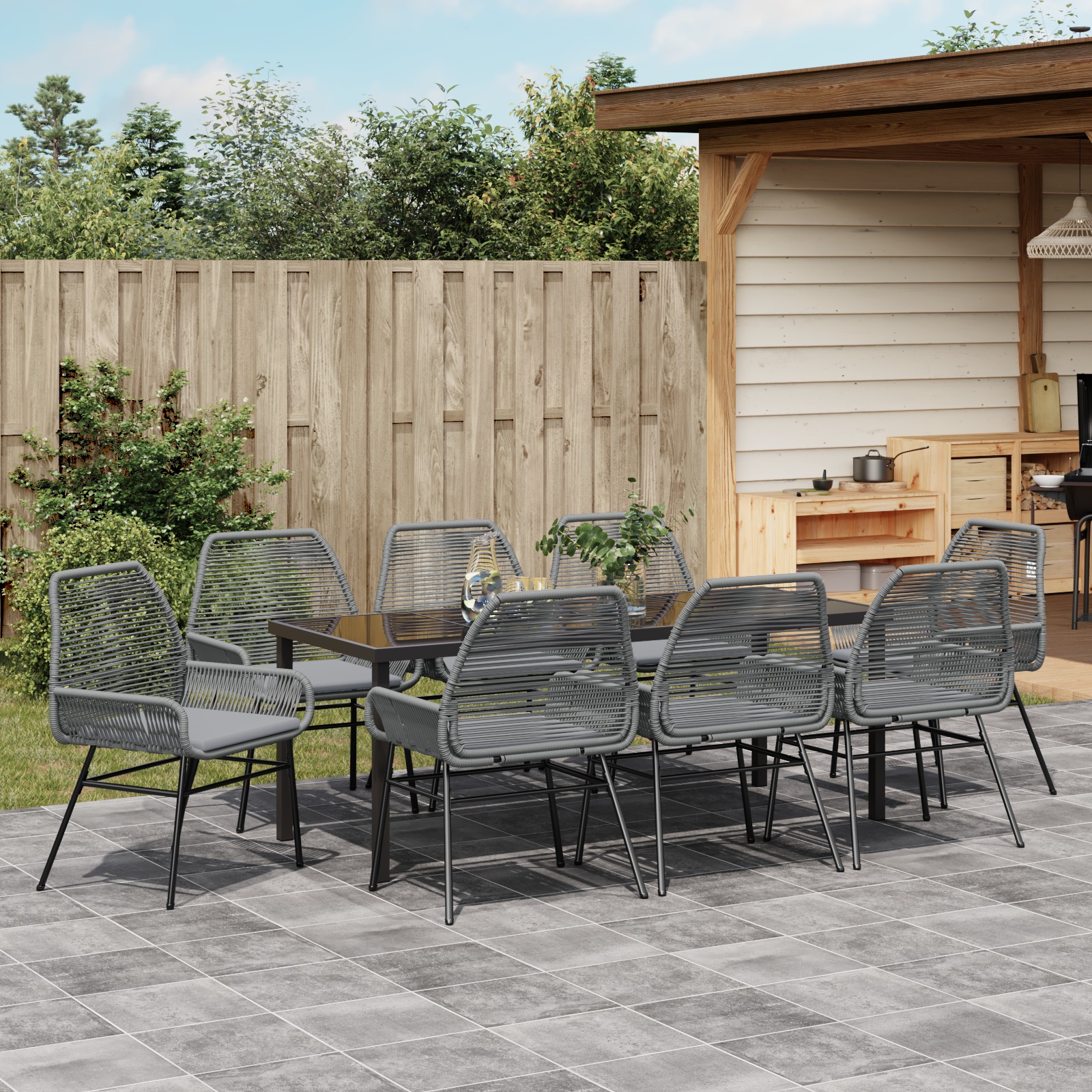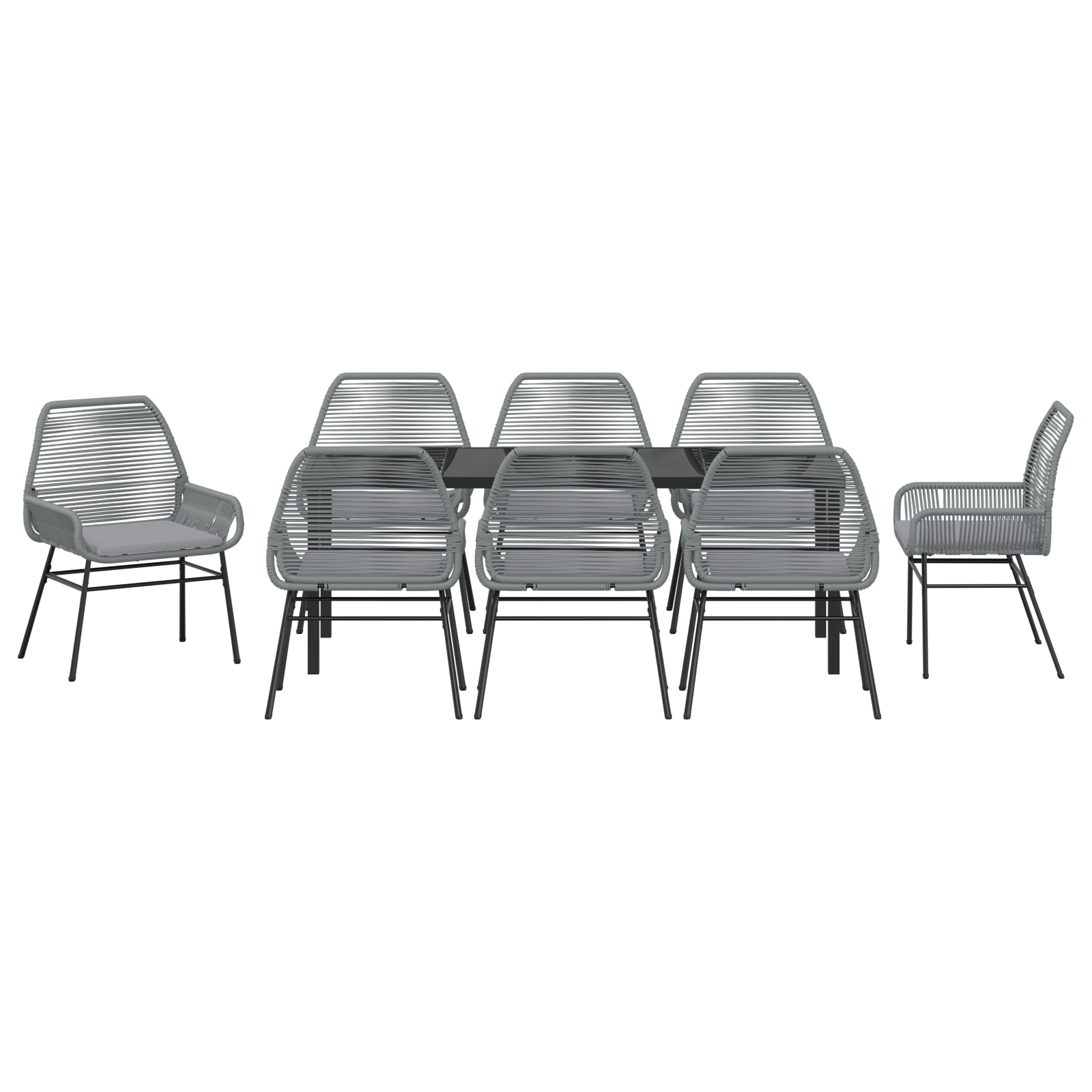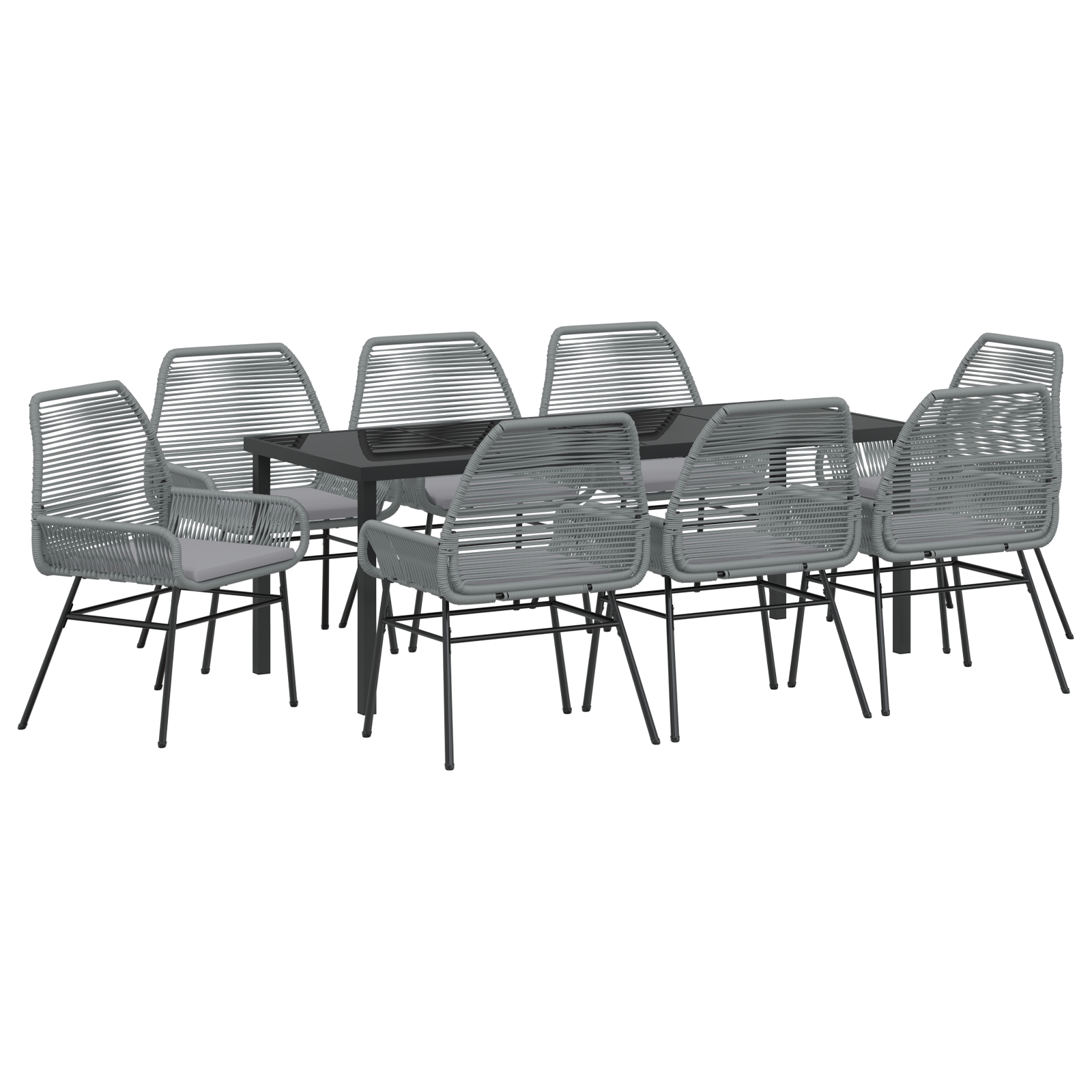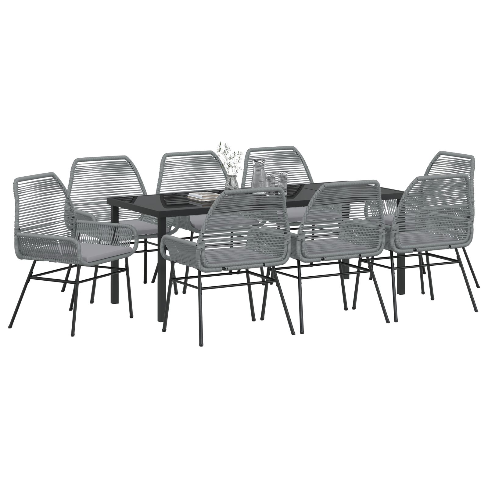 Set de Dining pentru Grădină cu 9 Piese cu Pernițe Gri Poliratan