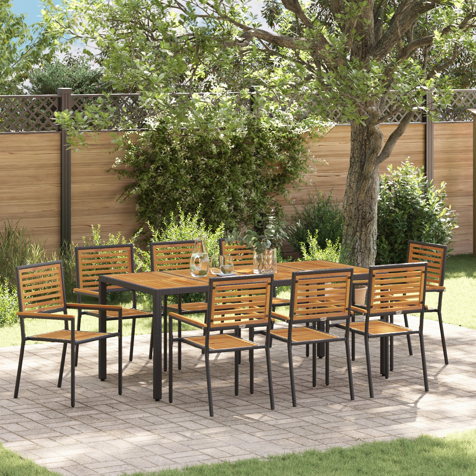 Setul de dining pentru grădină modern combină linii elegante și un aspect minimalist cu utilitate și durabilitate, făcându-l perfect pentru cei care iubesc aerul liber. E creat pentru grădini sau terase stylish, având un look clasic din lemn de acacia combinat cu un cadru din oțel foarte atrăgător. E gândit să-ți ofere un loc chic pentru mese în aer liber, evenimente sociale sau momente de relaxare. Obiectul ăsta aduce o atmosferă calmă în spațiul tău exterior, și îmbunătățește vibe-ul cu accente calde și elegante.