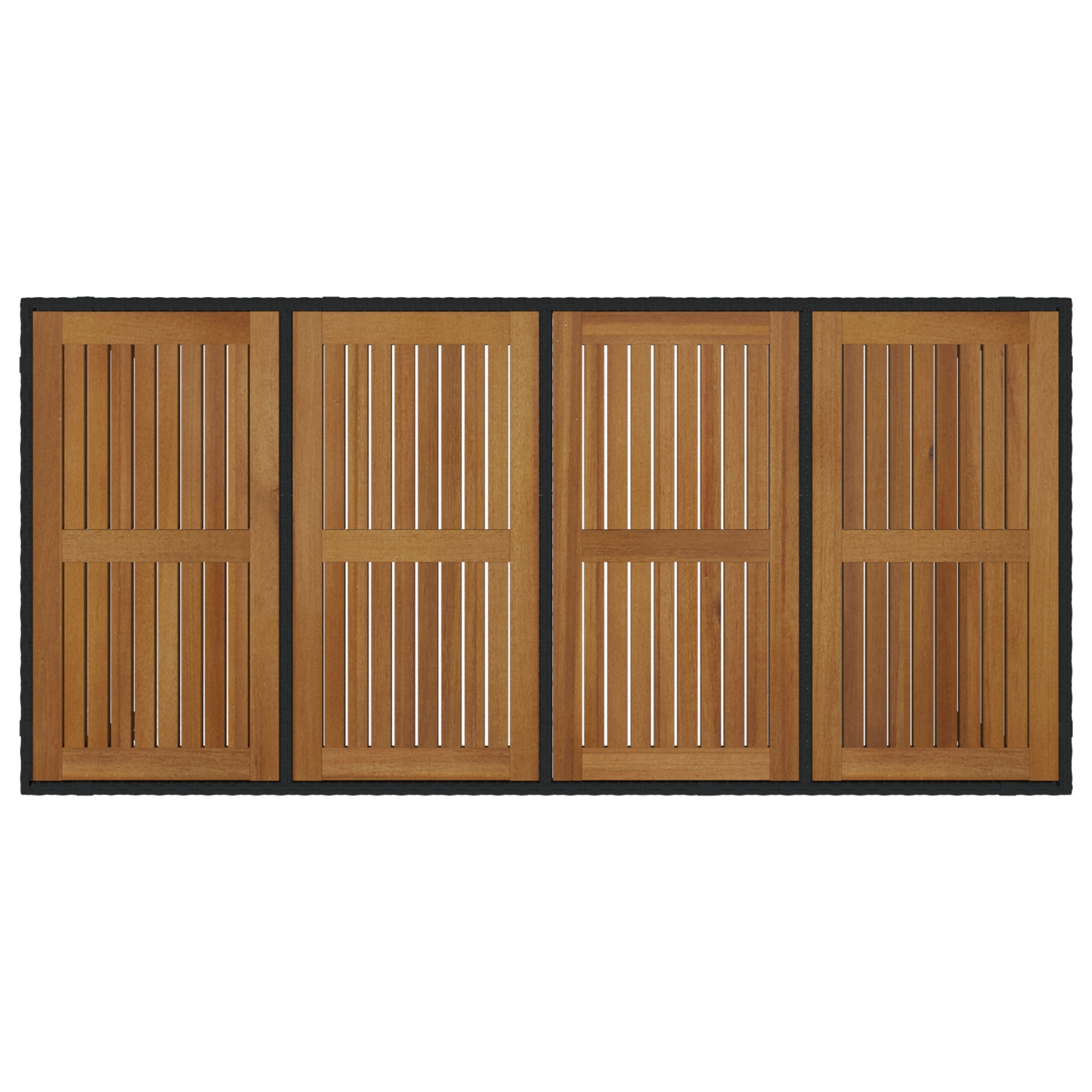 - Materiale de Calitate Setul ăsta pentru grădină are poliratan pentru scaune și spătare, ce oferă o durabilitate fantastică în fața vremii. Combinate cu lemn masiv de acacia pe suprafețe, oferă un look natural și atractiv, cu picioare moderne din oțel rezistent la rugină pentru o bază solidă, perfectă pentru toate utilizările în aer liber.