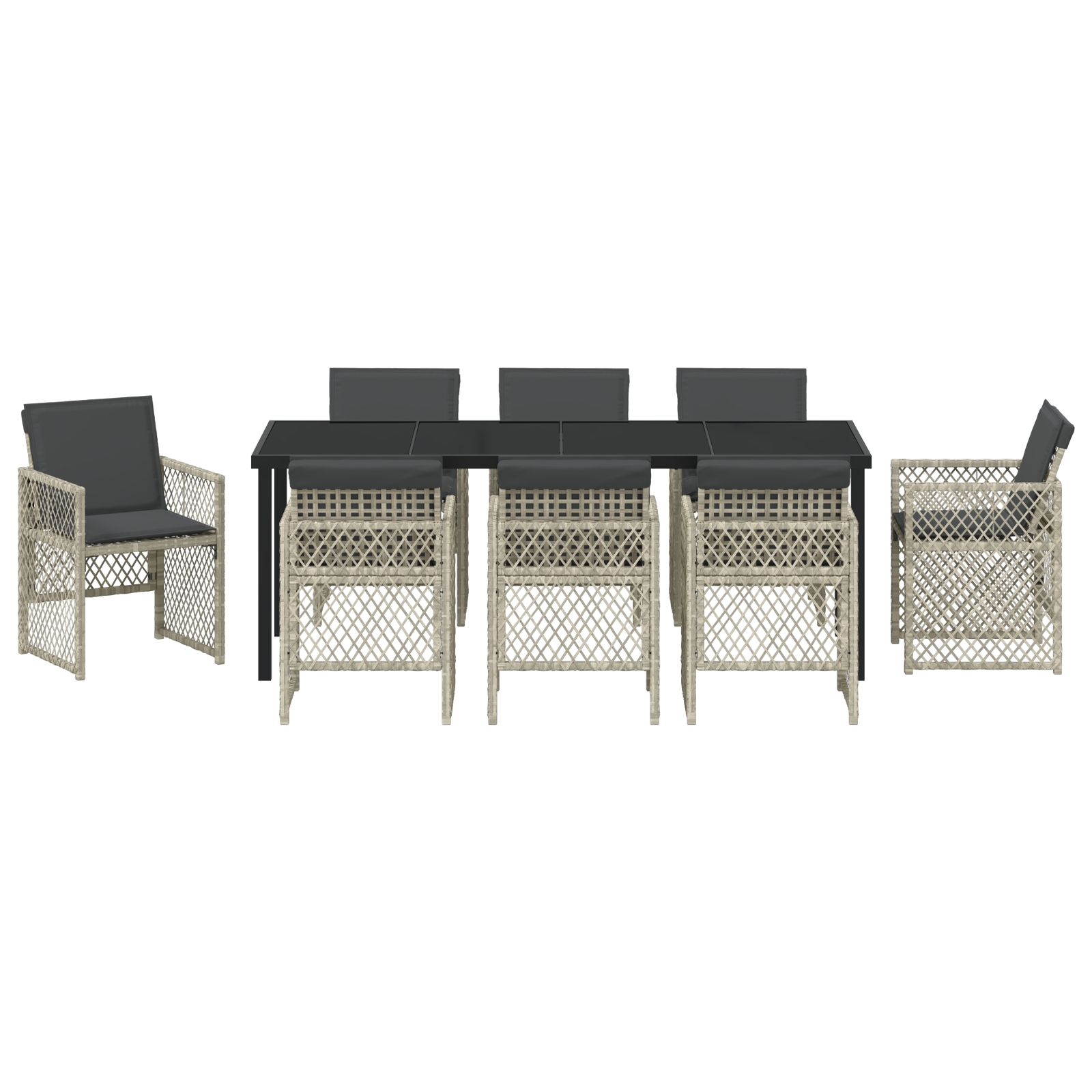 Acest set de dining pentru grădină oferă un farmec modern pentru viața în aer liber, combinând funcționalitatea cu stilul. E perfect pentru terase mari sau grădini, iar designul său elegant gri deschis și cărbune face orice zonă exterioară mai primitoare, oferind locuri confortabile pentru opt persoane, ideal pentru întâlniri de familie sau cu prietenii.