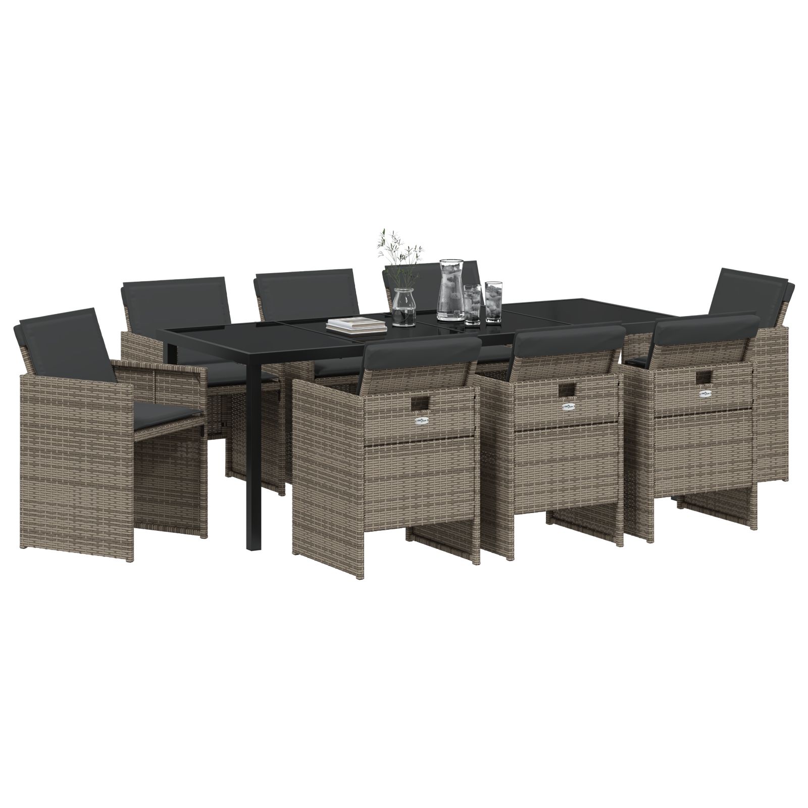 Set de dining pentru grădină cu 9 piese și perne gri din ratan PE