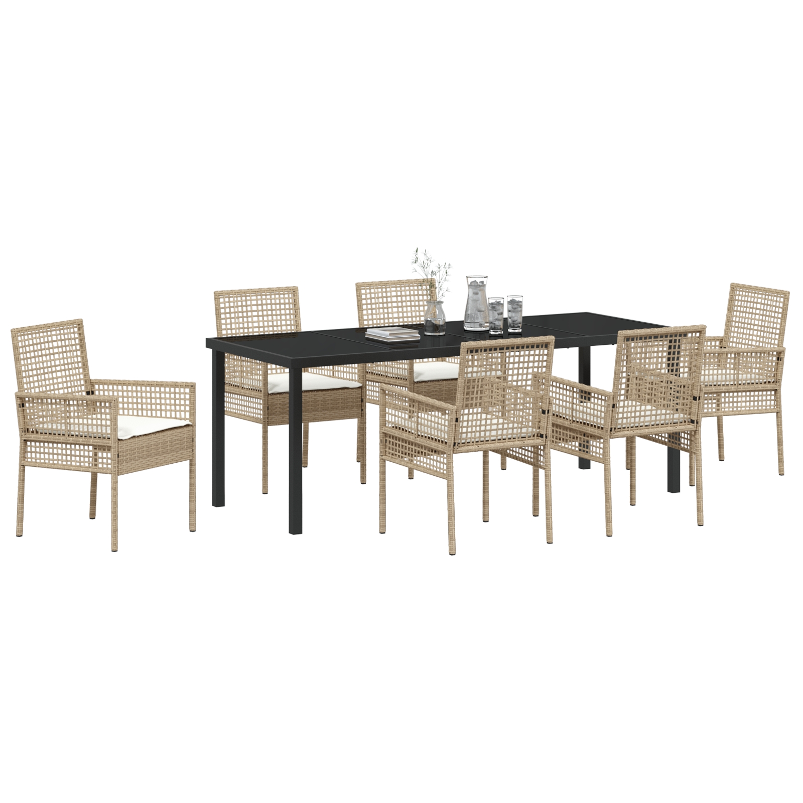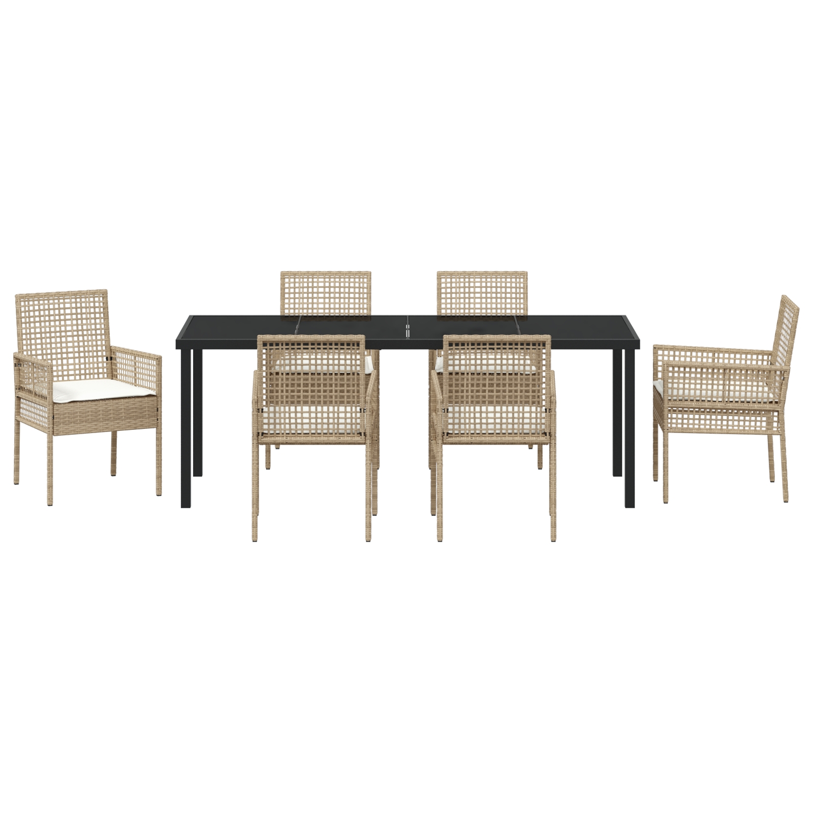 Setul ăsta de dining pentru grădină are un design modern, fiind alegerea perfectă pentru zona ta de dining afară. Include 6 scaune superbe și o masă rectangulară mare, cu o combinație chic de bej și crem, care îmbunătățește vibrația oricărui balcon sau patio.