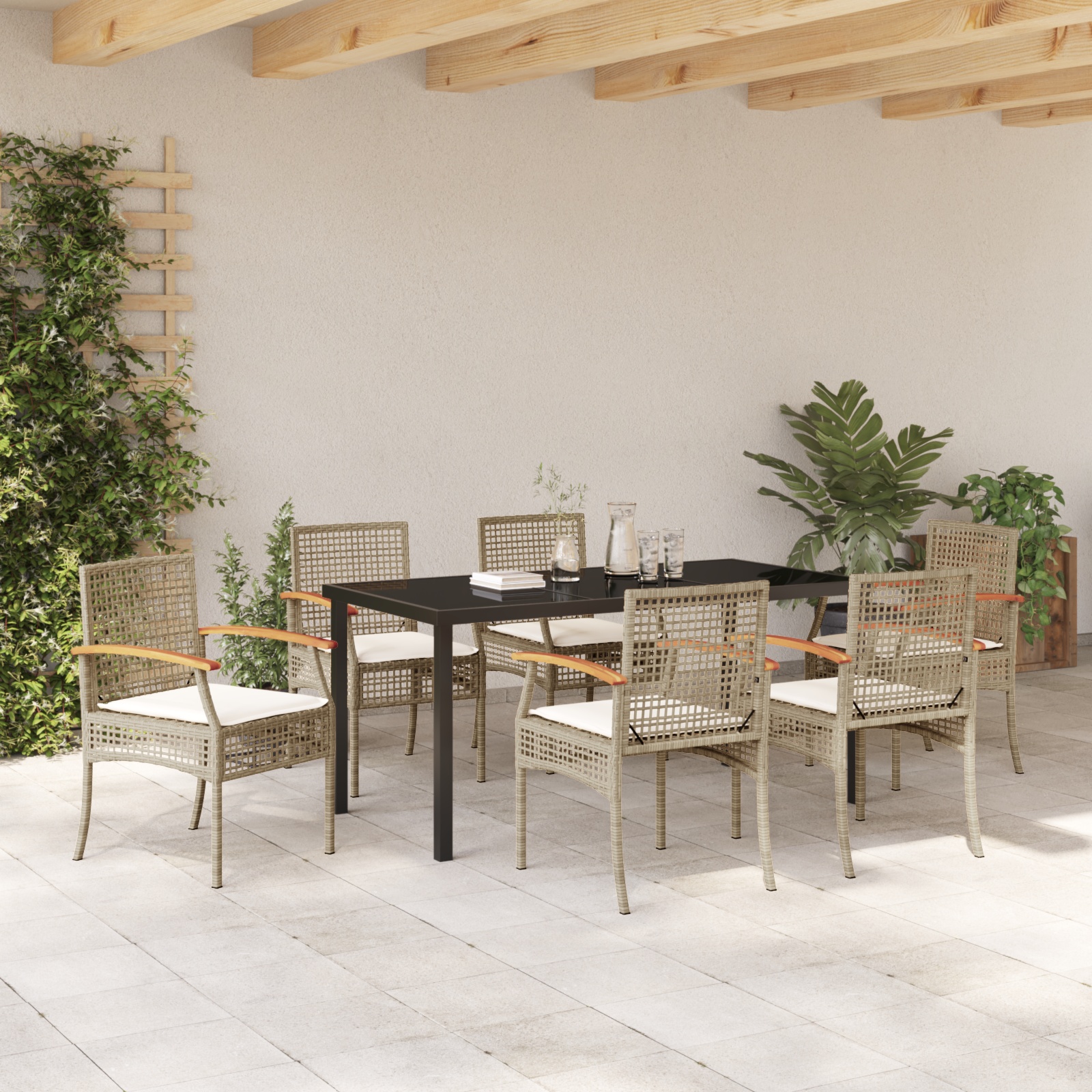 - Experiență Completă de Masă: Setul are tot ce-ți trebuie pentru o distracție faină în aer liber. De la scaunele comfy din poliratan la masa cu sticlă, fiecare element e ales cu grijă pentru confort și stil maxim.