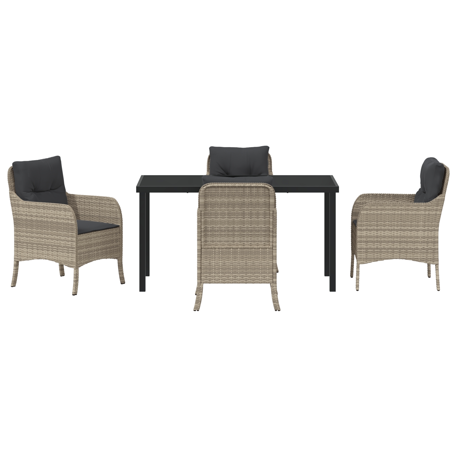 - 4 x scaune de grădină, 1 x masă de grădină, 4 x perne pentru șezut, 4 x perne pentru spate