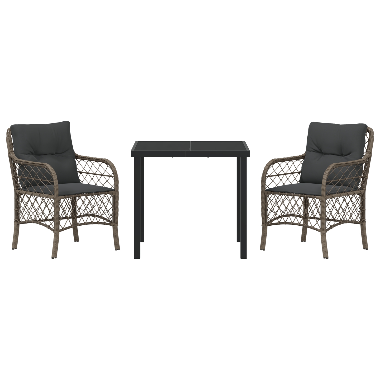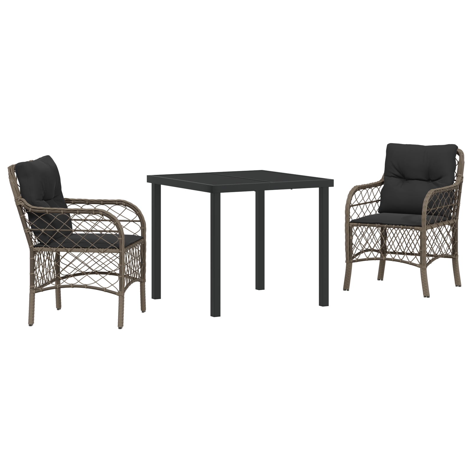 Set de masă pentru grădină cu pernă 3 pcs Gri Rattan poli