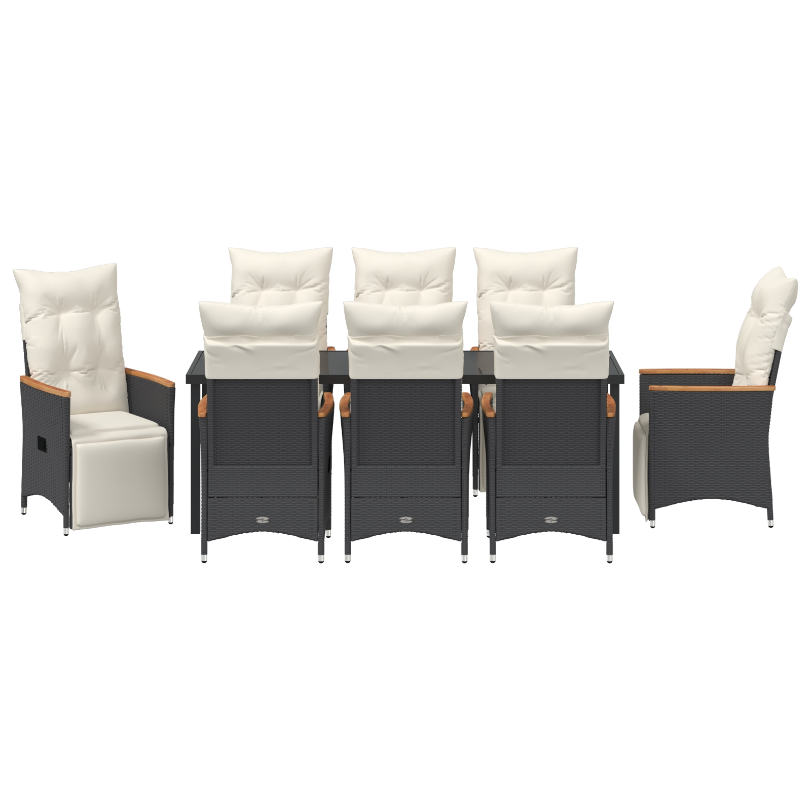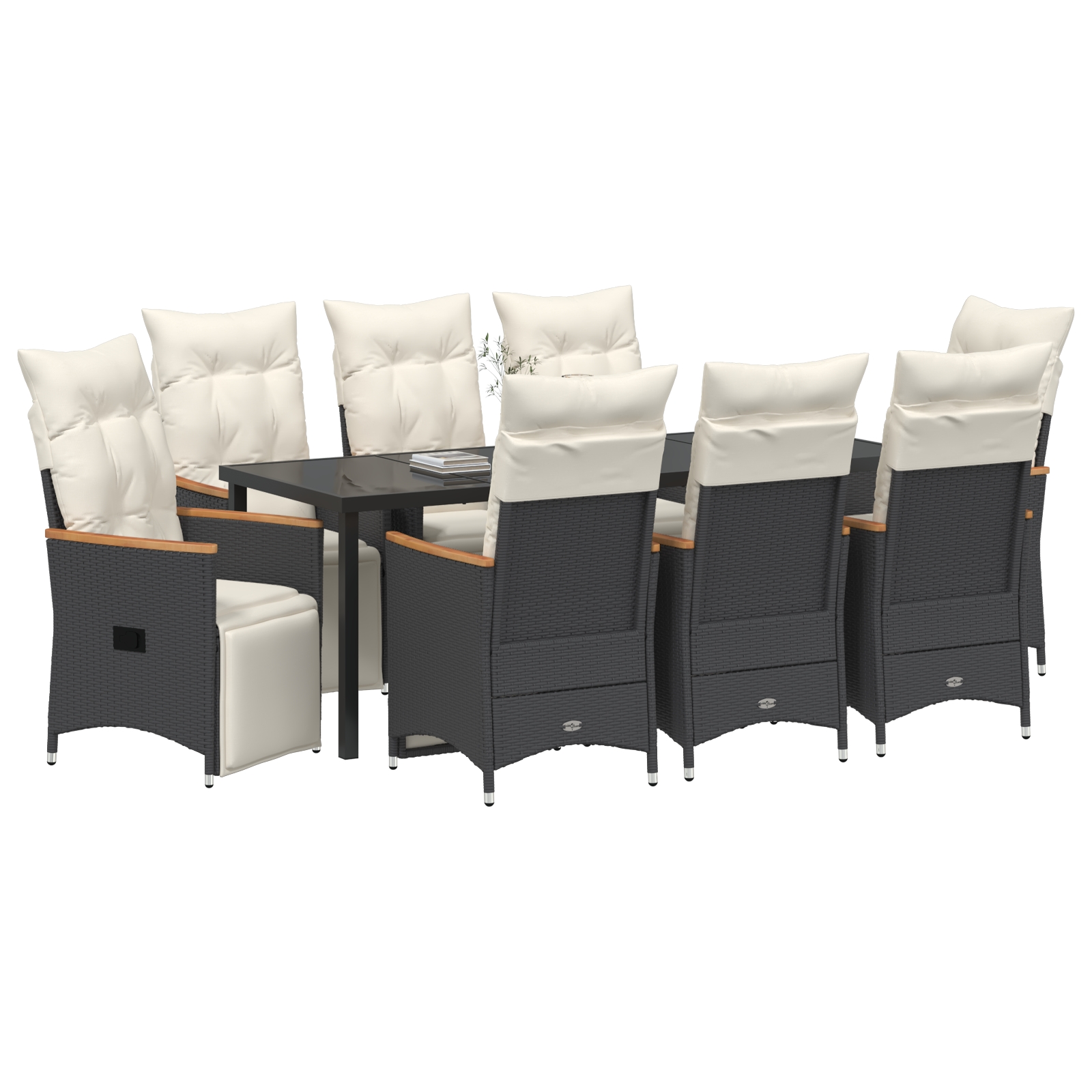 Set de Dining pentru Grădină cu Perne Negru Poliratan 9 Piese