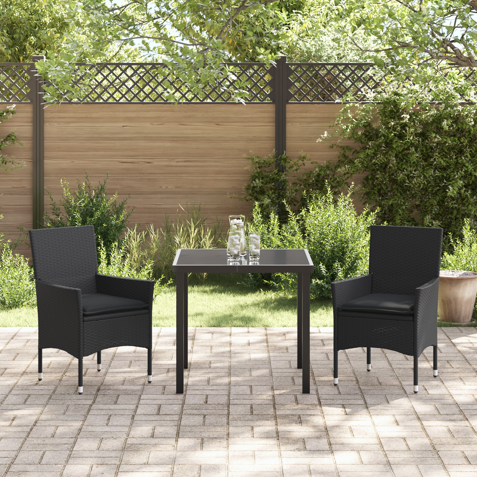 Set de masă pentru grădină cu pernă 3 pcs Negru Rattan poli
