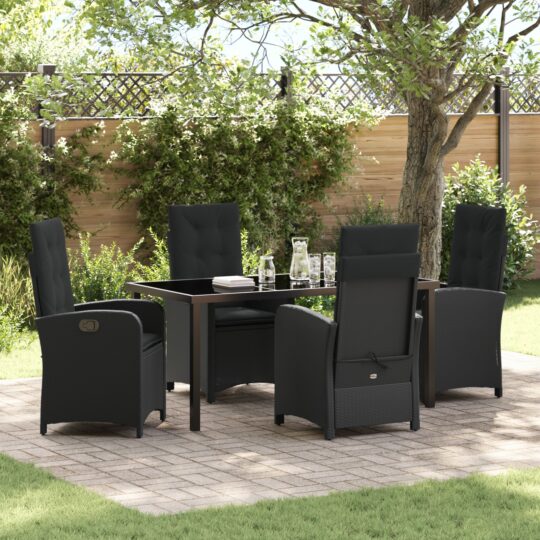 Set de masă pentru grădină 5 pcs Negru poliratan