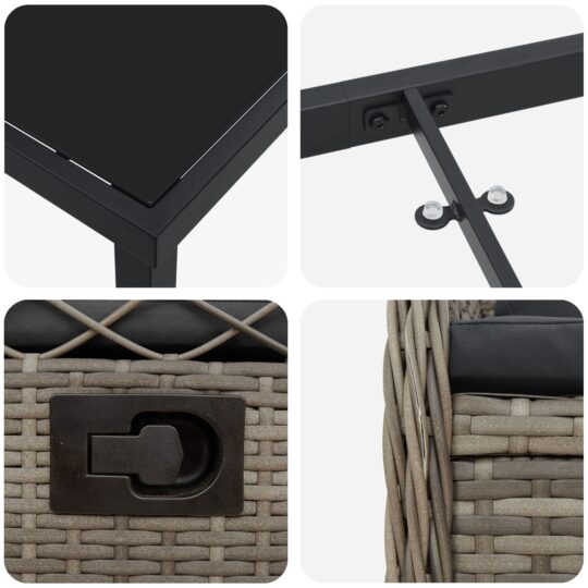 - Construcție Materială: Făcut din poliratan de calitate superioară, setul ăsta de masă pentru grădină e ultra-durabil și rezistent la vreme, perfect pentru exterior. Cadrul din oțel îl face stabil indiferent de condiții și arată grozav.