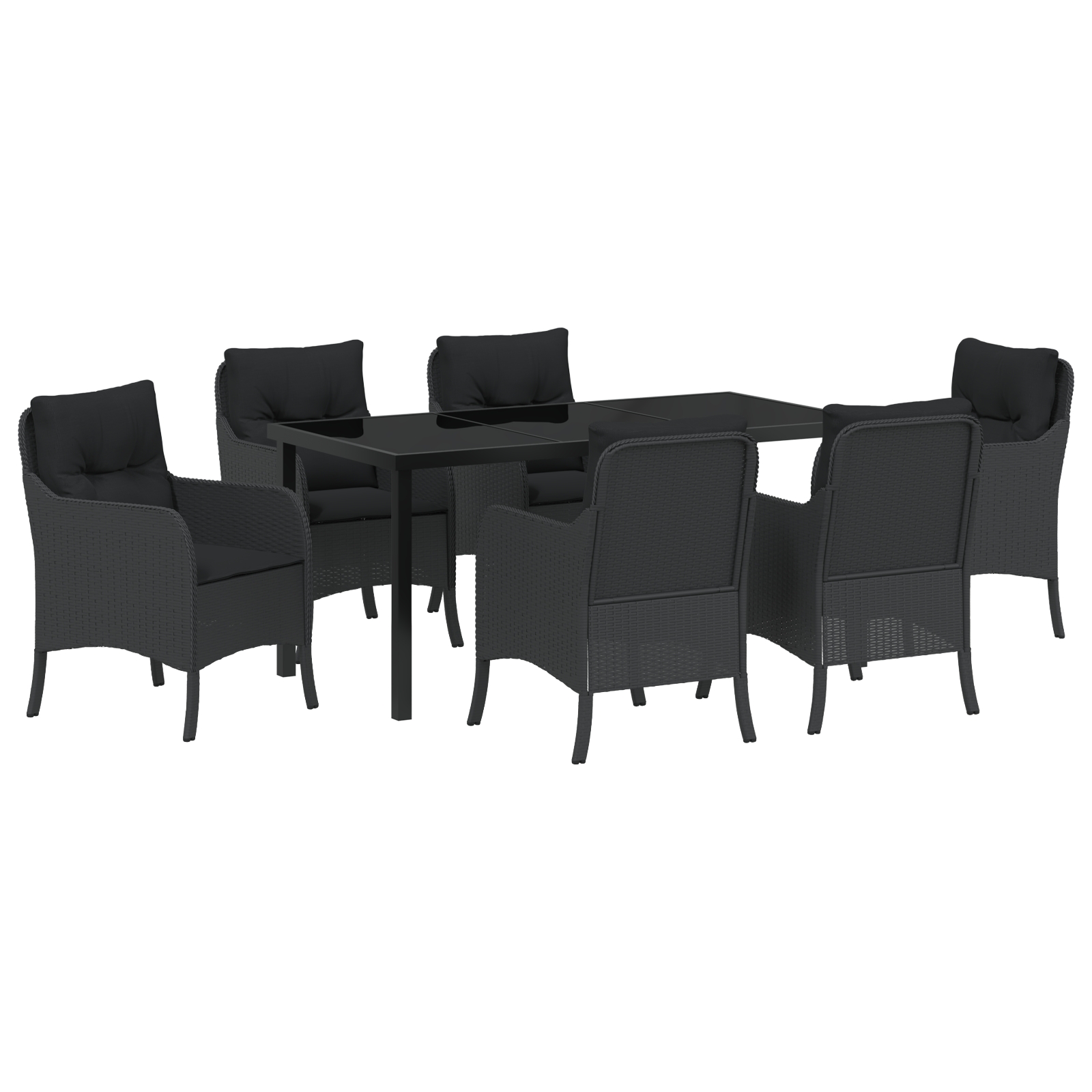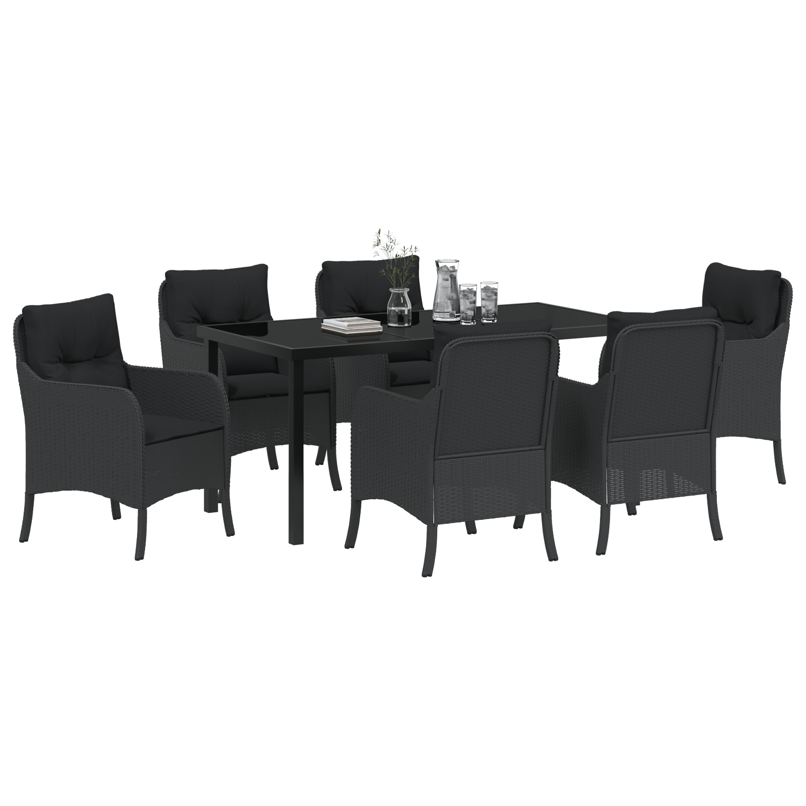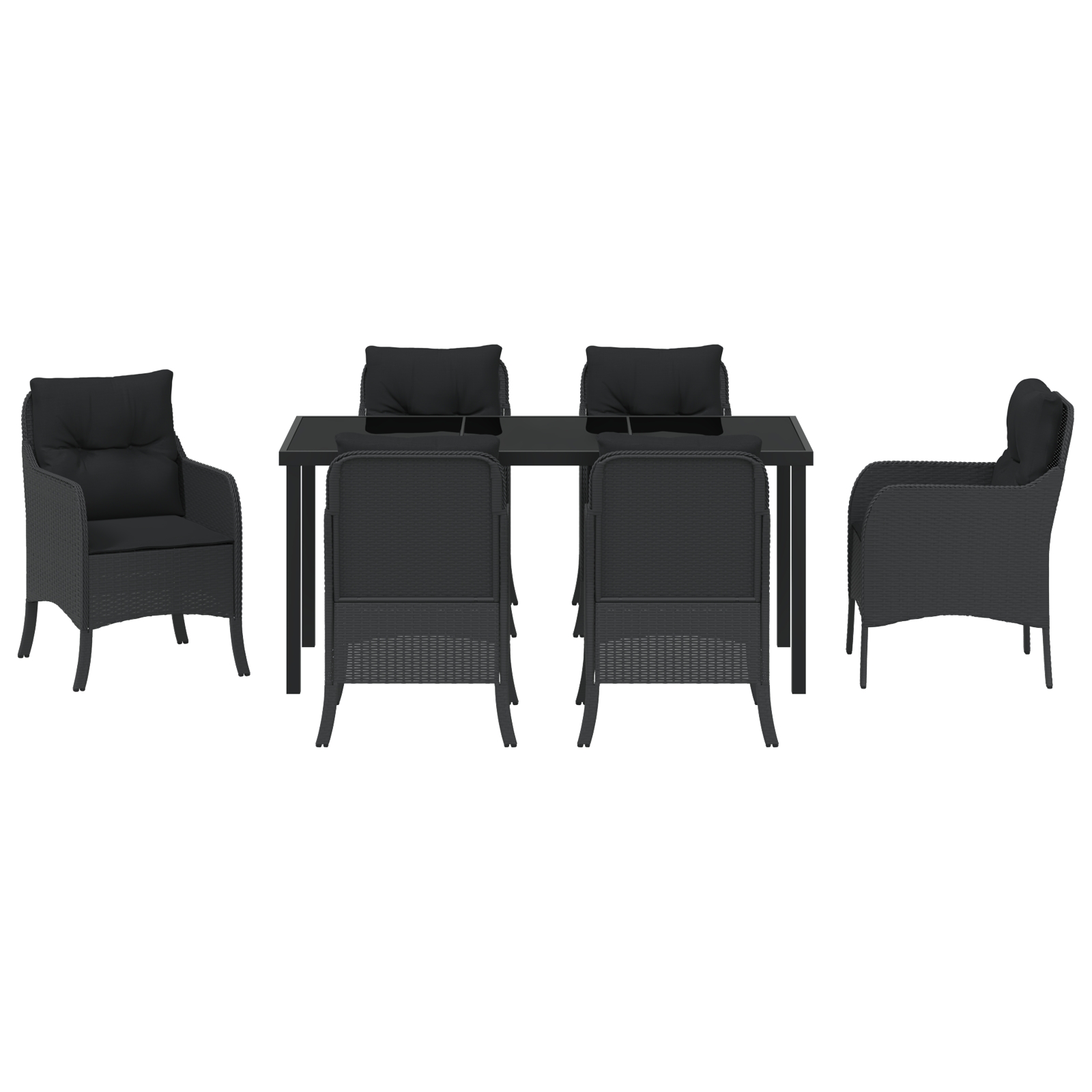 Set de masă pentru grădină cu pernă 7 pcs Negru Rattan poli