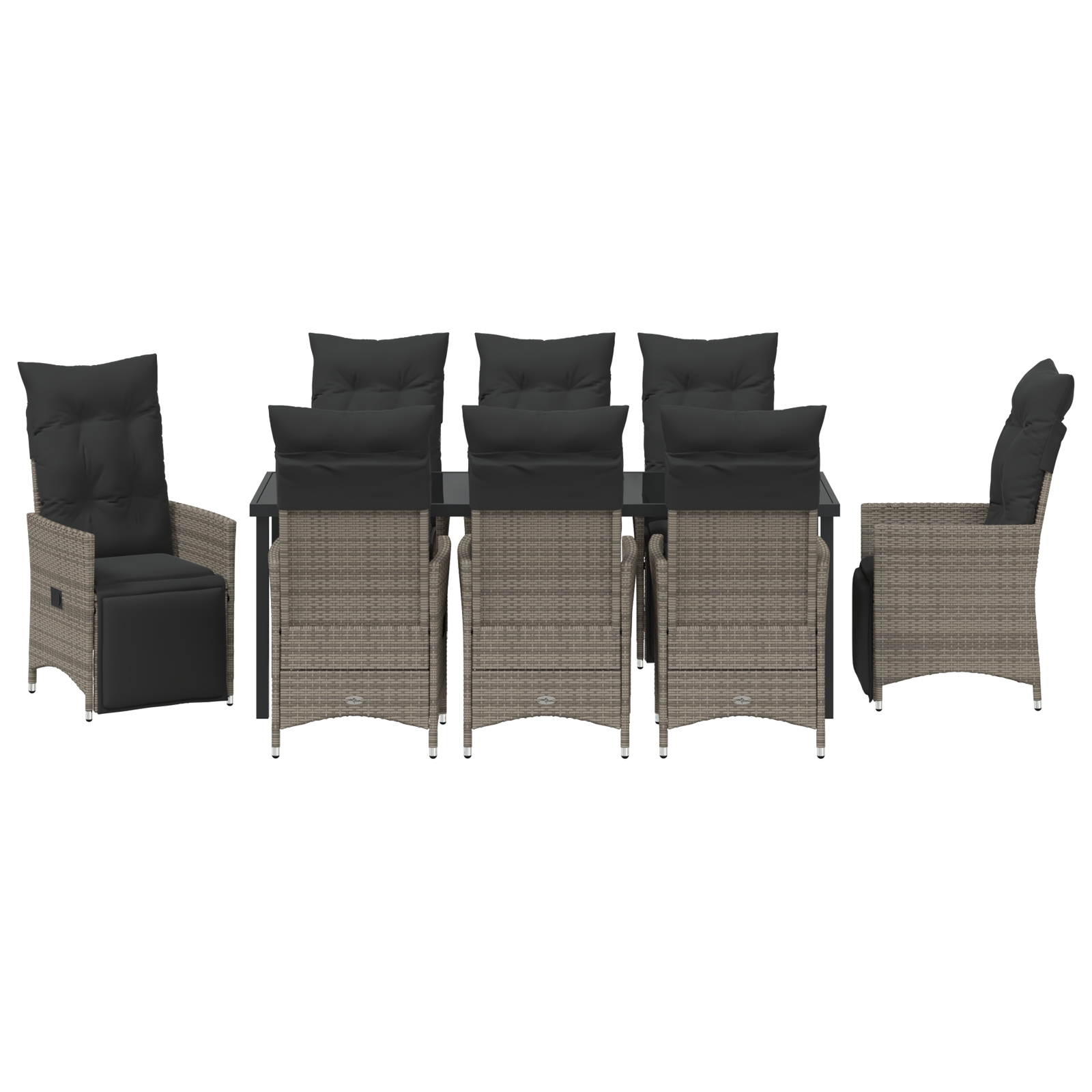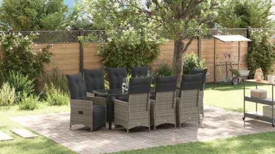 Setul ăsta de scaune de grădină reclinabile de la îmbină stilul modern cu confortul, fiind alegerea ideală pentru orice loc exterior. Făcute din poliratan rezistent și oțel robust acoperit cu pulbere, aceste scaune creează un spațiu plăcut pentru relaxare, fie pe un patio, balcon sau terasă.