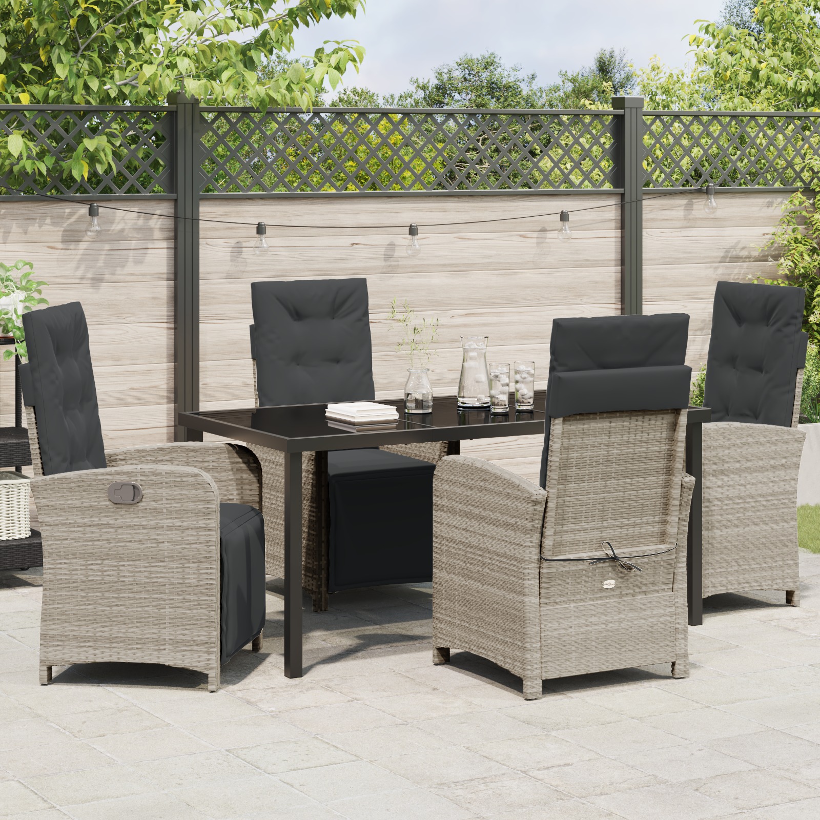 • Utilizări Versatile: Acest set e făcut pentru viața afară, transformând grădina sau terasa ta într-un spațiu de dining primitor. E ideal de la brunch-uri relaxate la cine sofisticate sub stele.