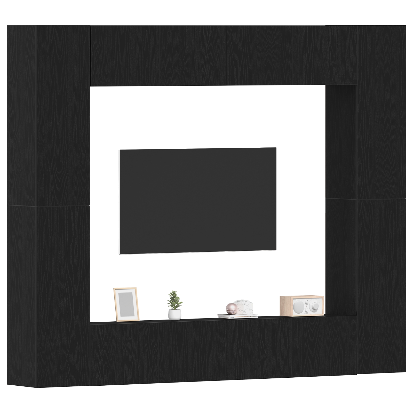 Set de Mobilier TV de 8 Piese – Montat pe Perete, Negru Stejar, Lemn Ingineresc