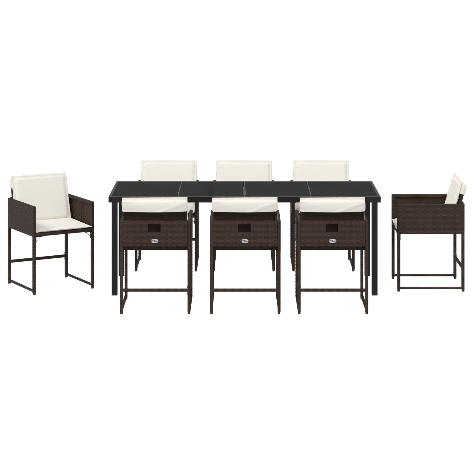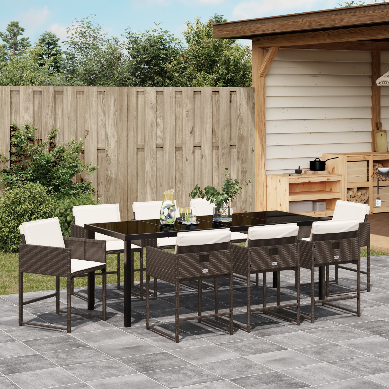 Set De Luat Masa Grădină 9 Piese Cu Perne Maro Rattan Poly