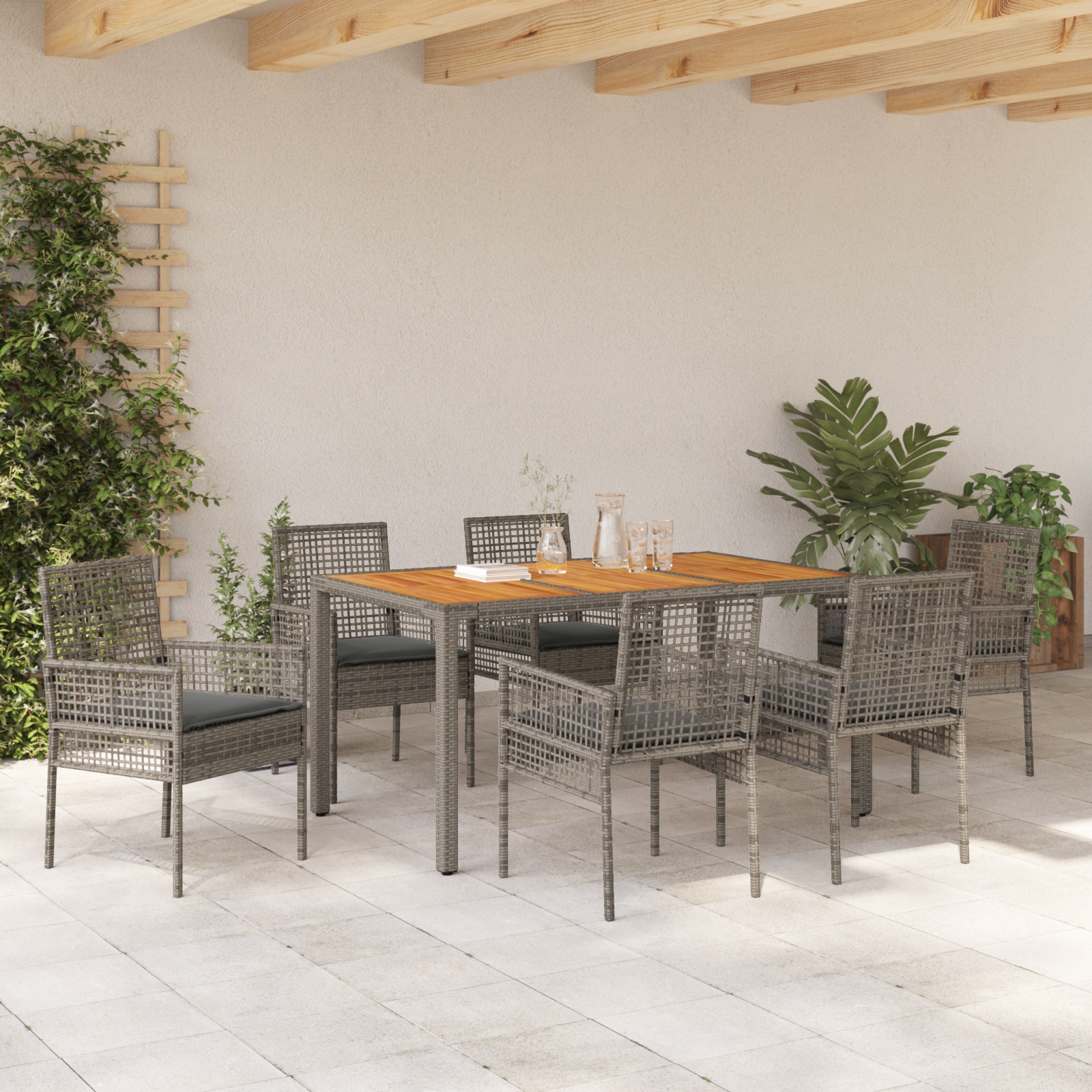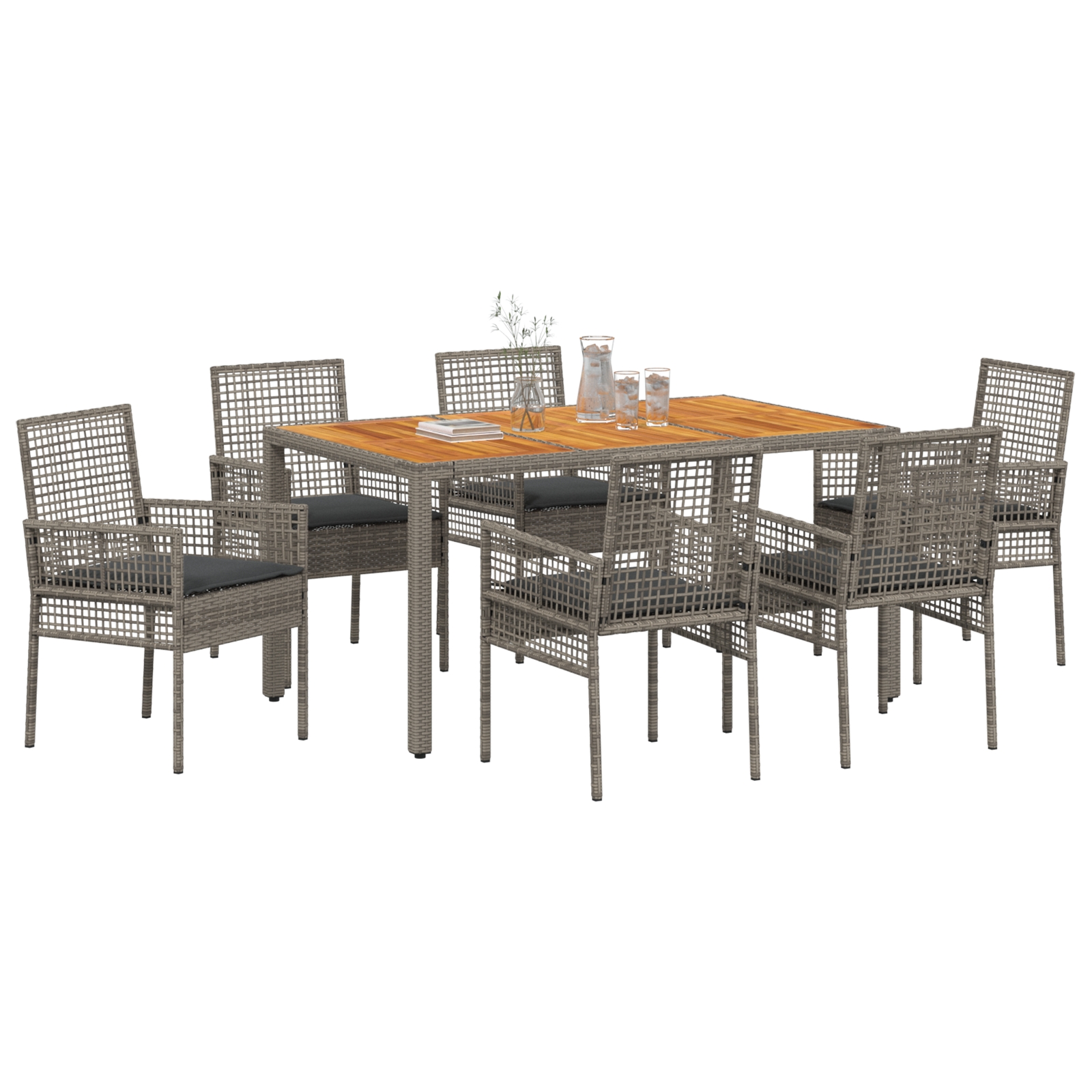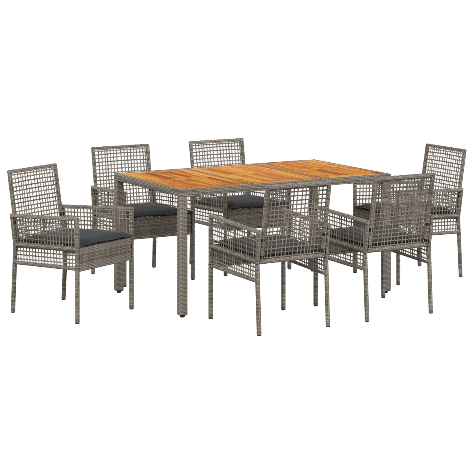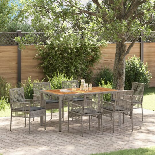 Set de Mâncare cu 7 Piese și Perne Gri din Poliratan