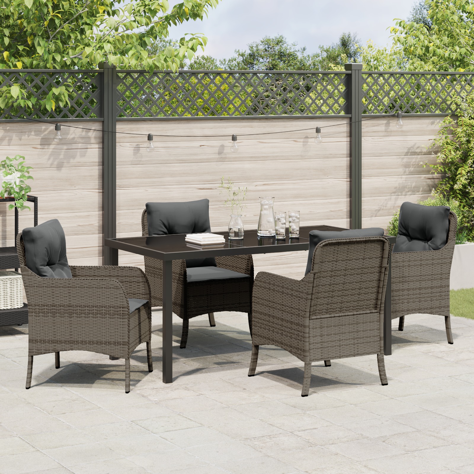 Set de masă pentru grădină cu pernă 5 pcs Gri Rattan poli