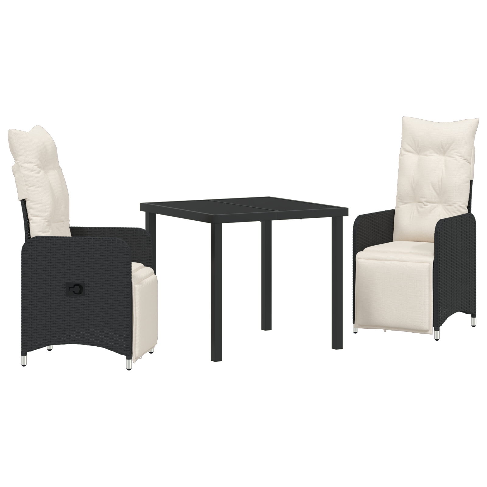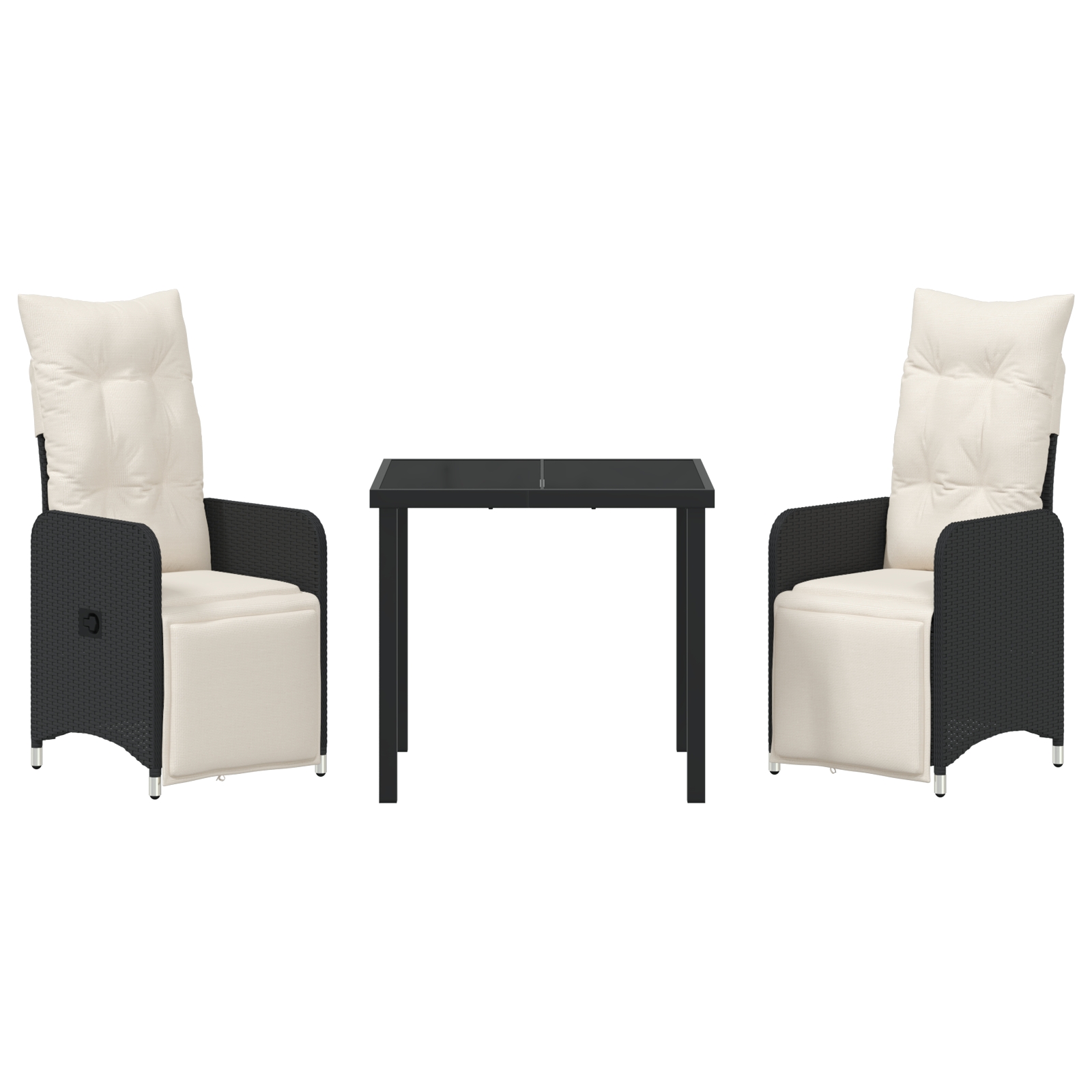 Set de masă pentru grădină cu pernă 3 pcs Negru Rattan poli