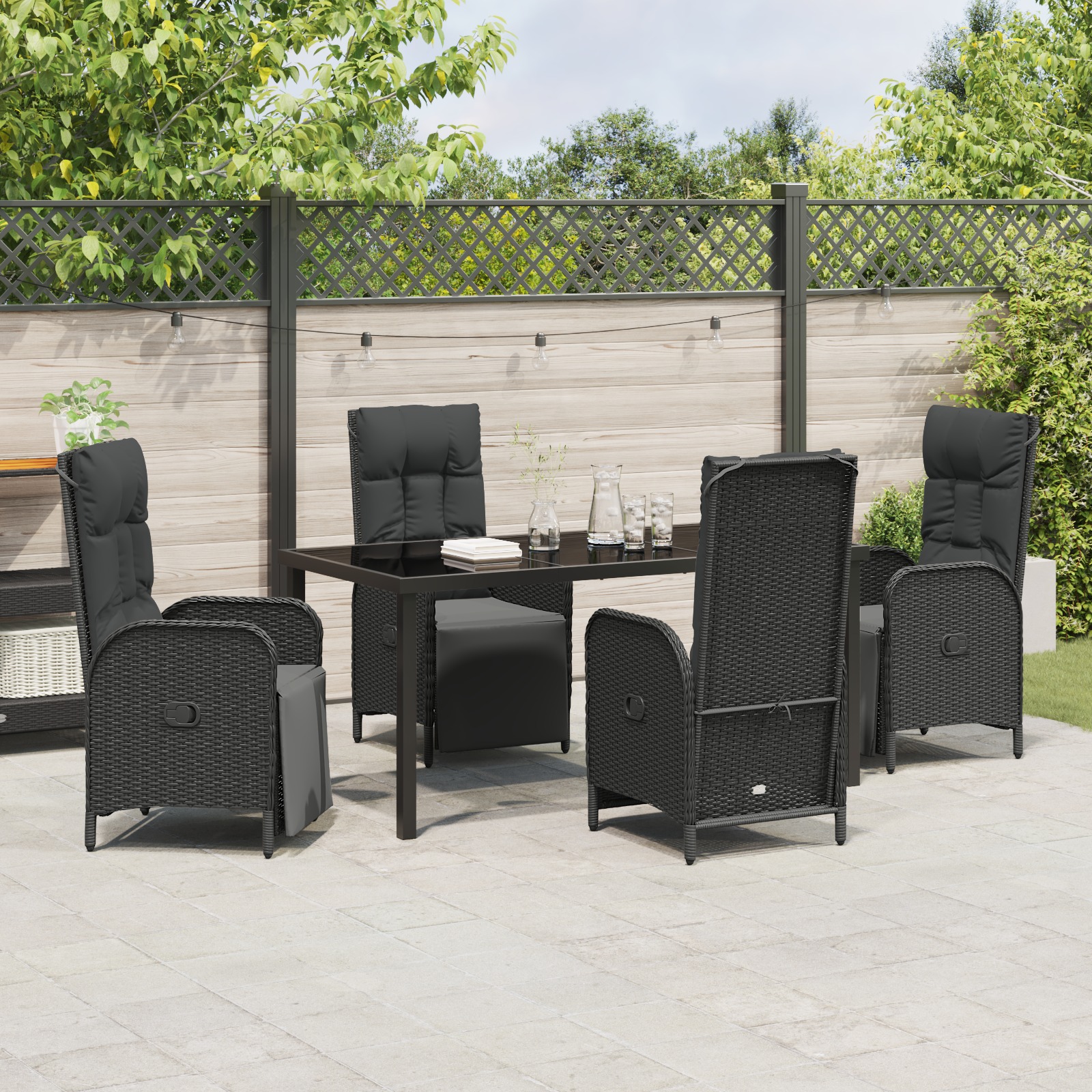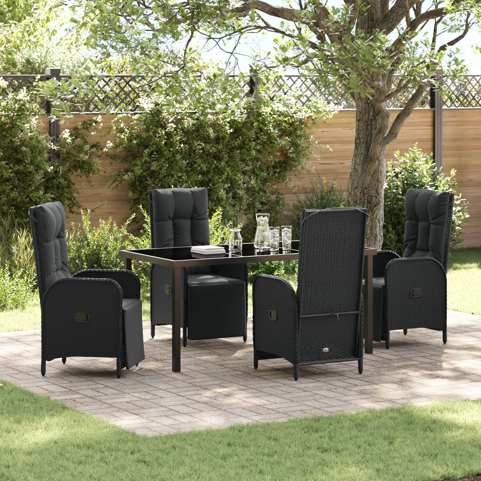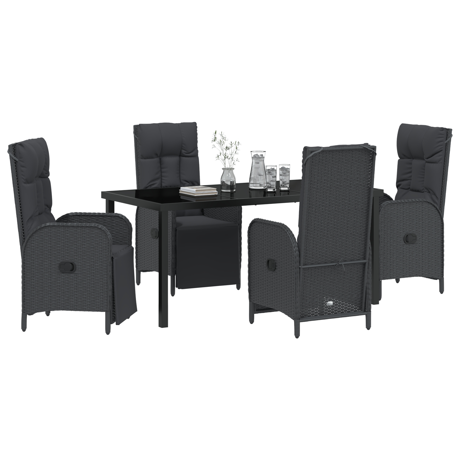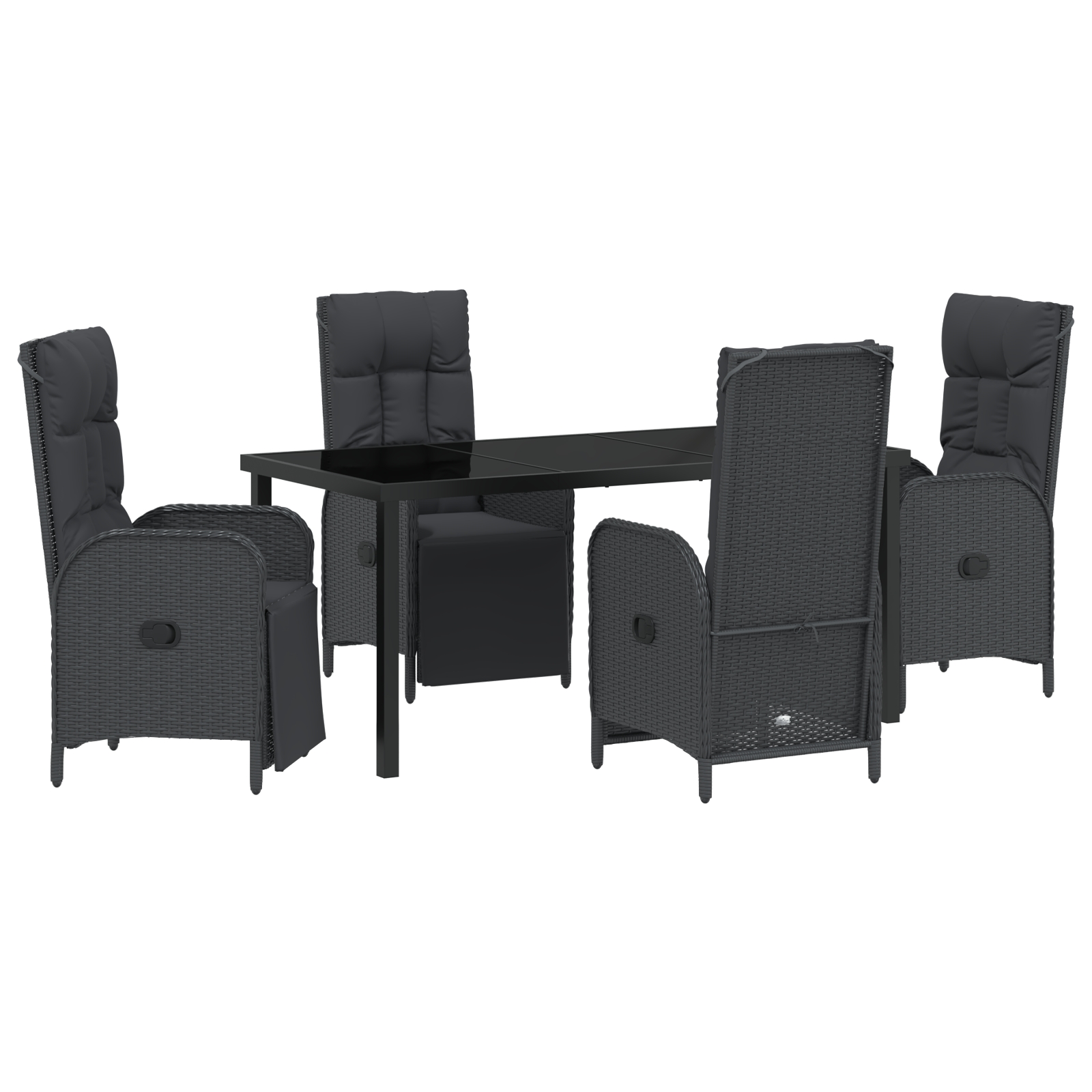 Set de masă pentru grădină cu pernă 5 pcs Negru Rattan poli