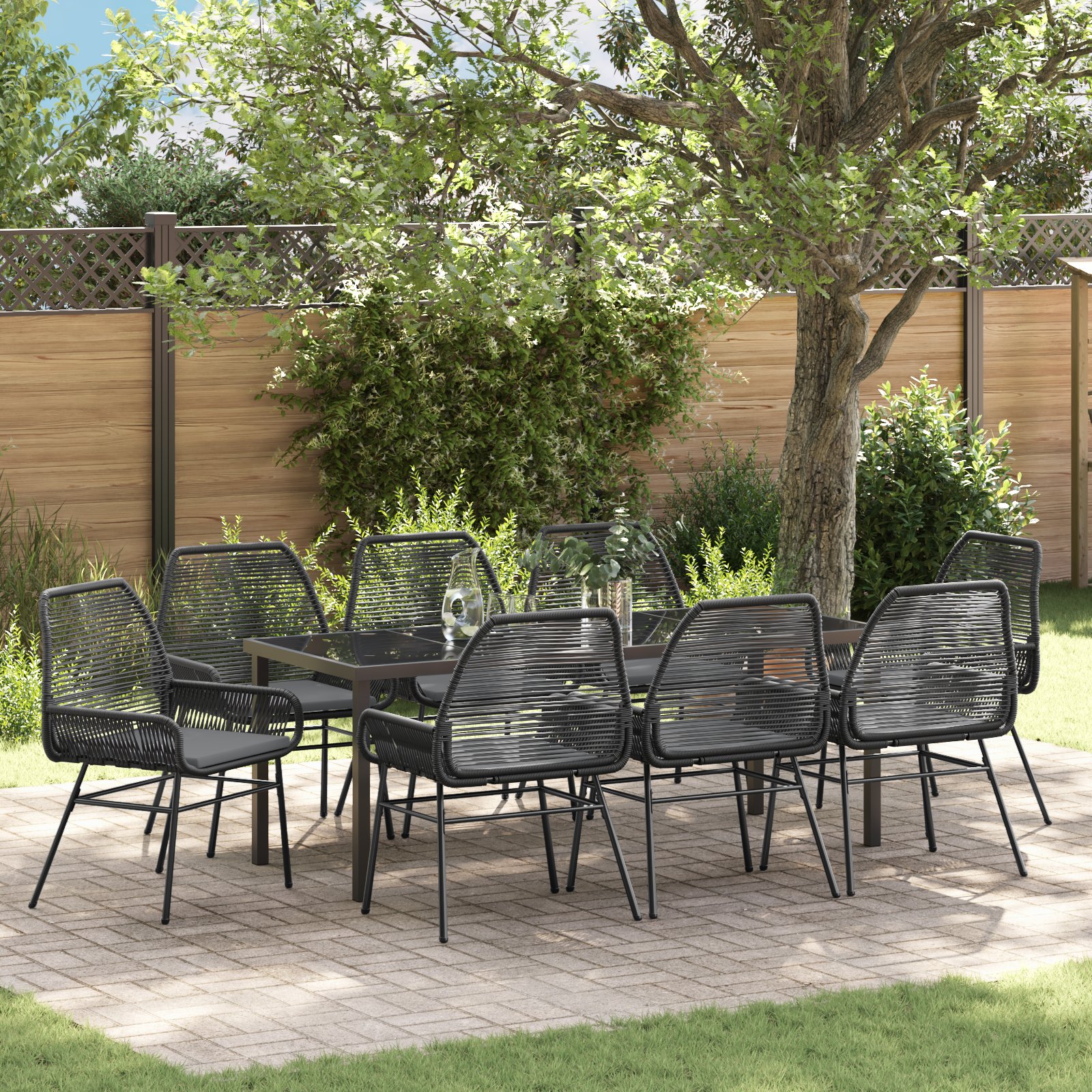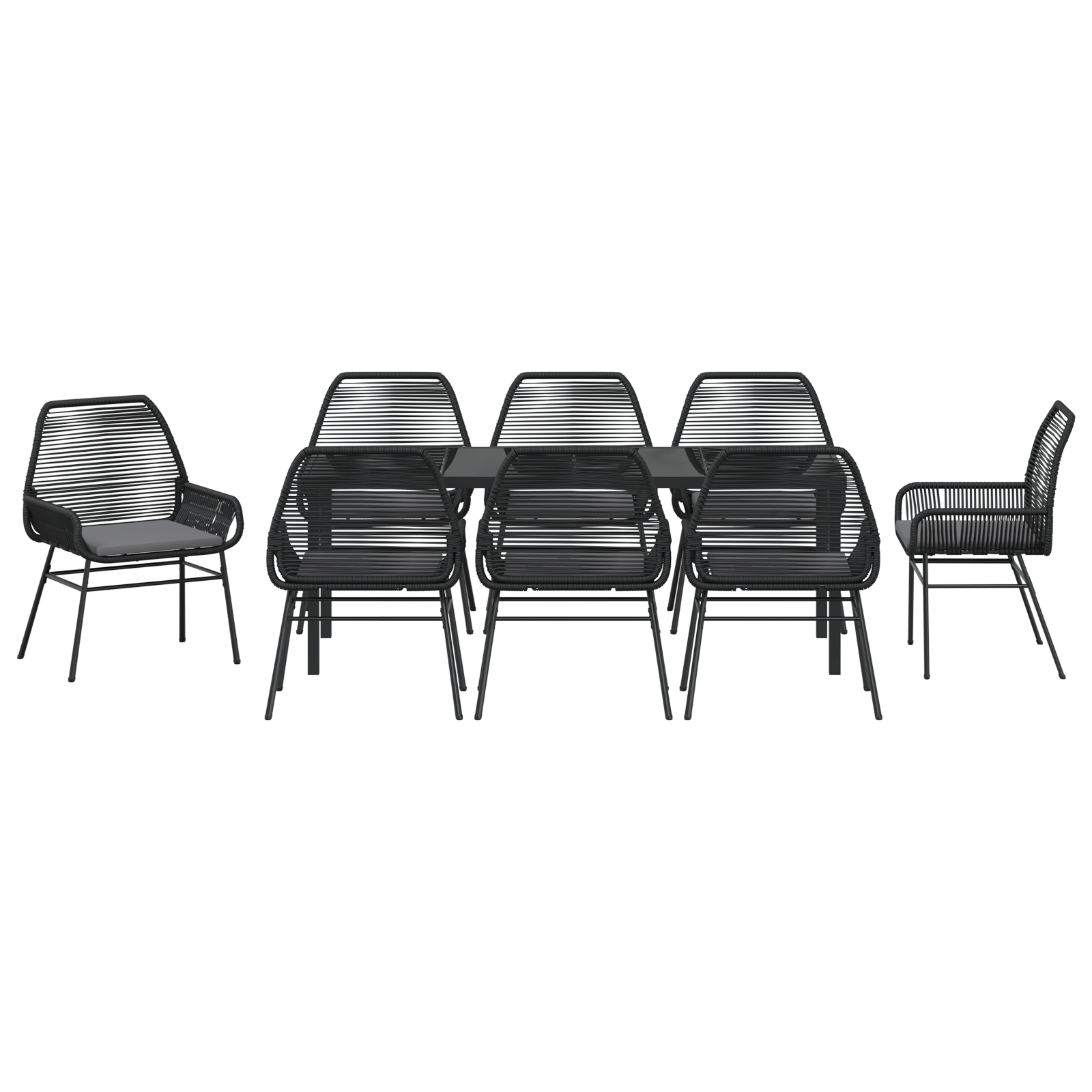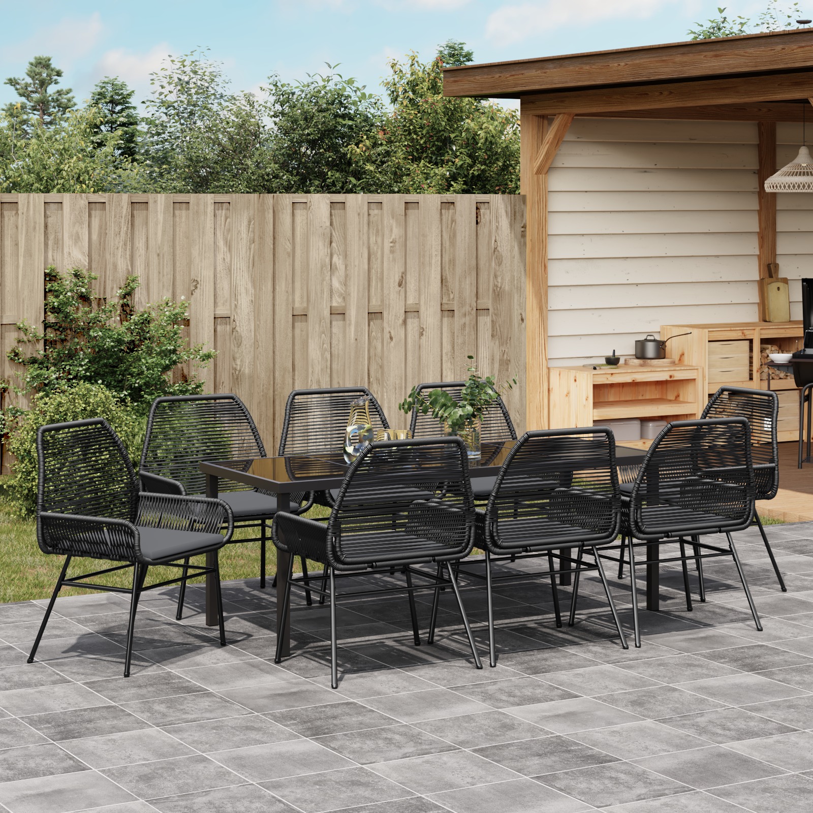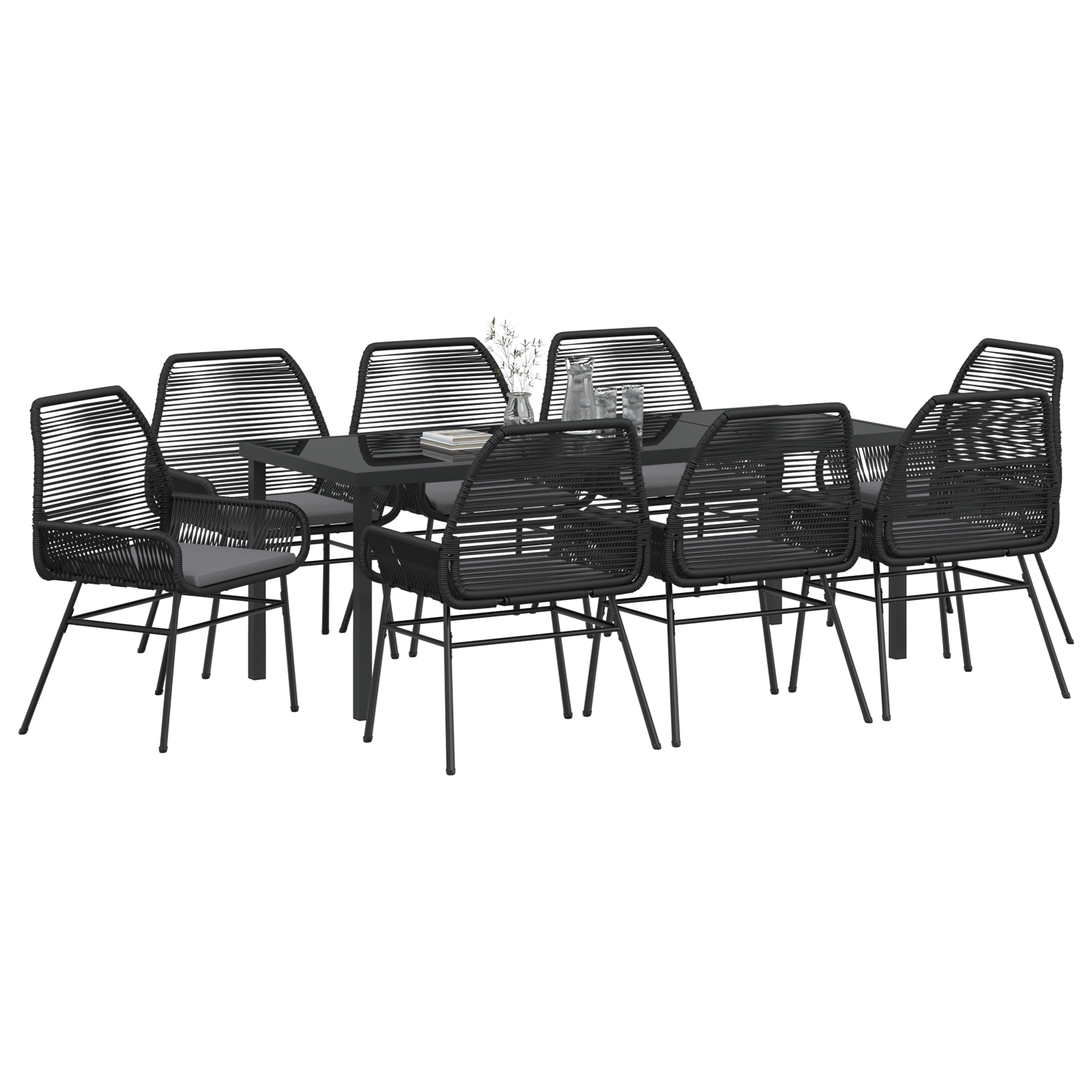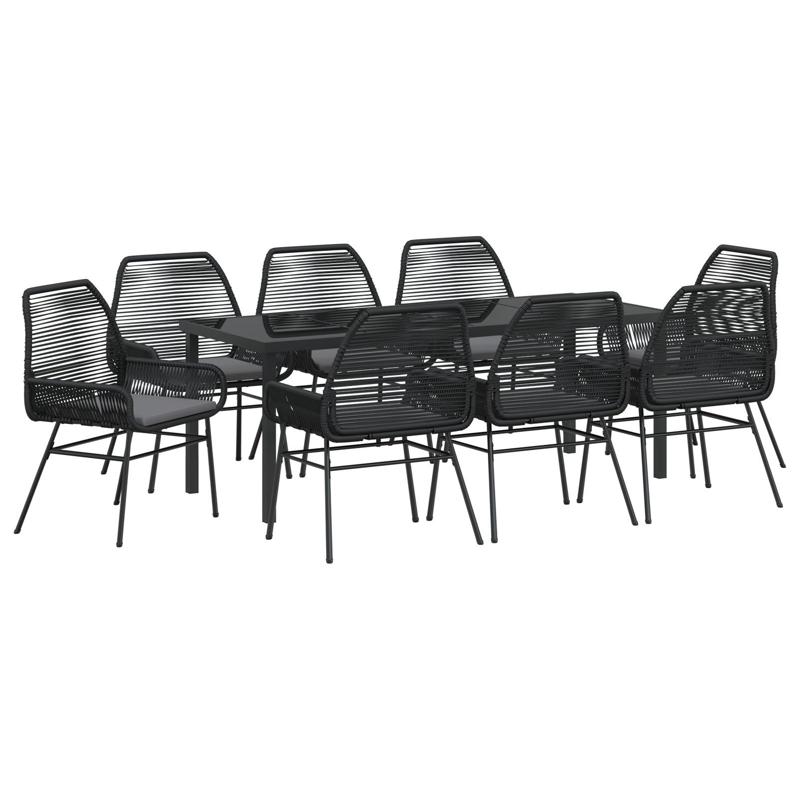 Set de Masă de Grădină 9 Piese cu Perne Poliratan Negru