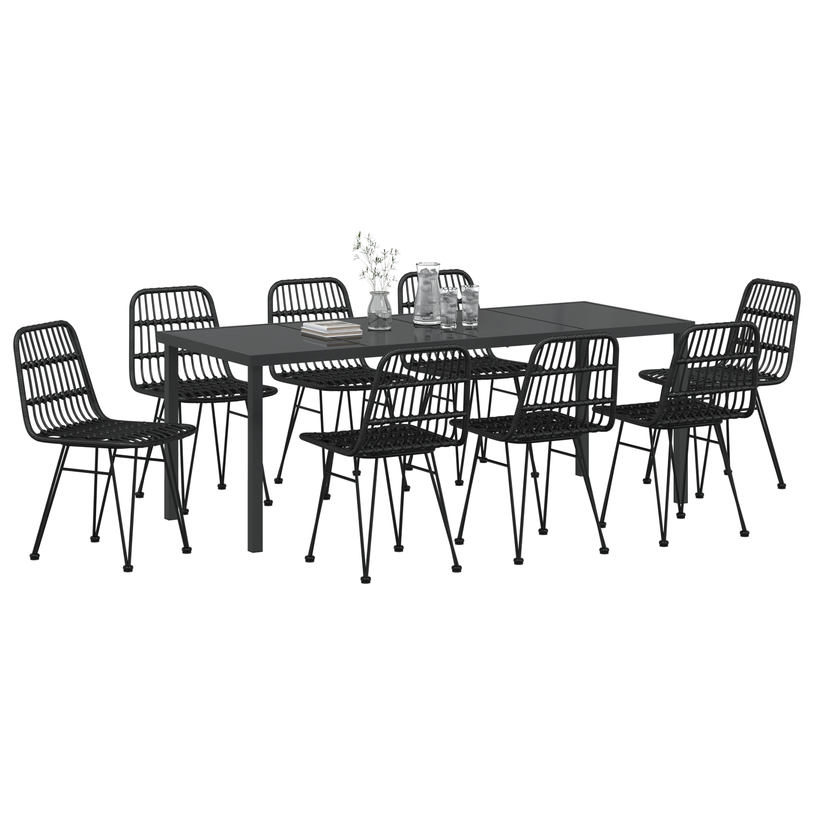 Set de masă de grădină 9 piese Negru Polyrattan